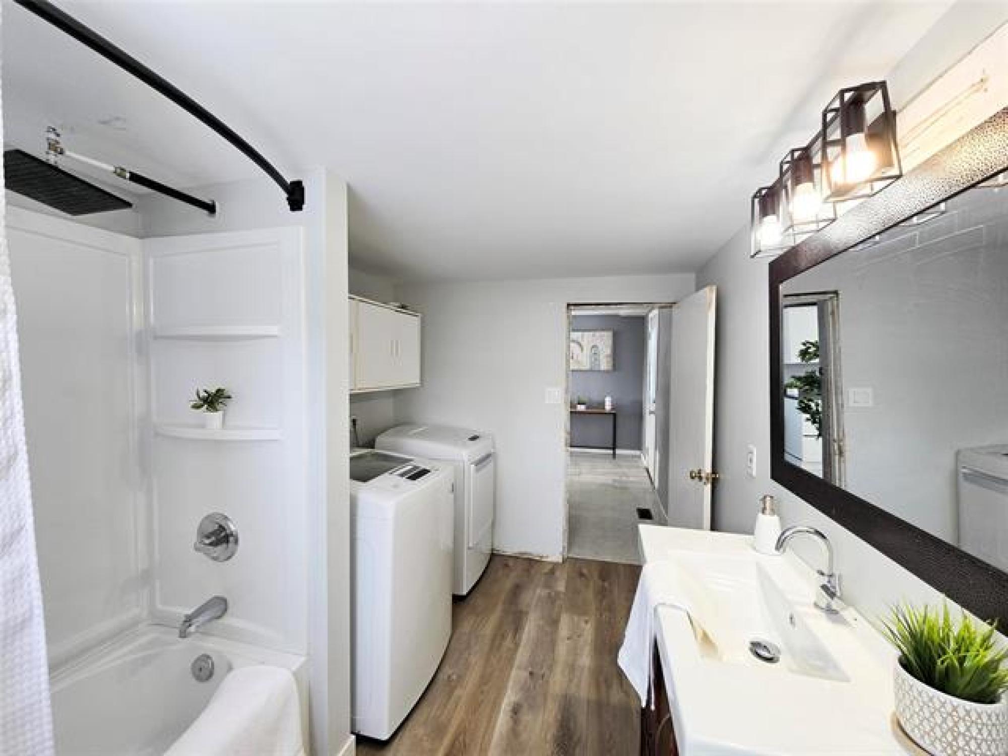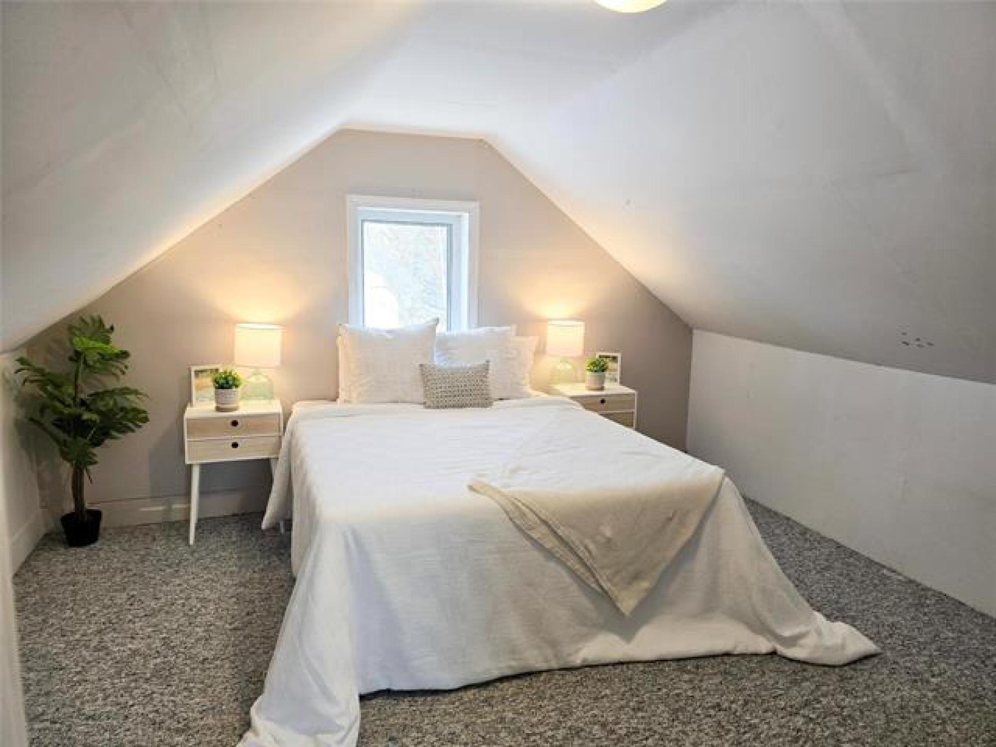 OPEN HOUSE, SATURDAY, MARCH 21, 2 - 4PM. What a great opportunity to own a starter home, or investment property! Possibly even redevelopment- lot is 100' x 290'! The main floor of this home has a large living room, kitchen and 4 piece bath with main floor laundry. The upstairs has 1 bedroom, could be used as 2. The lower level is unfinished, bit great space for storage. Moving outside you will find a double detached garage, and a large town lot (goes past the fence). So many possibilities! Call now!