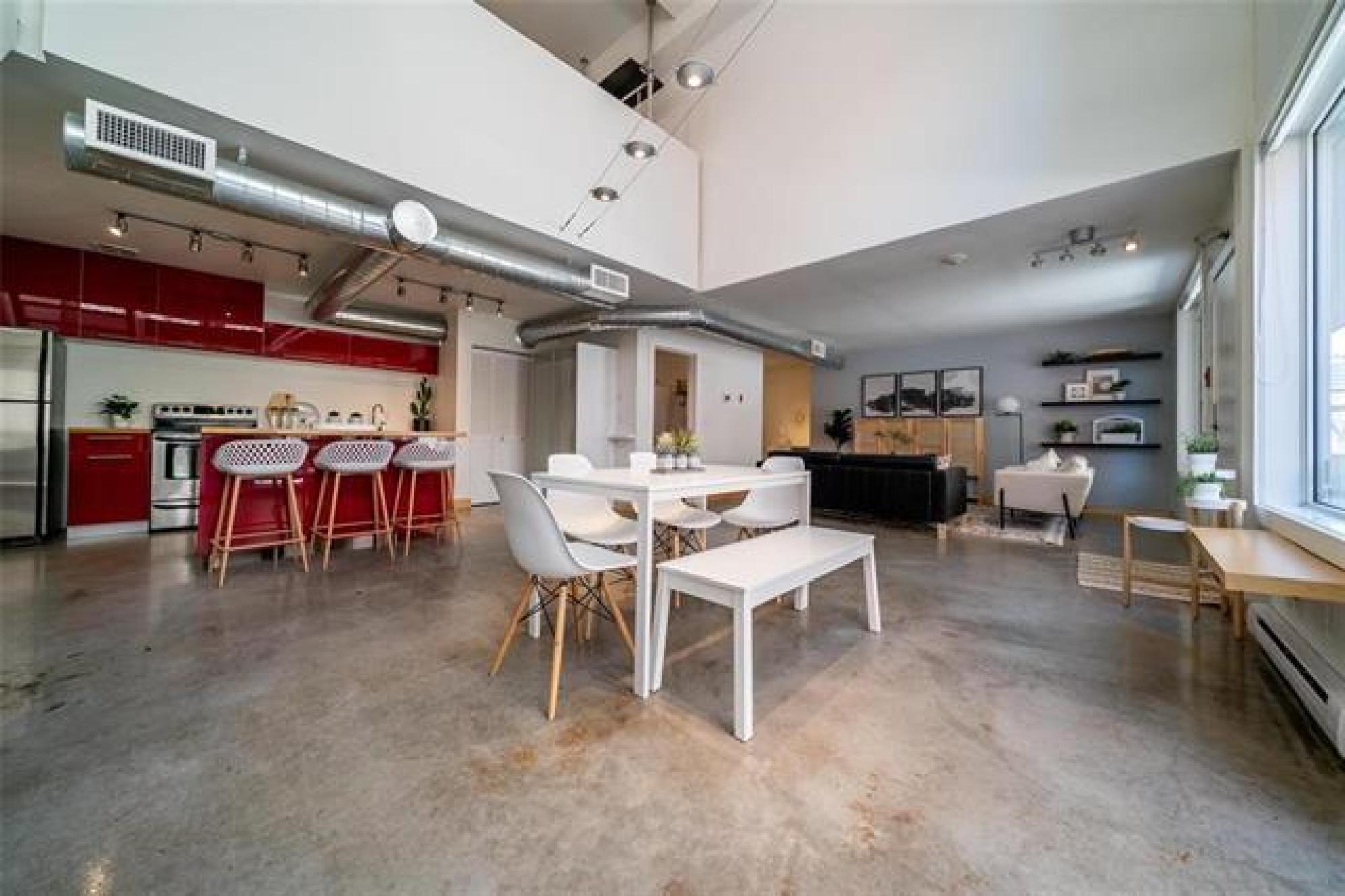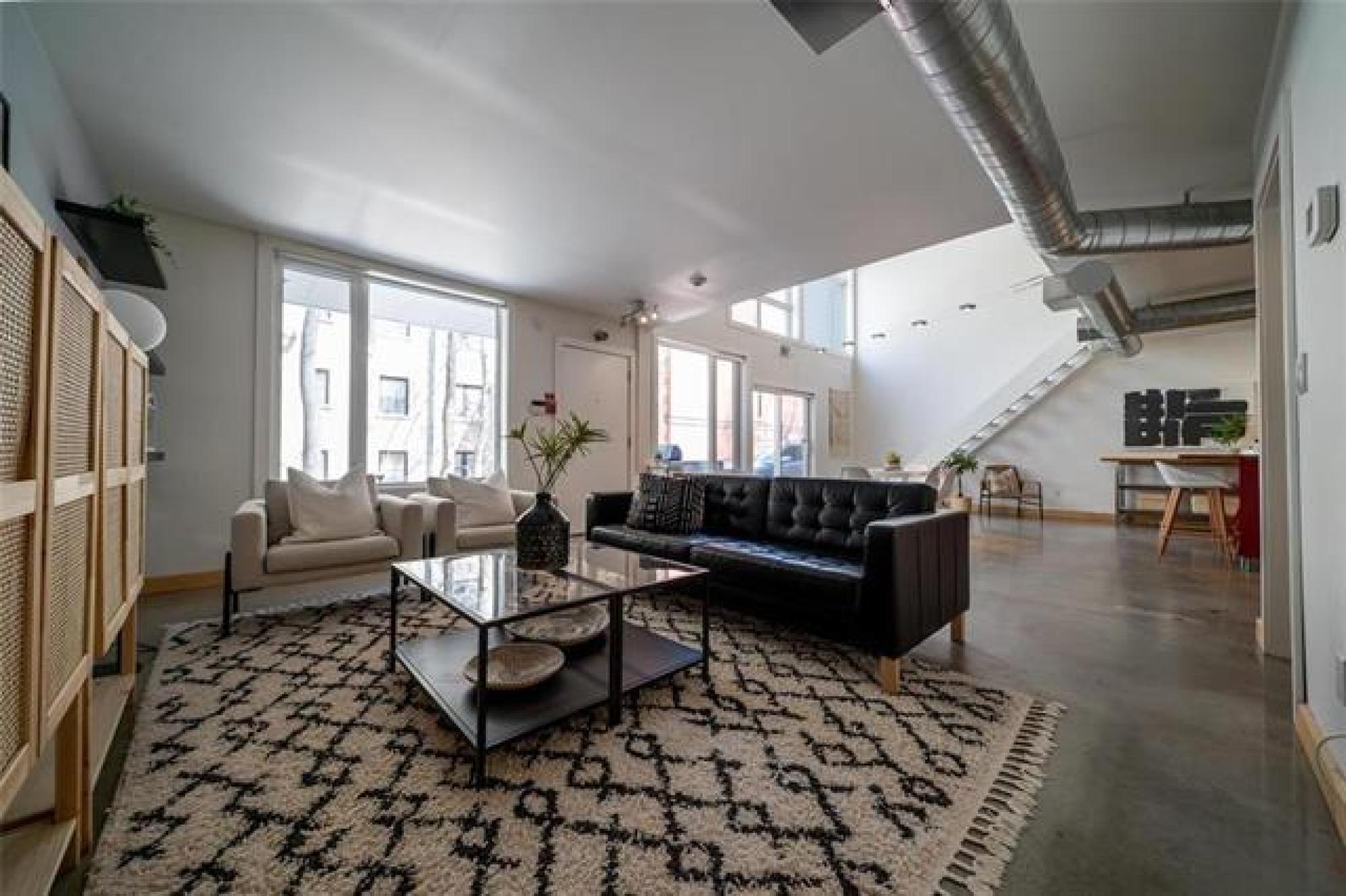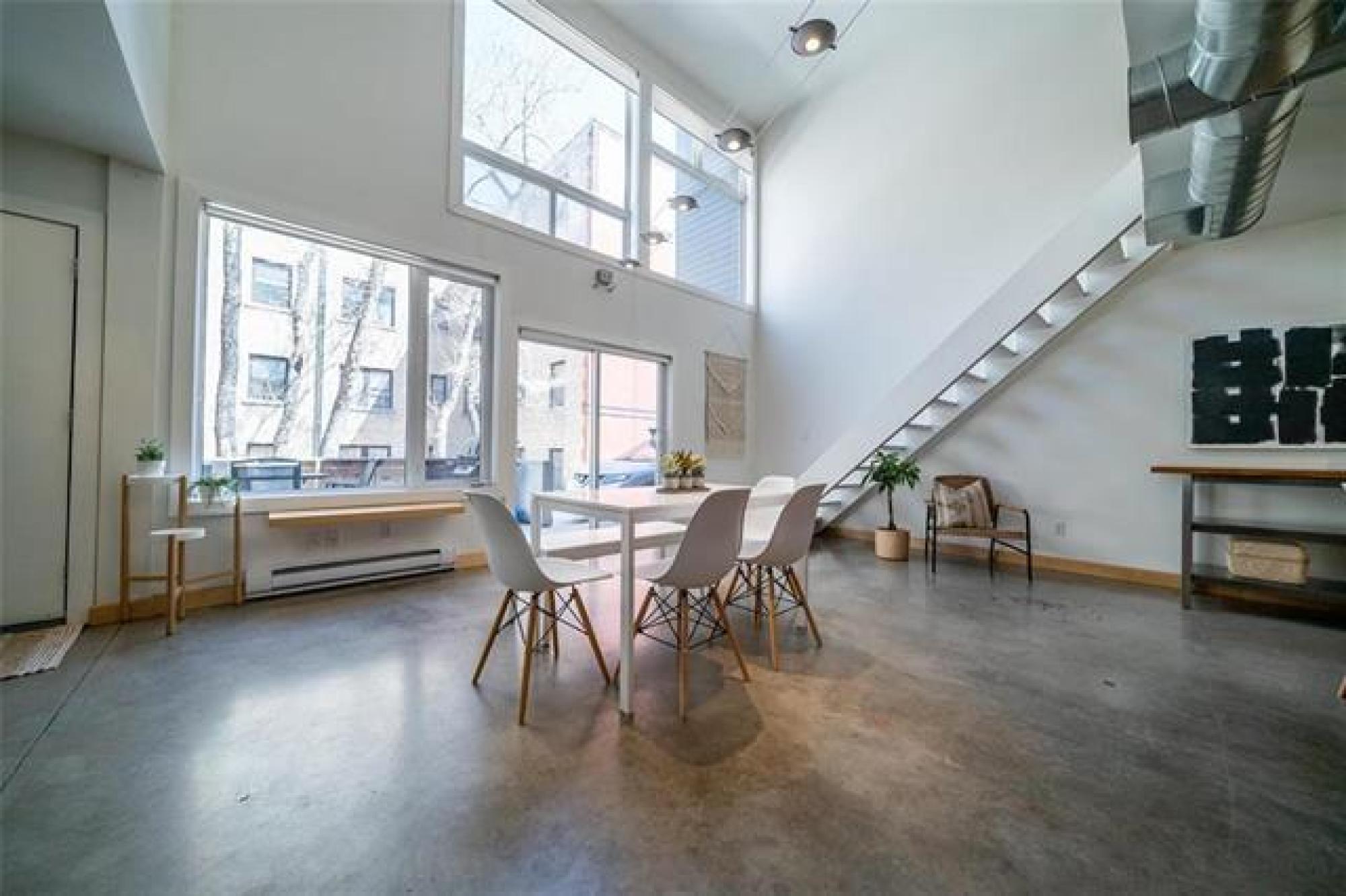 Looking for more than just a condo? This architecturally striking, multi-use loft in the heart of downtown offers the freedom to live comfortably, work creatively, or do both — under one roof. Built in 2006 and designed for multiple uses, the space is perfect whether you're a remote worker, a small business owner, or simply someone who wants a home with personality. Inside, you’re welcomed by soaring 19-foot ceilings, polished concrete floors, and massive windows that fill the space with natural light. The open main level easily adapts to your needs — set up a stylish living area, a collaborative workspace, or both. Upstairs, the lofted bedroom provides a private retreat overlooking the open-concept floor below. Private parking and a sunny patio right outside your door make everyday living — or client visits — easy. And the location? You’re just steps from True North Square, Jets games, the U of W, Osborne Village and the Exchange District. With in-suite laundry, pet-friendly policies, and a professionally managed building, this loft is a rare find for anyone looking to blend lifestyle and flexibility. Whether you’re hosting friends or building your brand, this is a space that works for you.
