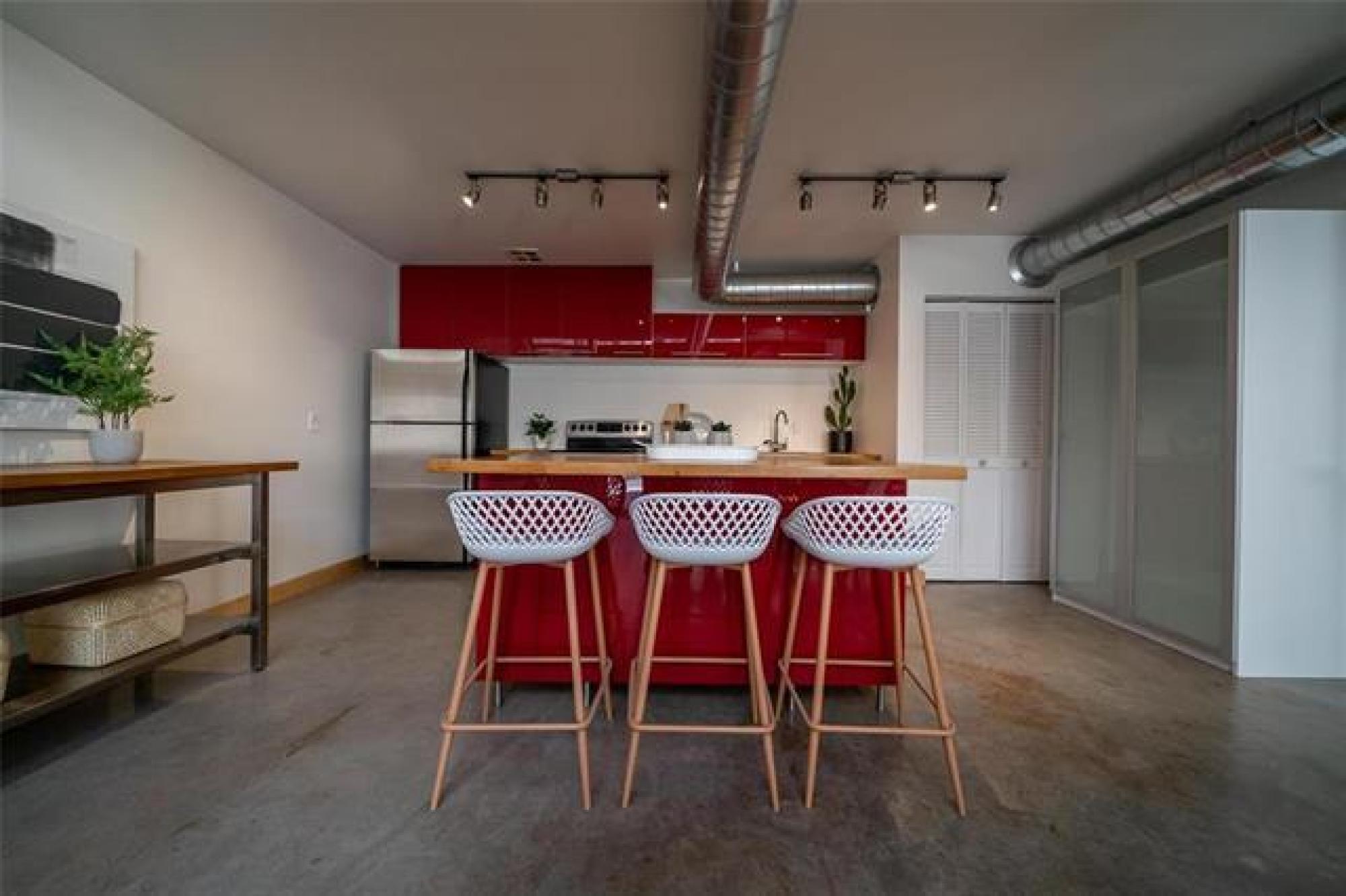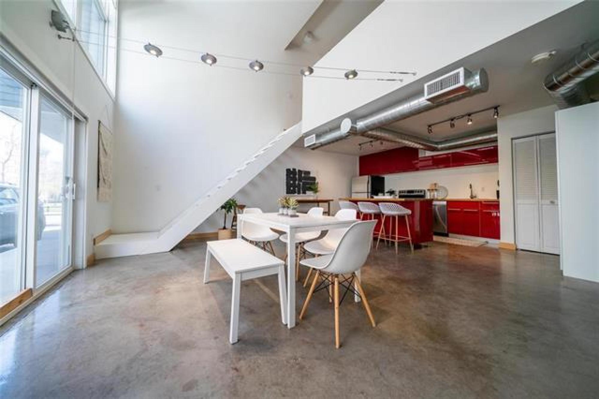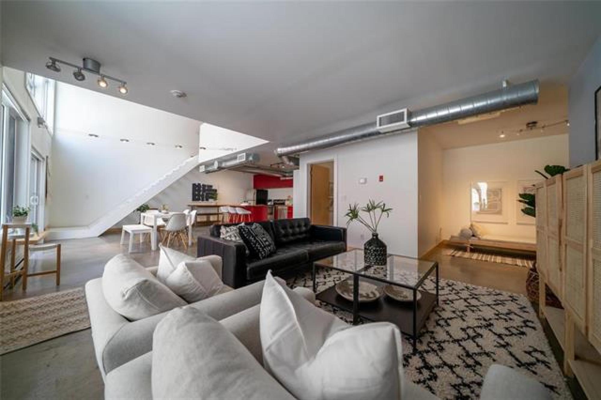 Looking for more than just a condo? This architecturally striking, multi-use loft in the heart of downtown offers the freedom to live comfortably, work creatively, or do both — under one roof. Built in 2006 and designed for multiple uses, the space is perfect whether you're a remote worker, a small business owner, or simply someone who wants a home with personality. Inside, you’re welcomed by soaring 19-foot ceilings, polished concrete floors, and massive windows that fill the space with natural light. The open main level easily adapts to your needs — set up a stylish living area, a collaborative workspace, or both. Upstairs, the lofted bedroom provides a private retreat overlooking the open-concept floor below. Private parking and a sunny patio right outside your door make everyday living — or client visits — easy. And the location? You’re just steps from True North Square, Jets games, the U of W, Osborne Village and the Exchange District. With in-suite laundry, pet-friendly policies, and a professionally managed building, this loft is a rare find for anyone looking to blend lifestyle and flexibility. Whether you’re hosting friends or building your brand, this is a space that works for you.