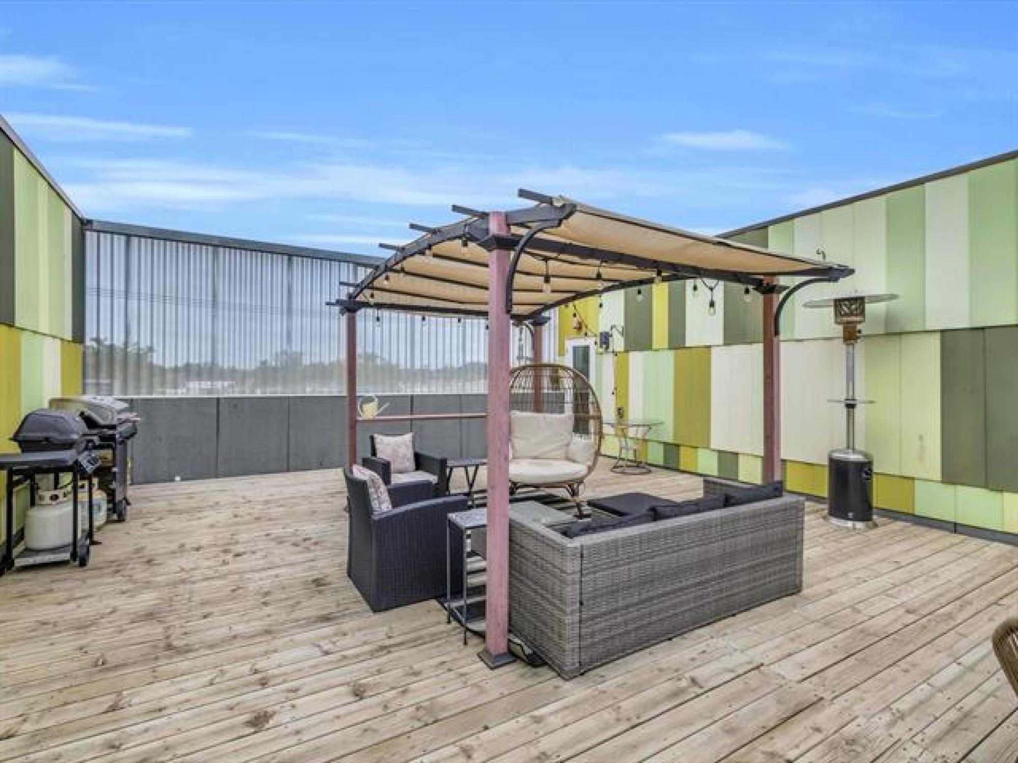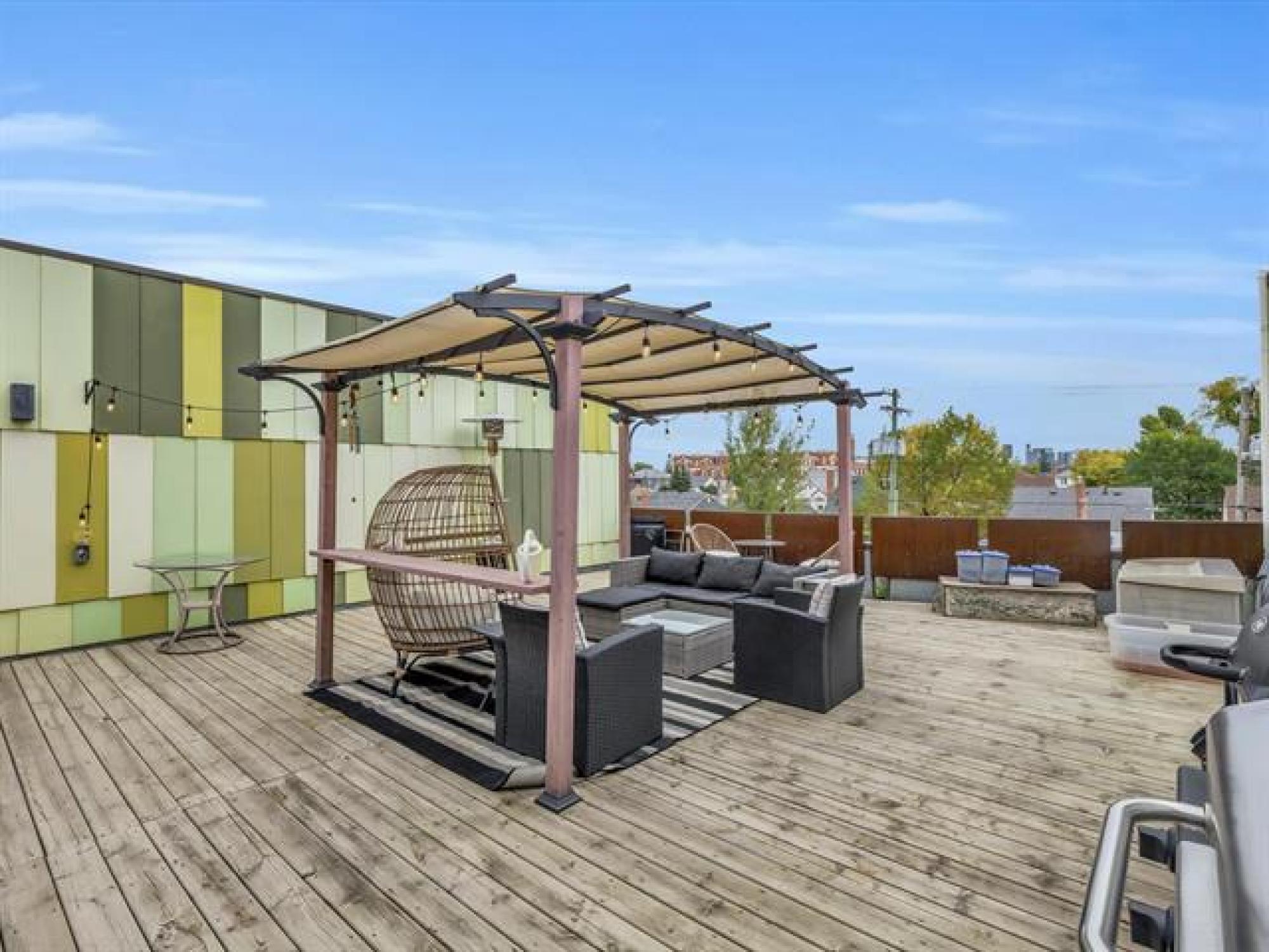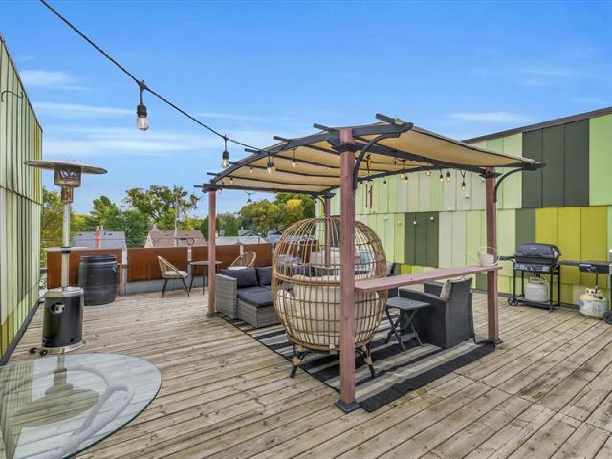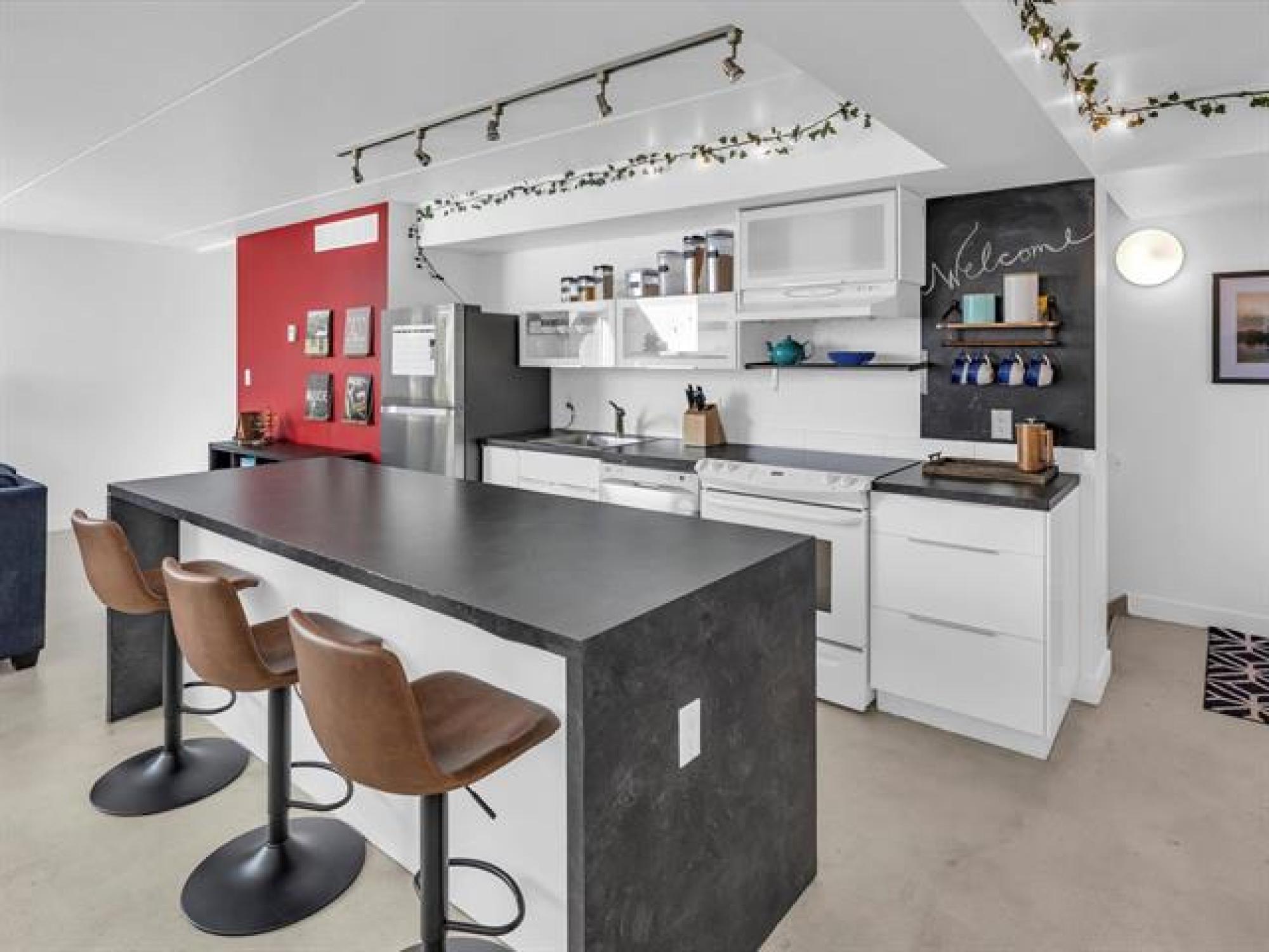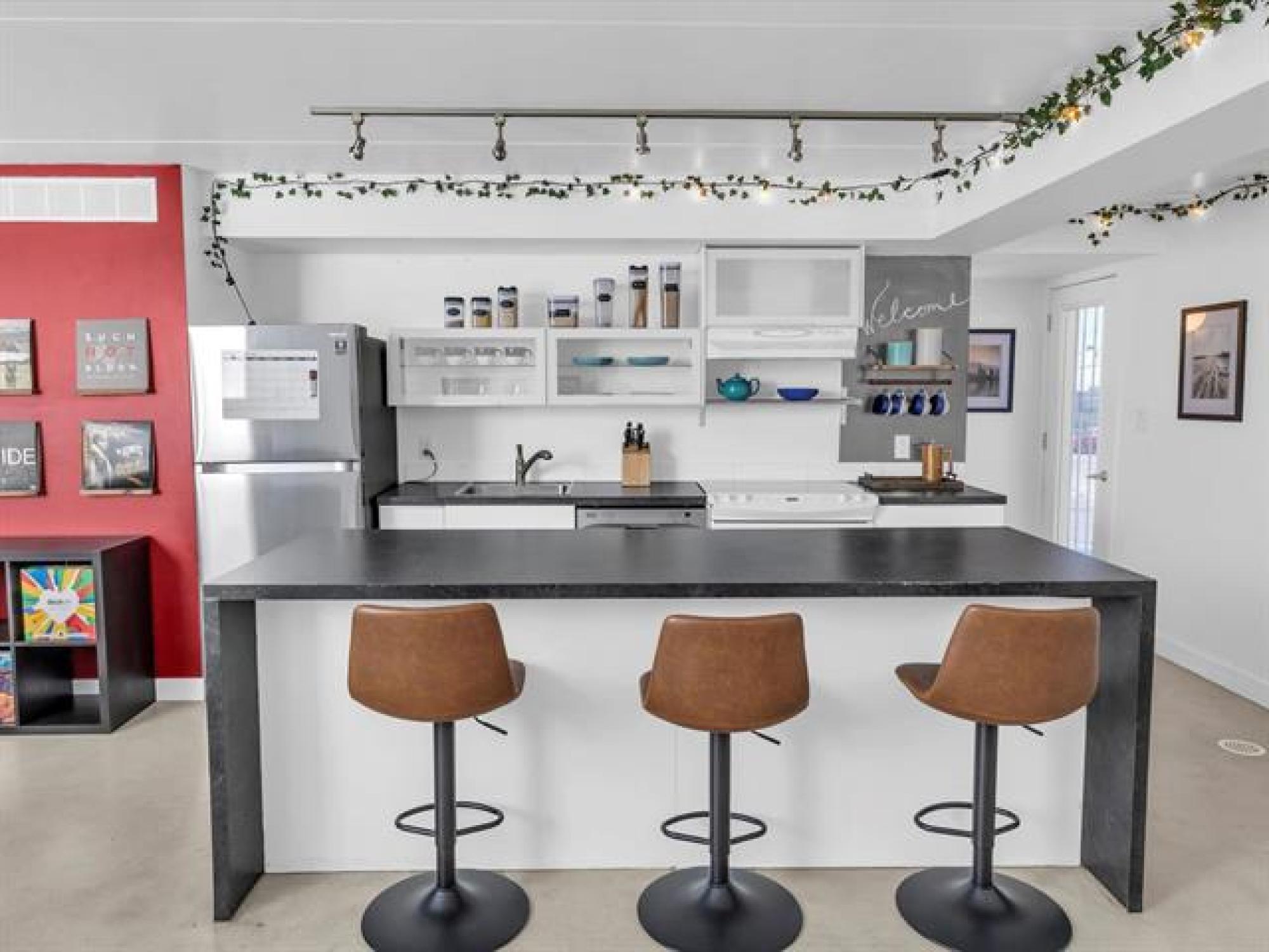 ***SELLER OFFERING TO PAY CONDO FEES THROUGH 2026! CALL FOR DETAILS!*** OFFERS ANYTIME! Be ready to be blown away! Live it up in elegance, simplicity and modern style over multiple floors. Huge windows from top to bottom makes the open concept layout even more stunning and bright. Galley foyer upon entrance. A kitchen that would get anyone excited to wield a spatula. Large eat-in island with waterfall countertop makes for an amazing place to cook and entertain guests. All appliances included. Spacious living and dining areas. Sleek lines, unique lighting and NO carpet! Primary bedroom is on the upper level overlooking the main floor. Four-piece en-suite and laundry. Your very own private rooftop terrace is truly special and one of only two in this complex. The perfect place to unwind or get the party started! Conveniently located, downtown nightlife, the Exchange & Canada Life Centre are less than 10 minutes away. Close to Polo Park, restaurants and local shops. Fees include all utilities. Move-in ready! Call today!