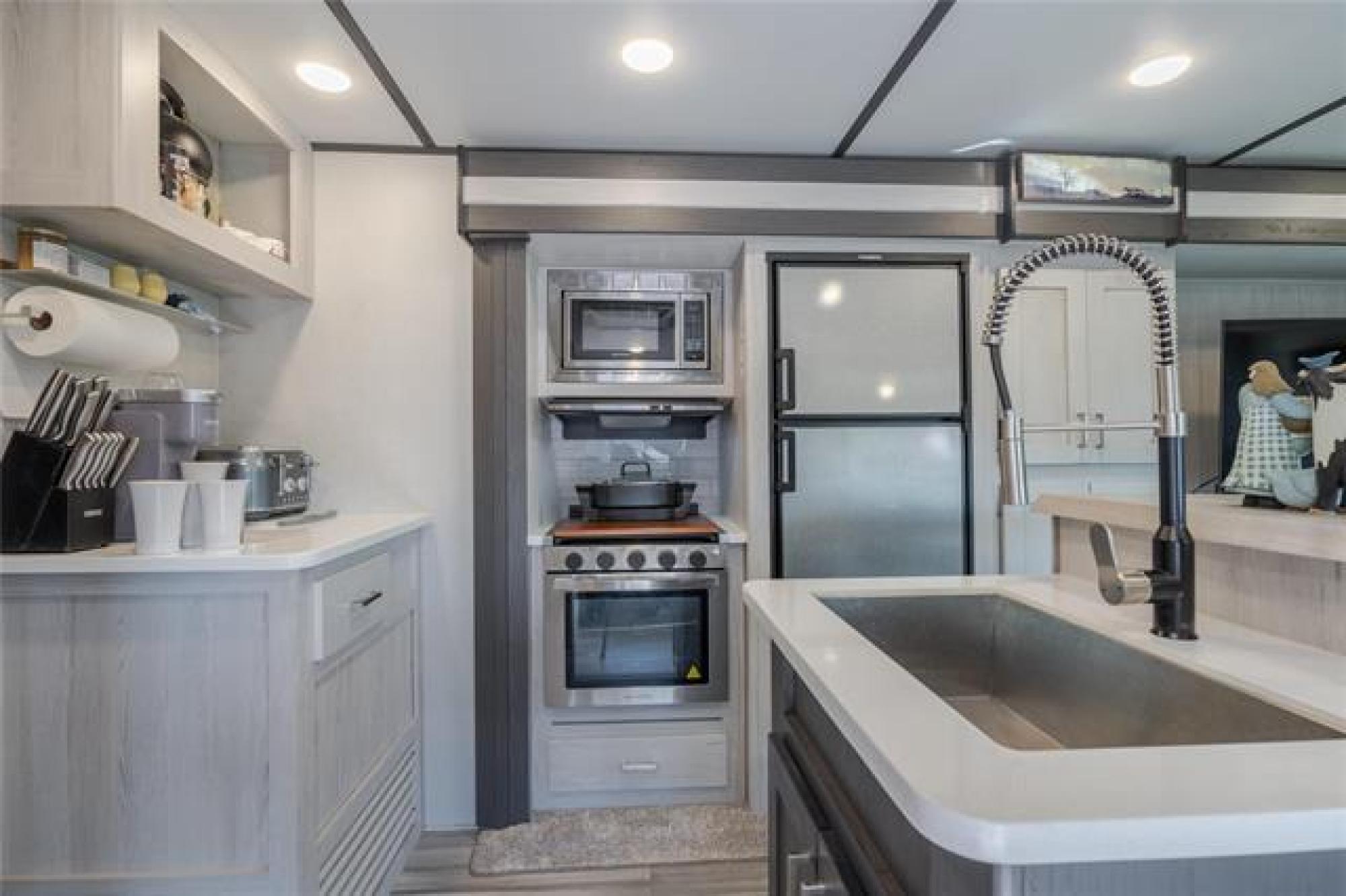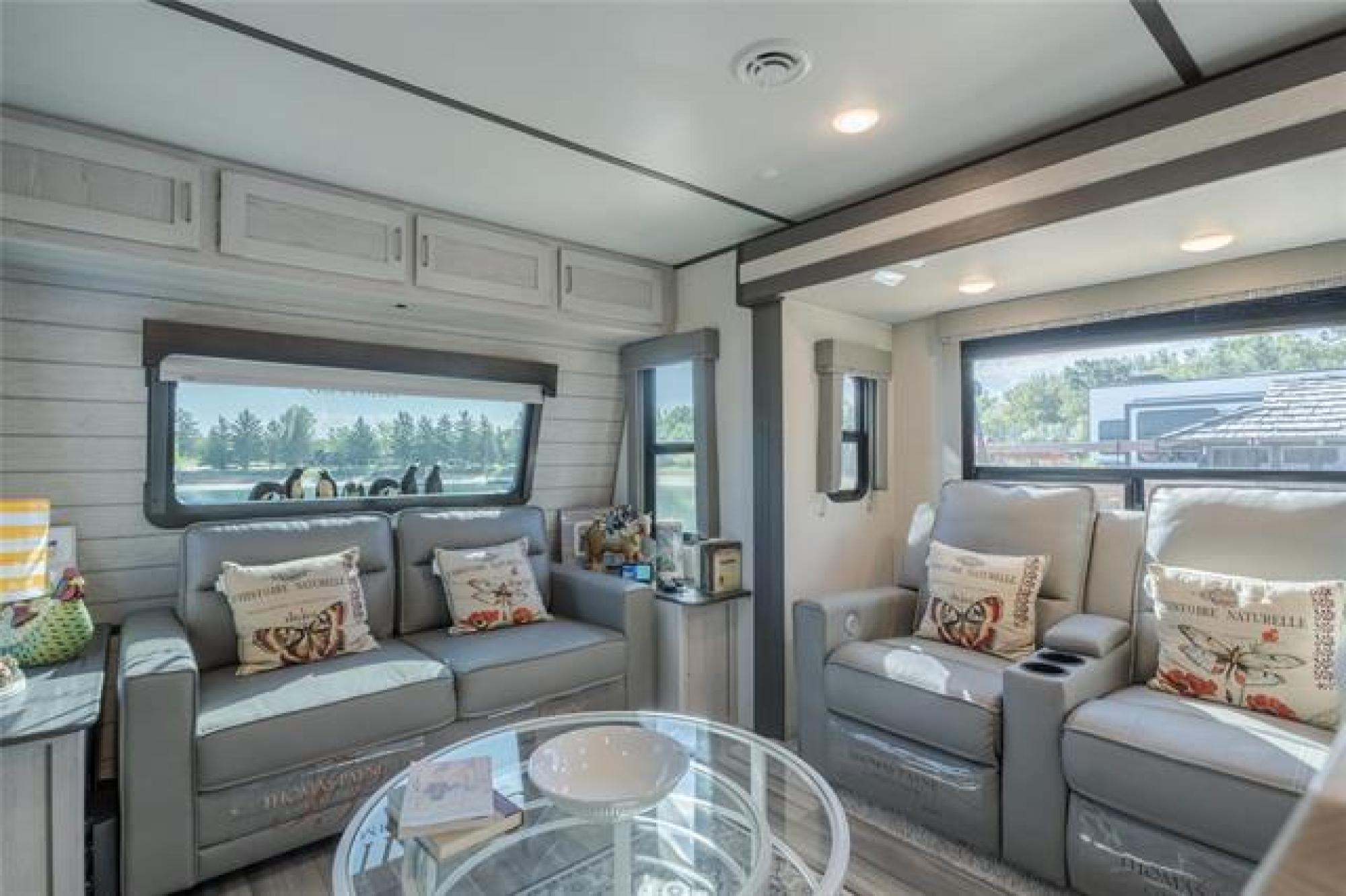 2022 Modular Lakeside Unit available in the highly desirable Cherry Hill Living Community! This model includes a 12' x 10' screened-in sunroom—perfect for enjoying sunsets without the nuisance of insects. The unit features a modern interior color scheme with stainless steel appliances, a cozy living room, a 3-piece bathroom, and a spacious primary bedroom. Cherry Hill offers a wide range of amenities, including swimming ponds, nearby golf, and community events such as fireworks displays, BBQ competitions, Family Days, pickleball courts, and more.