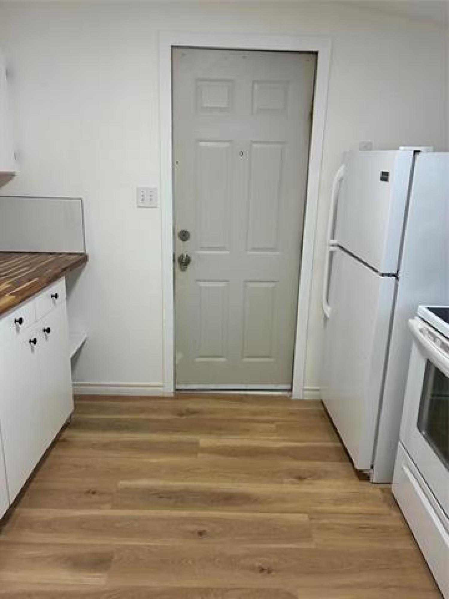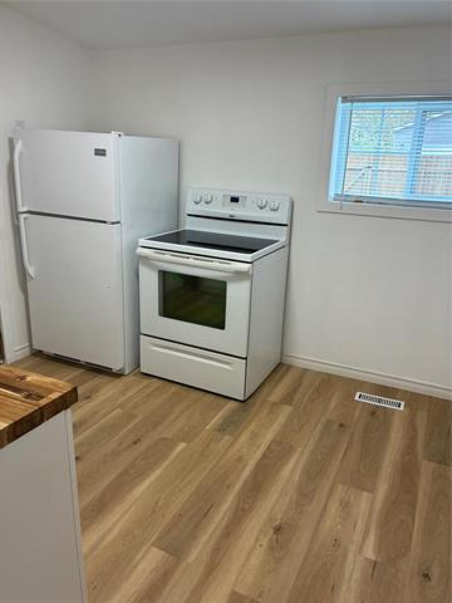 Showings Start now. Offers presented as received. Why pay rent when you can own this super cute & recently renovated bungalow located mid-block on a very family orientated street. When you enter the front door you will be impressed on how bright the living room/dining room are. Large windows flood the rooms with natural light. The eat-in kitchen has plenty of counter space with new butcher block counter, fridge & stove included. Remodelled 4 piece bathroom with character claw tub & shower. Other features of this cute home are: new shingles, completely painted inside, new luxury vinyl plank floor throughout, washer/dryer included, new fence & parking pad in the back that will accommodate up to 3 vehicles. You will also enjoy the cute front porch for having your coffee and/or reading a good book. Nothing to do, just move in!