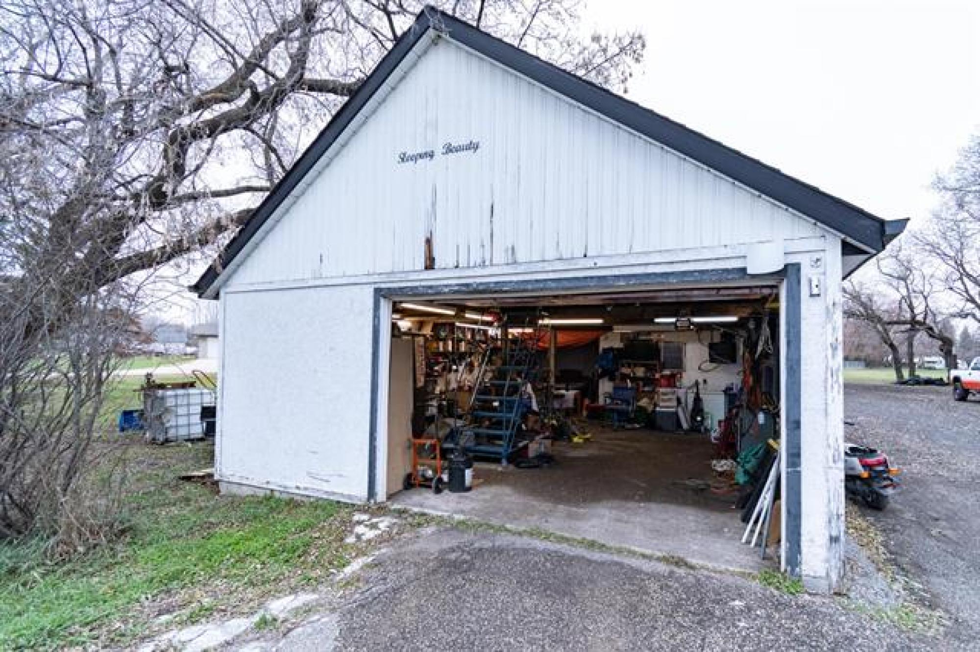 St Peters Hideaway! A perfect starter for your Backyard Mechanic. Feature rich, classic, one bedroom home incudes new DIY cabinets for the next owner, 150 amp custom service, newer window, panel and HWT - full unfinished basement area under original home w sump pump. Appliances included. Garage is insulated 26x22 w, a 12x22 mezzanine storage area includes a 10kw heater, 100 amp panel and new man door and garage door opener. Garage wired for tv cable since you probably live in there except to eat and sleep!! Cool tiki bar 10x12 shed was designed for a hot-tub room, also includes 10x20 storage building on skids and 11x8 lean-to storage on Garage. Beautiful 132x500 lot will accommodate your one day dream home, because you will fall in love with St Peters and the great community.