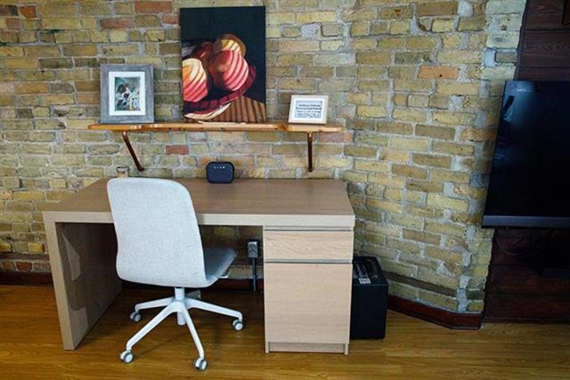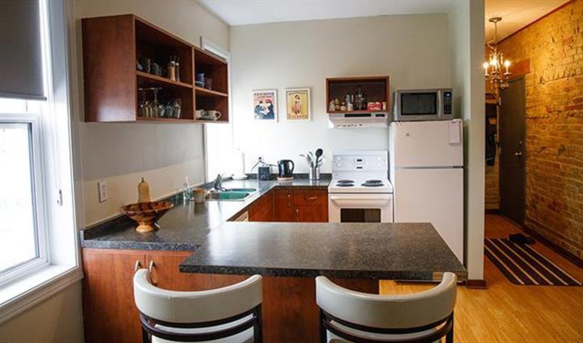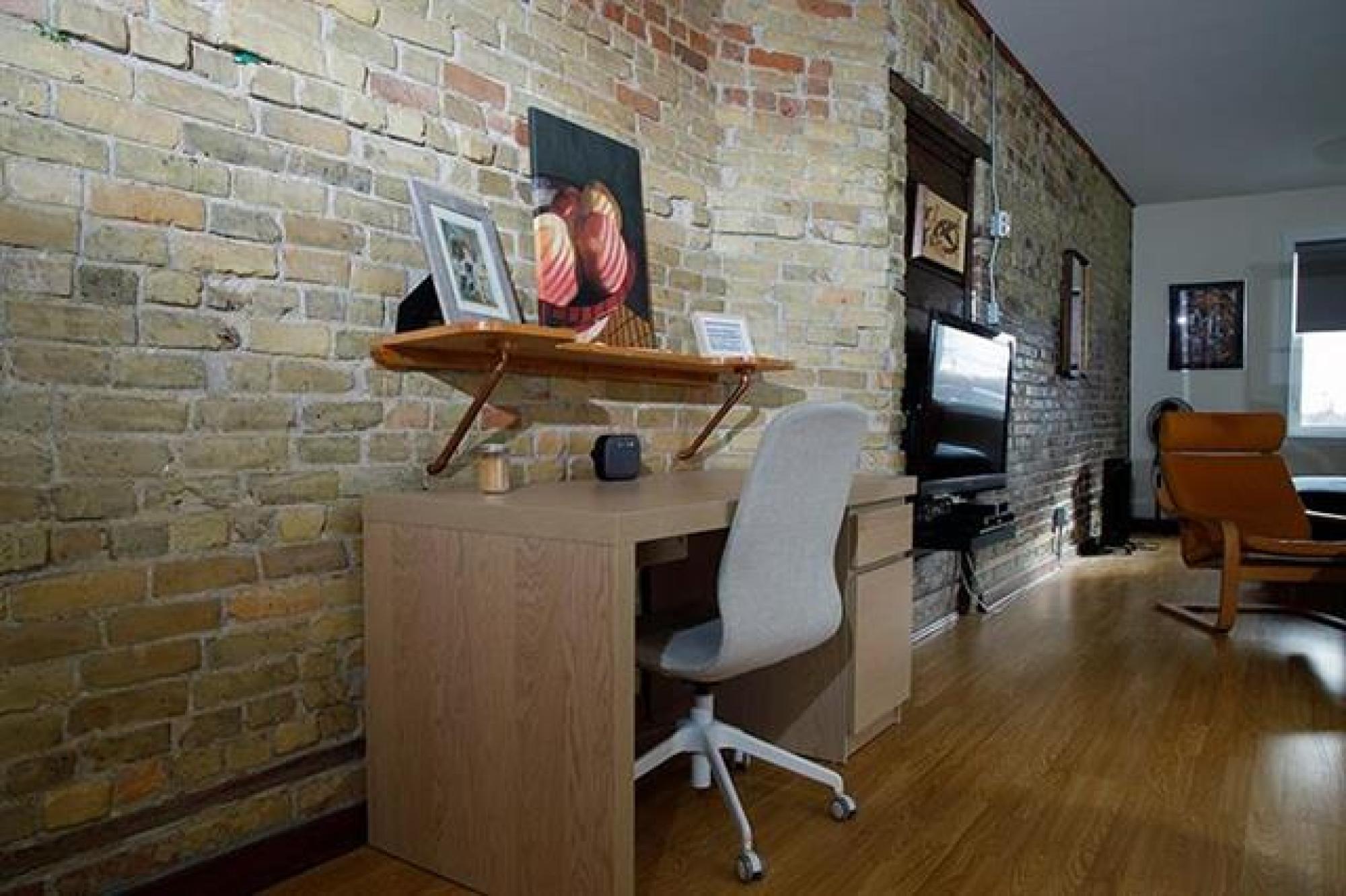 Stylish and contemporary loft-style bachelor suite with 9 ft ceilings, featuring a striking full brick feature wall which spans the entire unit. This Condo gives you the vibe and feel of the Exchange District. Bright and open floor plan, spacious kitchen, with the convenience of in suite laundry. Low condo fees of just $250/month make this home an ideal option for first-time buyers or investors, current owners had used as an Airbnb. Located in a secure building with a shared fenced in courtyard with a deck and fire pit area which enhances the outdoor living. Close to the U of W, directly adjacent to a school playground and steps from bus service. Walk to groceries, a drugstore, and a wide range of amenities in minutes. A unique blend of modern style and unbeatable convenience!