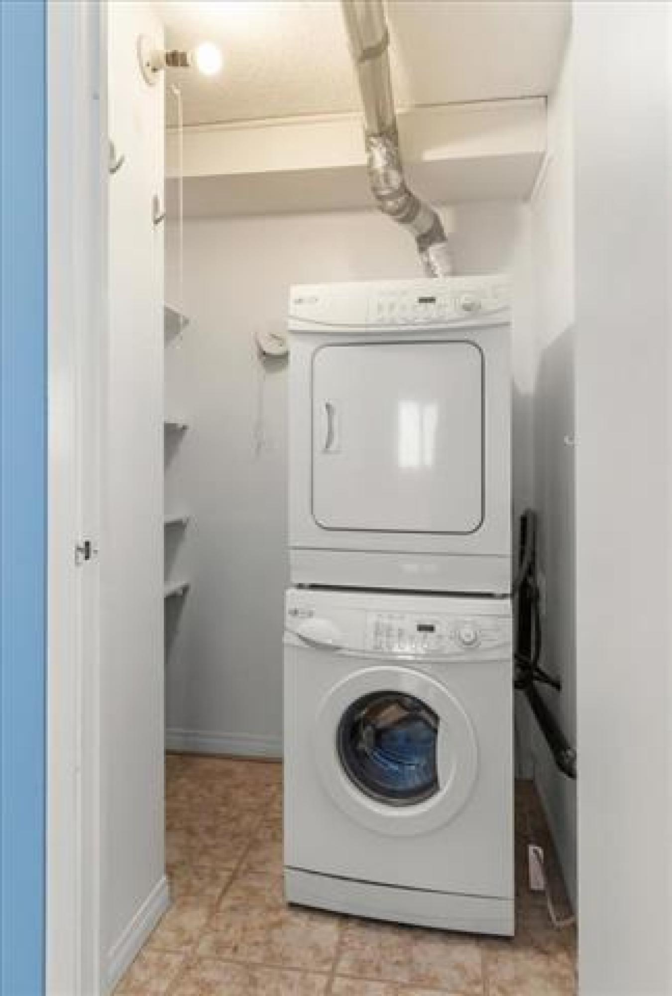 SS Now, Offers as received. Welcome to your unit in the sky — a rare top-floor, corner suite offering spectacular, unobstructed views in a quiet and solid concrete building. The open-concept living and dining area is filled with natural light and flows seamlessly into the bright, white kitchen, creating a comfortable and inviting space to relax or entertain. The unit features one spacious bedroom, a well-appointed 4-piece bathroom, and the convenience of in-suite laundry. Underground parking is included, adding year-round comfort and security. Situated in a fantastic location, this home is just steps from a wide range of amenities including shopping, dining, transit, and parks. Whether you’re a first-time buyer, downsizer, or investor, this move-in-ready unit offers exceptional value in an unbeatable setting.