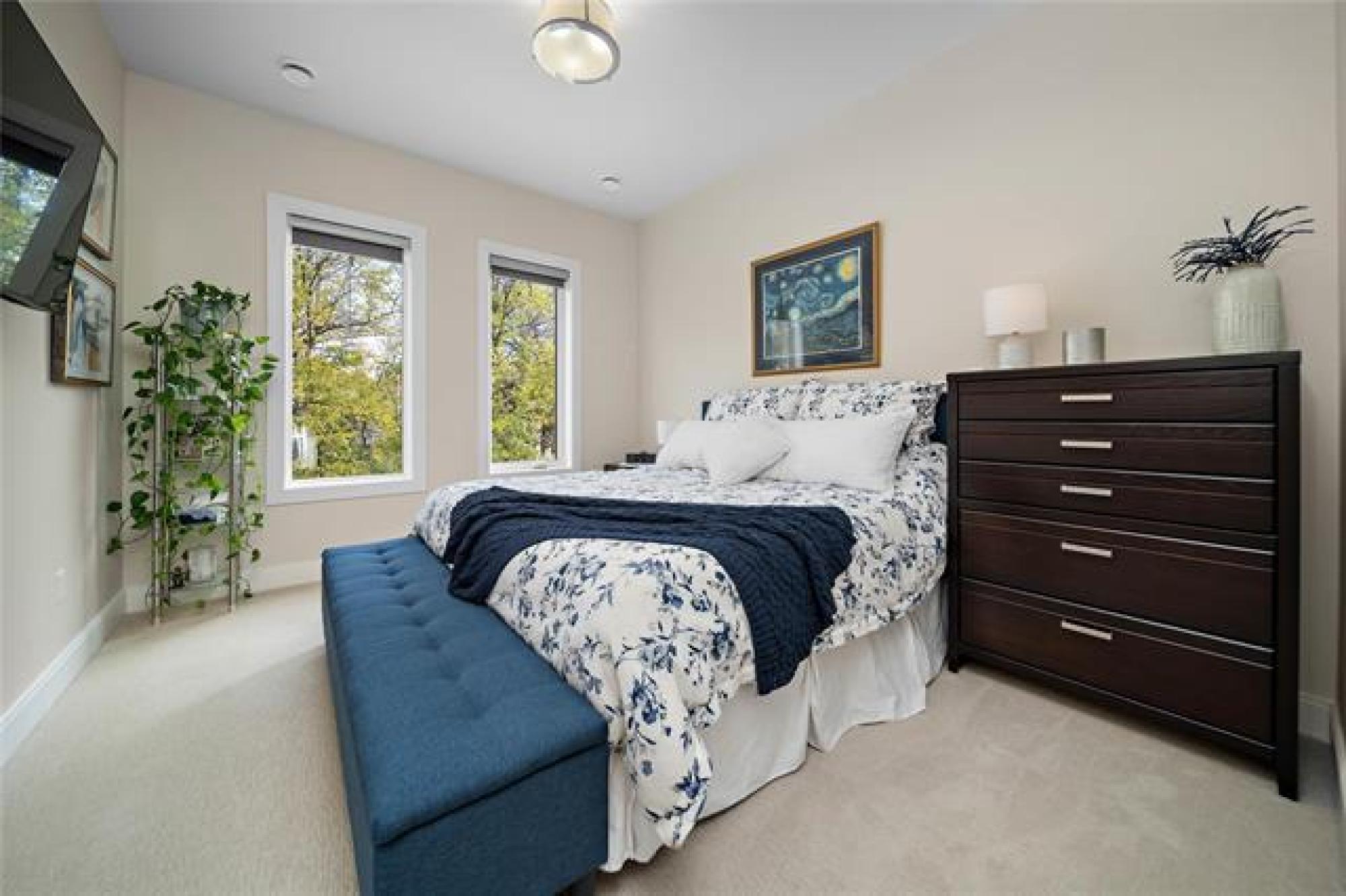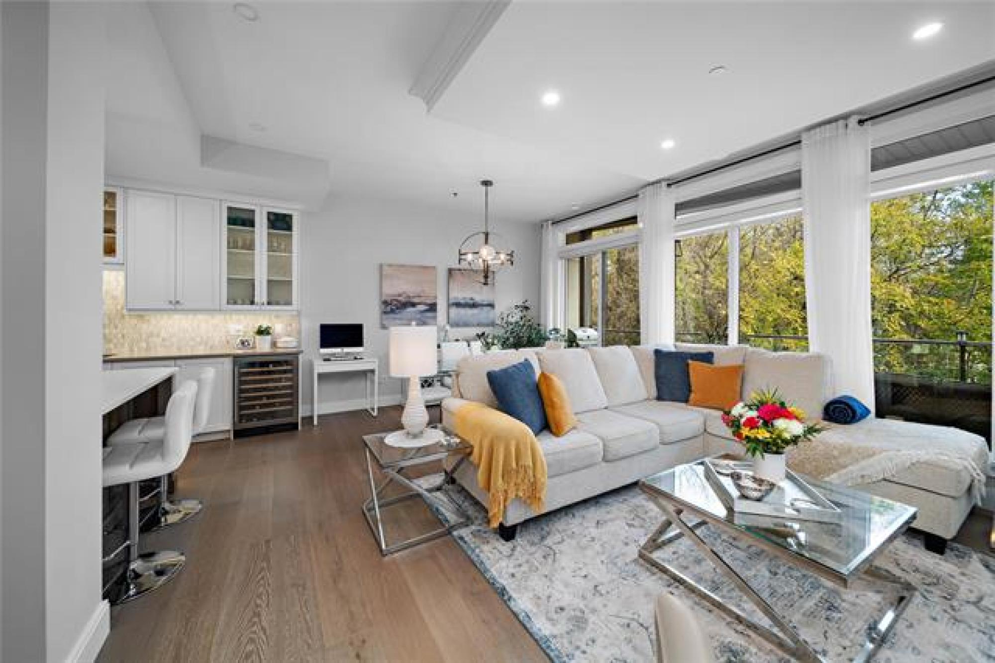 s/s NOW - Offers as rec'd - Sophisticated & Elegant living in Charleswood; Welcome to #203 - 5429 Roblin Blvd. This modern design 1 bedroom, 1 bathroom luxury condo offers 944 sq ft of elevated living; ideal for those looking to downsize without compromise or those looking for a lifestyle of ease & style. Built in 2021, this condo boasts an open concept living space w/ soaring high ceilings, ample storage space & floor to ceiling windows that frame the views of lush green space & mature trees. The stunning kitchen features gleaming quartz countertops, s/s appliances, built in wine fridge & counter height peninsula for everyday dining. The spacious primary BR has a generous sized walk in closet w/ a 3pc spa like bathroom just down the hall. Bask in the peace & quiet on your private balcony to start your day w/ your morning coffee. There are numerous amenities to appreciate; a fitness room, library, large common room to gather & watch the Jets game & 3 bonus, luxury guest suites for your friends or family members to enjoy when coming to visit. Location is PRIME - close to the Assiniboine river, restaurants, shopping and more. Experience it first hand - schedule your private showing today.