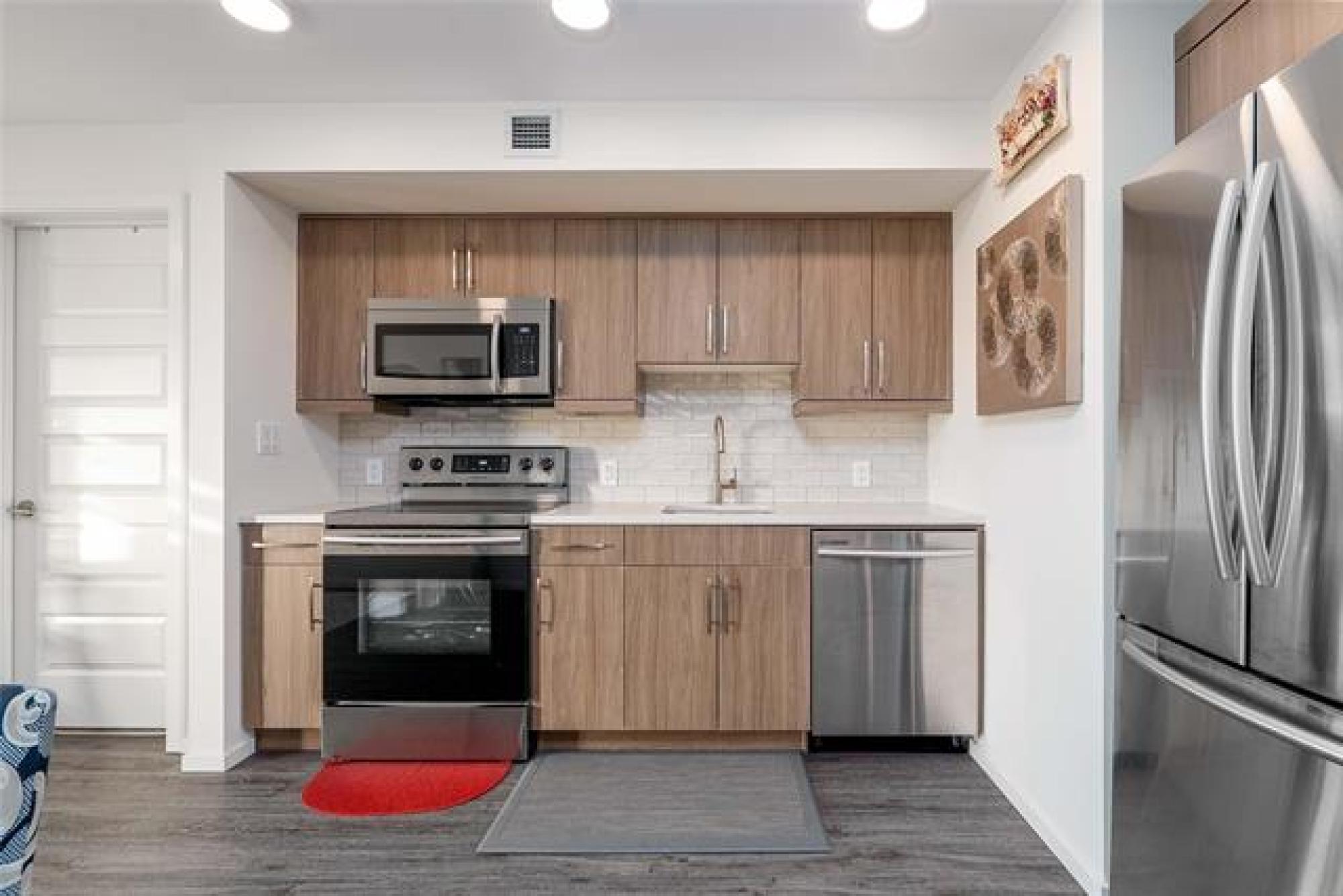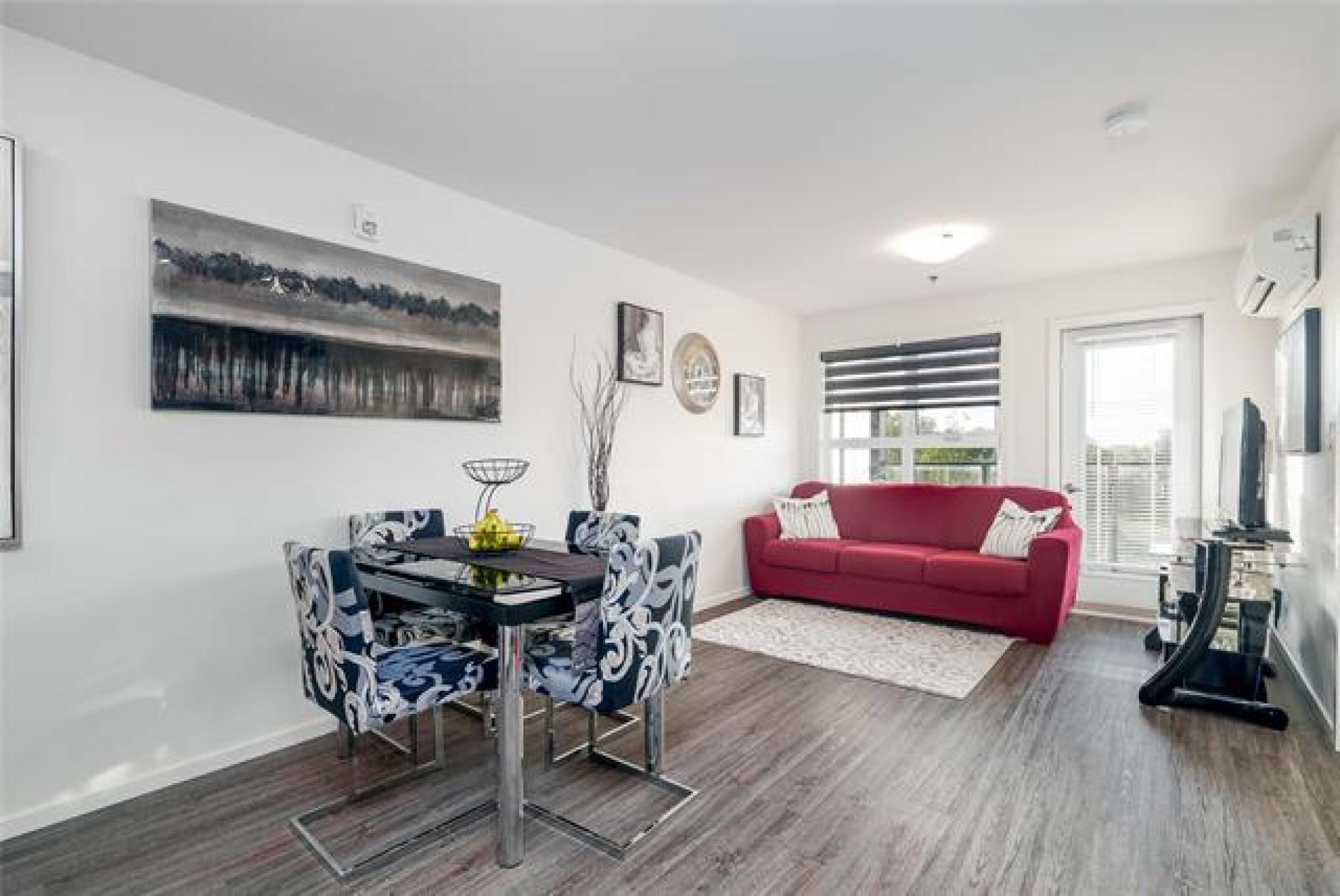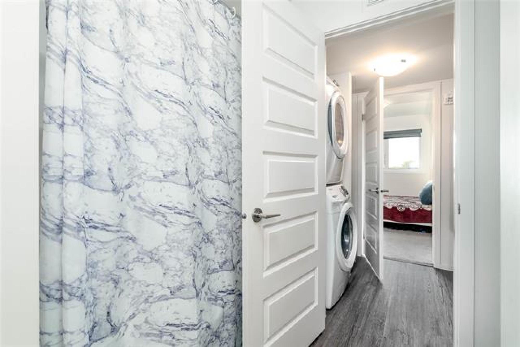 Showings start now. Offers as received. This beautifully designed 1-bedroom, 1-bathroom condo in the sought-after Hudson Condominiums, built in 2018, offers modern, stylish living in a vibrant, amenity-rich neighbourhood. Ideally located near Costco and Kildonan Place Mall, enjoy easy access to shopping, groceries, restaurants, and public transit, making daily errands and commuting a breeze. The bright, open-concept unit features a spacious primary bedroom with a walk-in closet and direct access to the bathroom and in-suite laundry for added convenience. Unwind on your private balcony overlooking the neighbourhood. Residents benefit from excellent amenities including a well-equipped fitness room, a welcoming party/lounge area perfect for entertaining, and a safe playground for kids. The unit includes one outdoor parking stall and a private storage locker. Ideal for first-time buyers, downsizers, or investors seeking low-maintenance, contemporary living in a fantastic location. Don’t miss this exceptional opportunity to make Hudson Condominiums your new home!