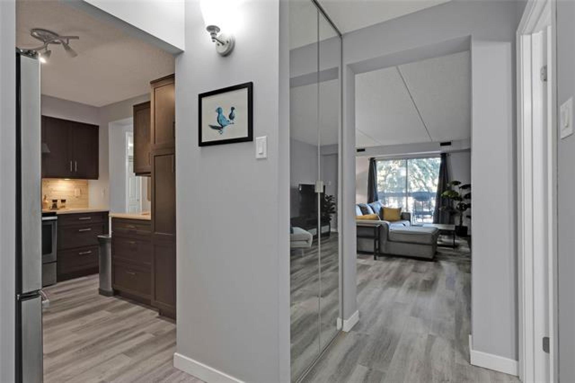 SS Oct 1, OTP Oct 7.Desirable Tuxedo, Park Terrace Complex. This Beautifully Maintained Condo offers a Spacious, Open Floor Plan and is Solid & Stylish! Concrete Building. Modern & Updated 1 bed, 2bath suite w/ Laminate flooring, Renovated Kitchen w/A+ Appliances & Glass Tile Back Splash. Wood-burning Fireplace in large Living-Room/ Dining Room w/ Patio doors to West-facing Balcony with extra Storage. King-Sized PB w/ Ample Closets & Dreamy 4pc ensuite. Designer Décor & Color Pallet too! In suite laundry. Large Storage room. Underground Heated Parking spot included & additional outdoor stalls available. Also, this complex has an Elevator, plenty of Visitor Parking & easy access to transit & all amenities. Lovely landscaping & location and an on-site caretaker too. Condo fees included Cable TV and Internet! This Space does not disappoint! Lucky you!
