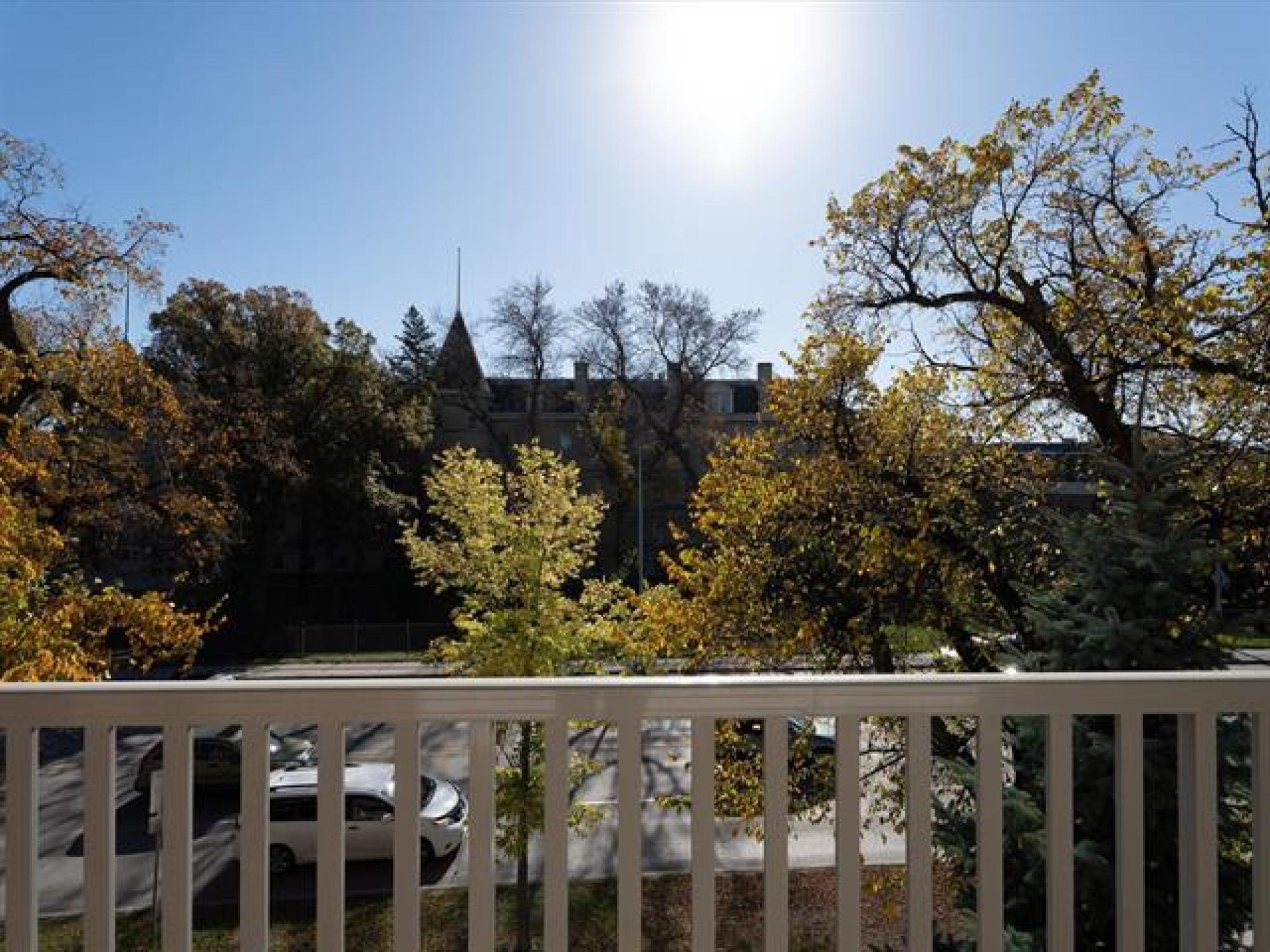 Showings start 6/10. Offers reviewed as received. OPEN HOUSE SUNDAY OCTOBER 19 2-4PM. Located 10 minutes from downtown & 5 minutes to Corydon, this pet friendly condo is tastefully designed & beautifully finished. The open concept kitchen/living area offers warm wood & neutral tile flooring with clever storage solutions & ample cabinetry, s/s appliances, a built in glass cooktop, hood fan, dishwasher, double door fridge +ice/water dispenser, a wine fridge, a built in microwave & oven. The granite countertops are the main feature; soft silver & rich brick tones splash throughout! The Bathroom compliments the home with a glass vessel sink, paneled shower system with multiple settings, floor to ceiling tile and glass enclosure. The bedroom features a double closet, with room for a queen sized bed and furniture. The storage room includes updated digital washer/dryer. Enjoy the beautiful balcony with river stone walls & slate grey tile flooring. Act now as these pet friendly units rarely come to market!