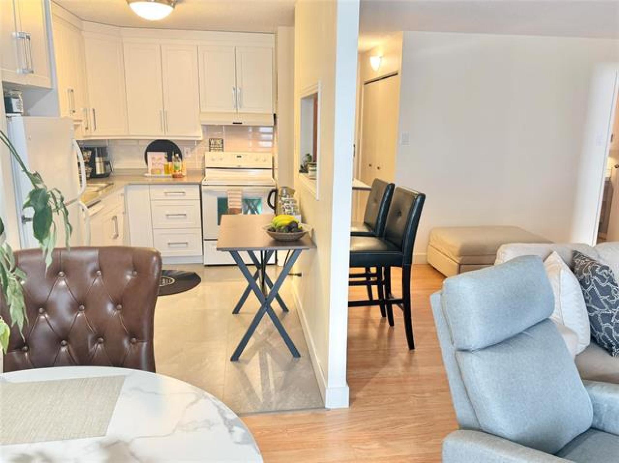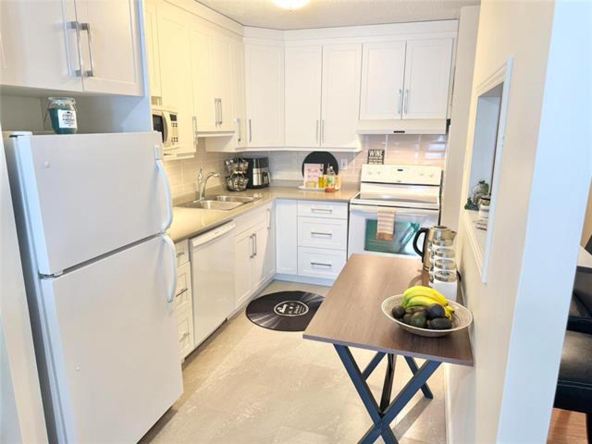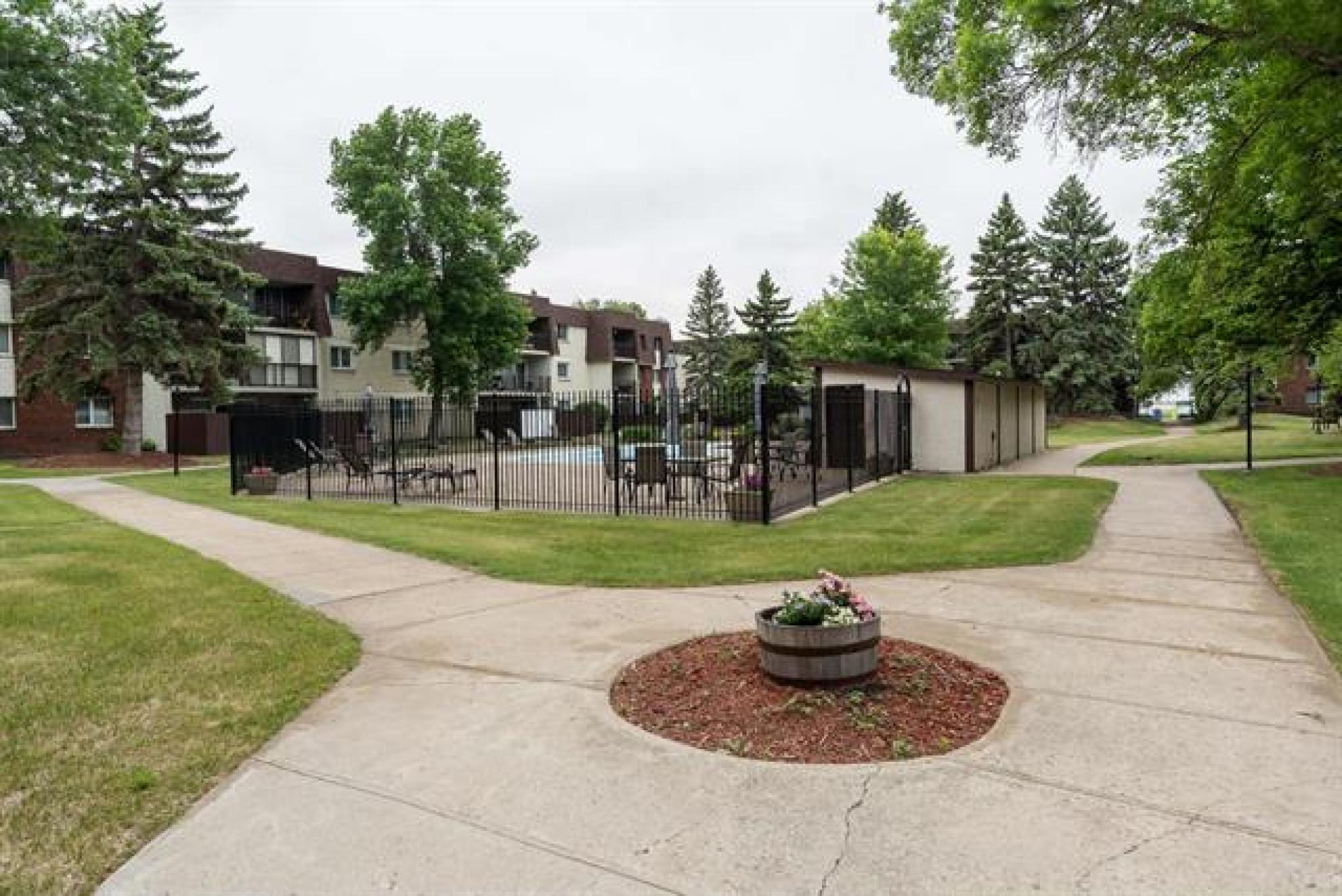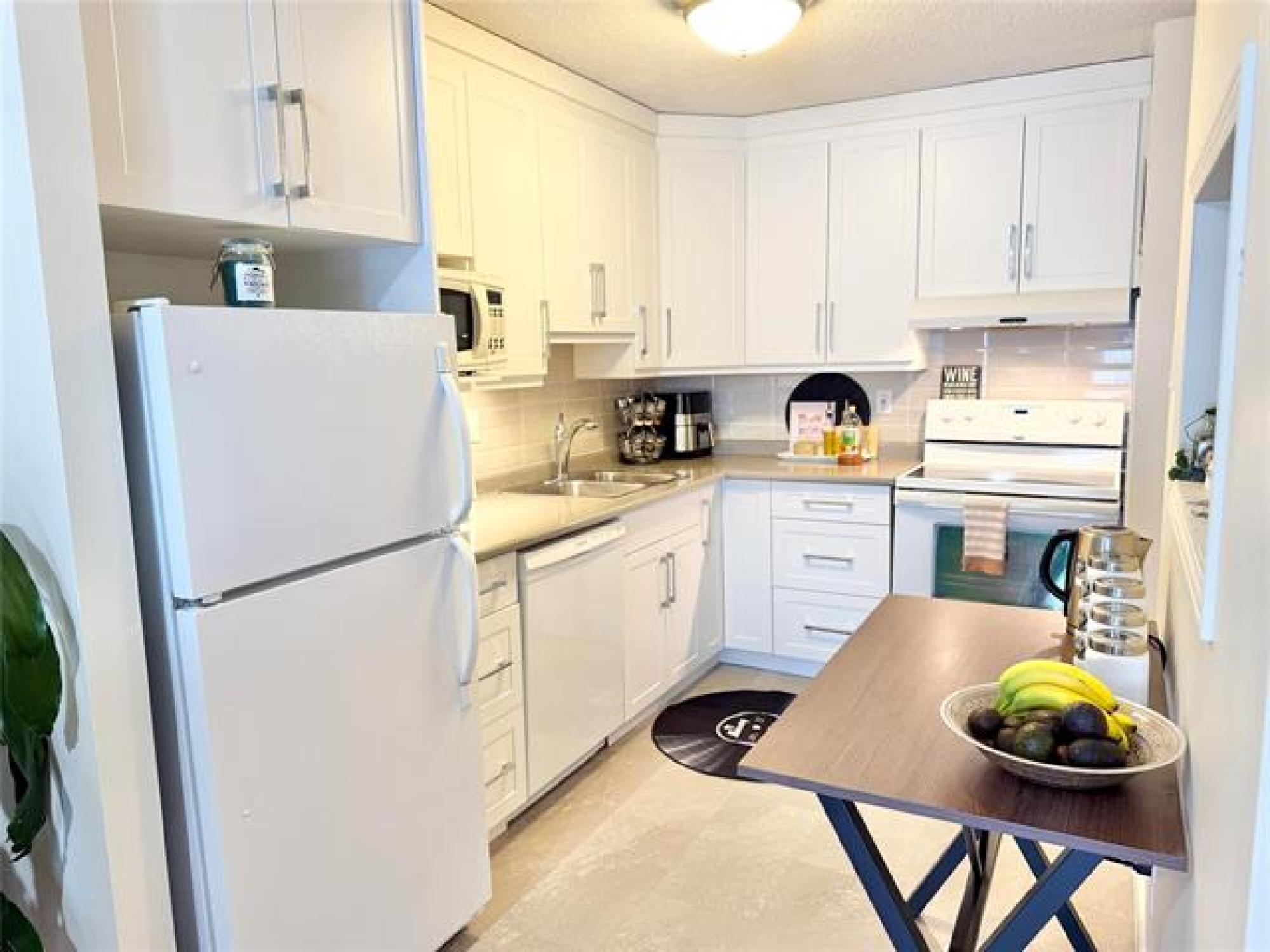 SS NOW | OPEN HOUSE SATURDAY JAN 10th NOON-1:30 OFFERS ANYTIME. Cool vibes, smart space, and a location that just makes life easier. Spacious 1 bedroom, 1 bathroom condo delivers big rooms, an easy flow, and a layout that actually works even if you need home office desk space. The brag-worthy modern white kitchen has tall updated cabinets, grey tile backsplash and a coffee bar space with a breakfast bar on the other side. You’ll love the updated bathroom too with great storage. The bedroom is so huge you can bring all your large furniture plus there’s a huge walk-in closet which will easily fit 2 people’s clothes! The private top floor balcony is perfect for coffee, plants, or unwinding with friends and a BBQ . Your inground pool is surrounded by mature trees, walking paths, bike storage and tennis courts. This well-managed complex feels established and relaxed plus has extra parking for rent. And when you’re ready to head out you’re close to everything: IKEA, shops, dining, and even a new gas station and convenience stores coming soon right in the neighbourhood. Comfortable, stylish, affordable, treed courtyard with benches and pet friendly-feels like its own little resort in an excellent location.