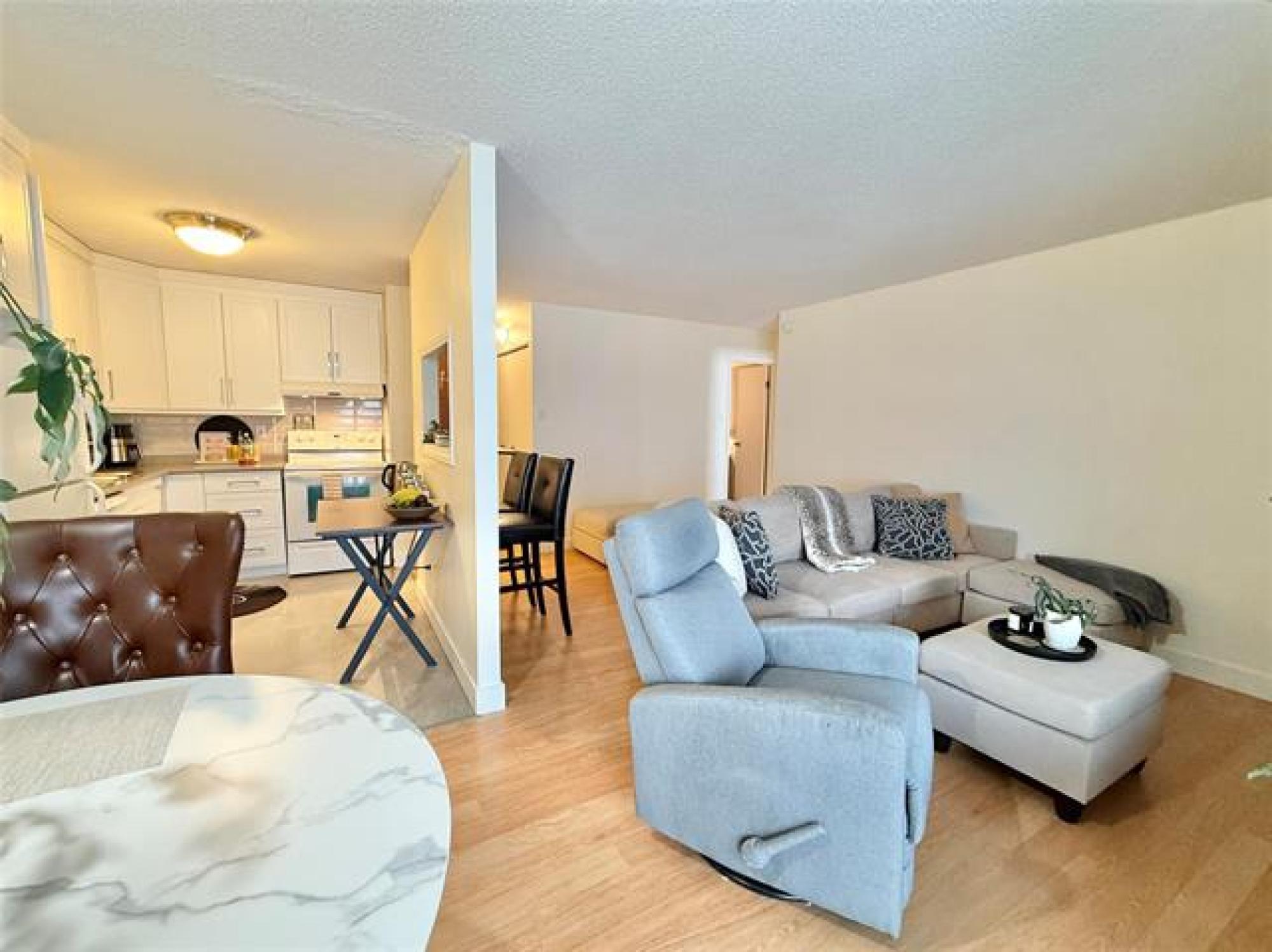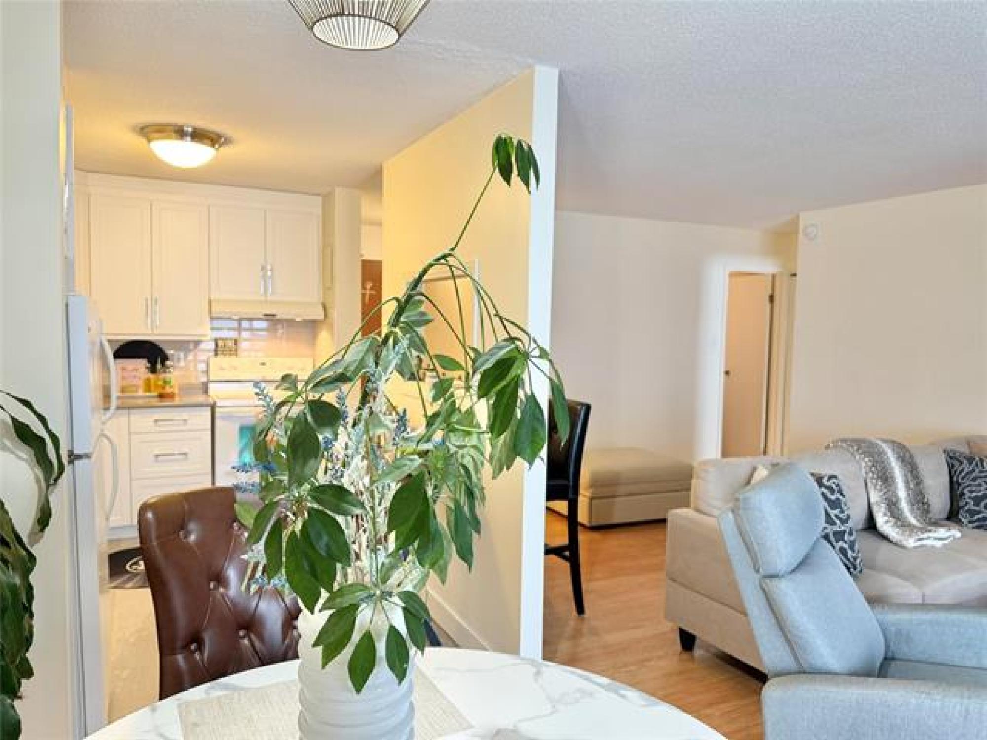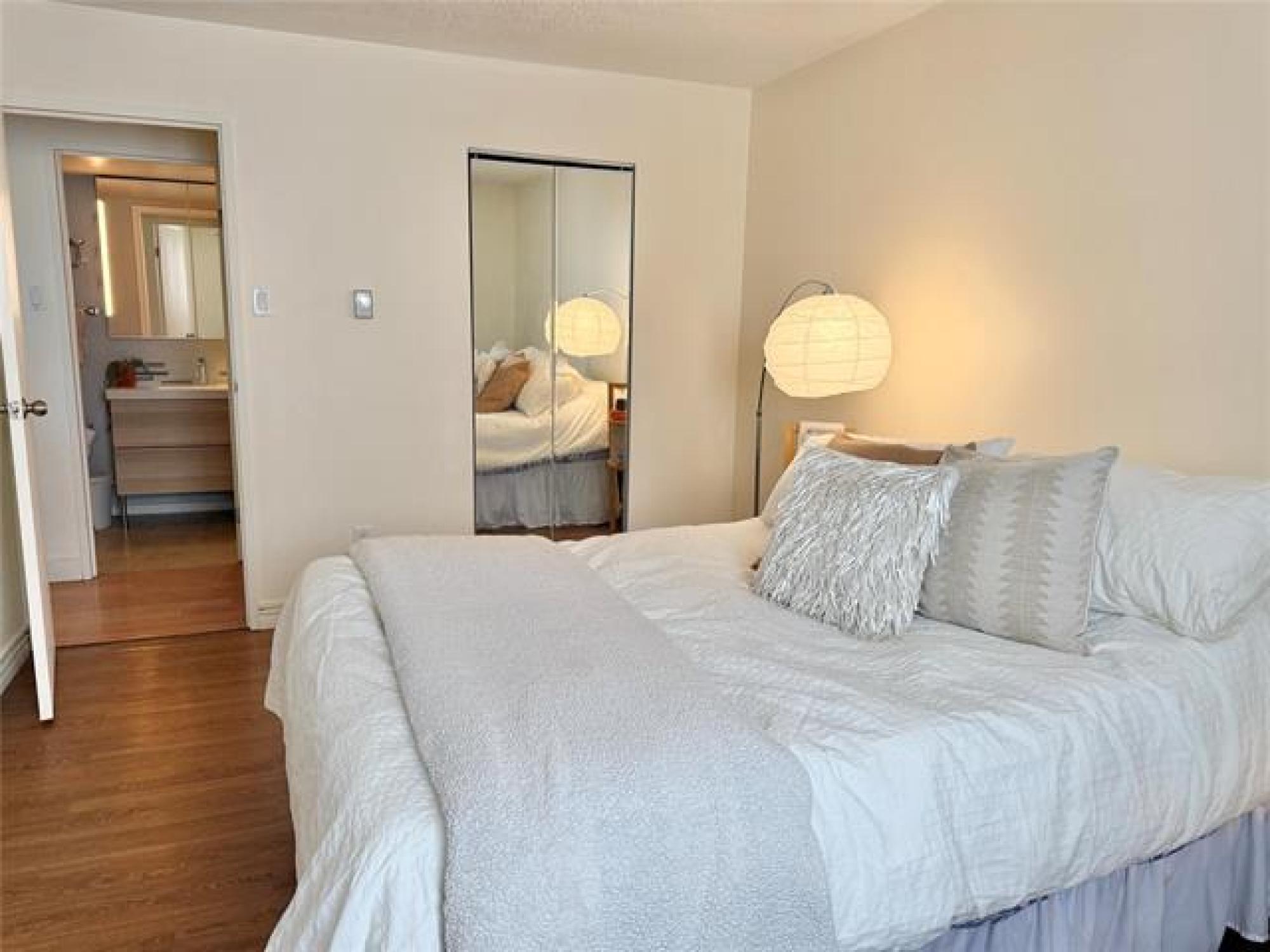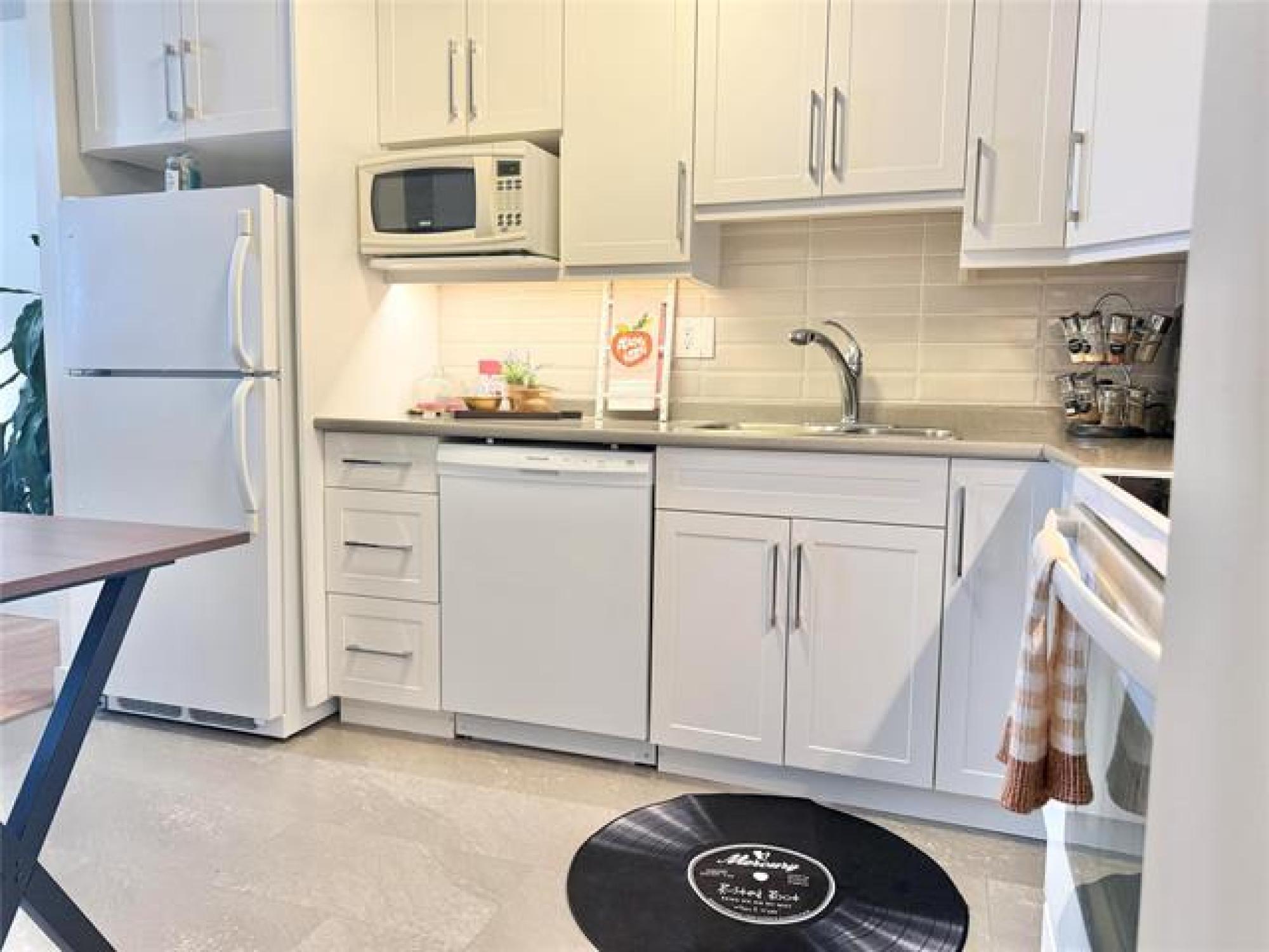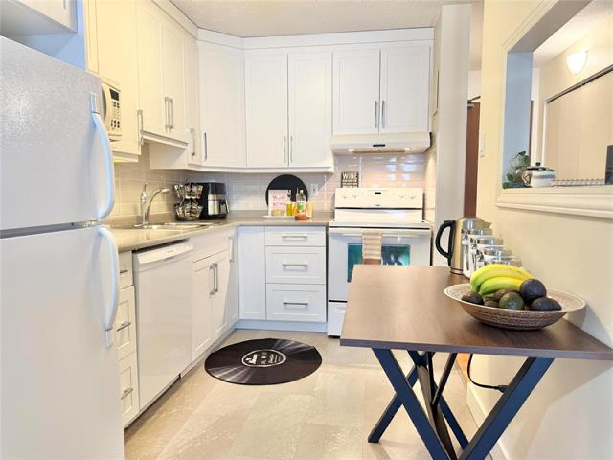 SS NOW | OPEN HOUSE SATURDAY JAN 10th NOON-1:30 OFFERS ANYTIME. Cool vibes, smart space, and a location that just makes life easier. Spacious 1 bedroom, 1 bathroom condo delivers big rooms, an easy flow, and a layout that actually works even if you need home office desk space. The brag-worthy modern white kitchen has tall updated cabinets, grey tile backsplash and a coffee bar space with a breakfast bar on the other side. You’ll love the updated bathroom too with great storage. The bedroom is so huge you can bring all your large furniture plus there’s a huge walk-in closet which will easily fit 2 people’s clothes! The private top floor balcony is perfect for coffee, plants, or unwinding with friends and a BBQ . Your inground pool is surrounded by mature trees, walking paths, bike storage and tennis courts. This well-managed complex feels established and relaxed plus has extra parking for rent. And when you’re ready to head out you’re close to everything: IKEA, shops, dining, and even a new gas station and convenience stores coming soon right in the neighbourhood. Comfortable, stylish, affordable, treed courtyard with benches and pet friendly-feels like its own little resort in an excellent location.