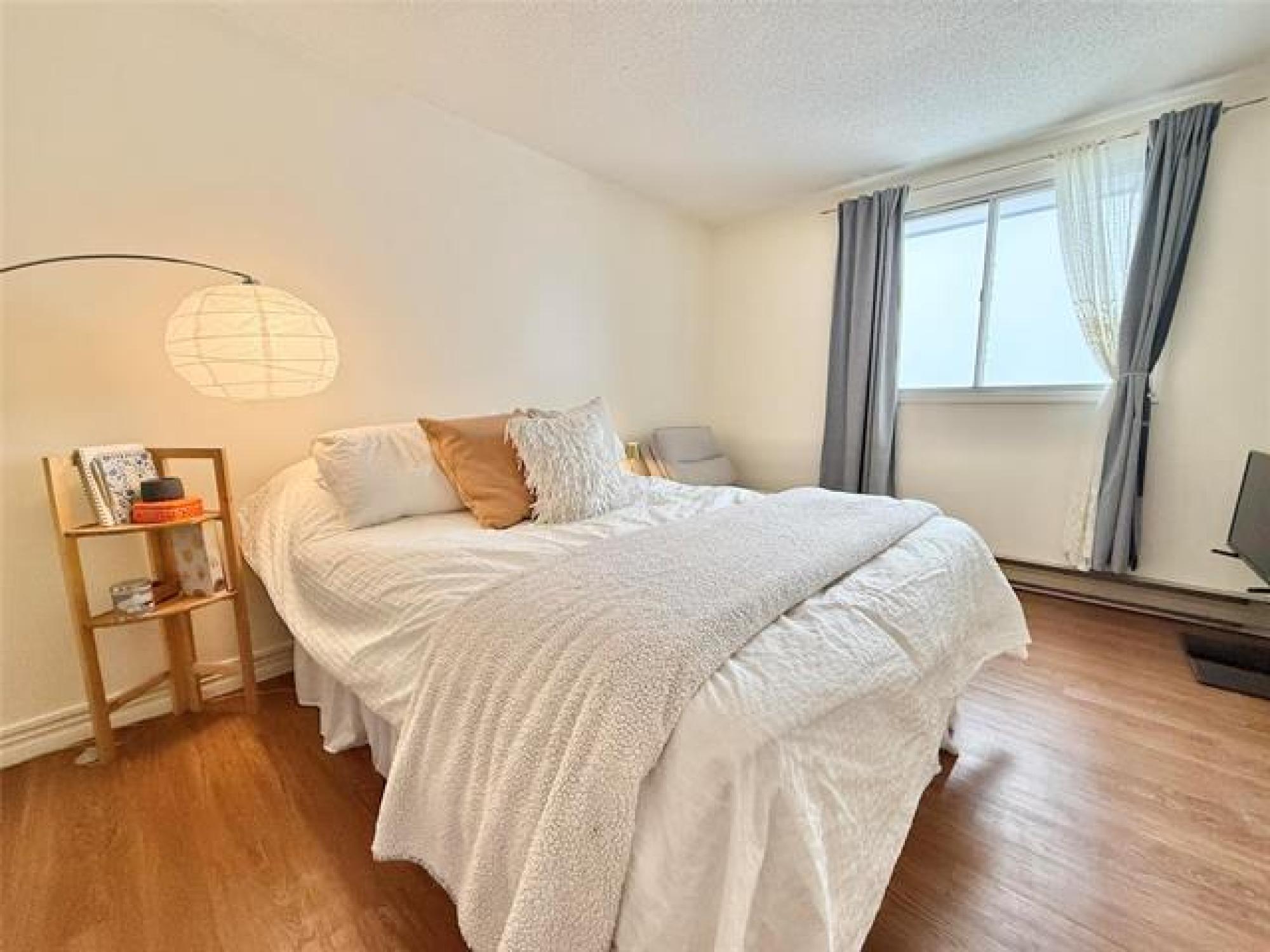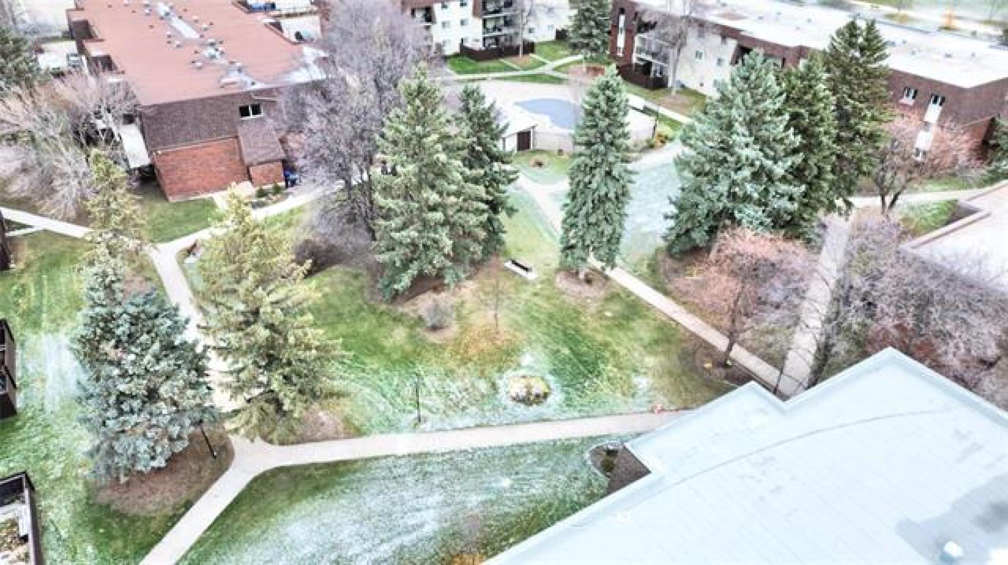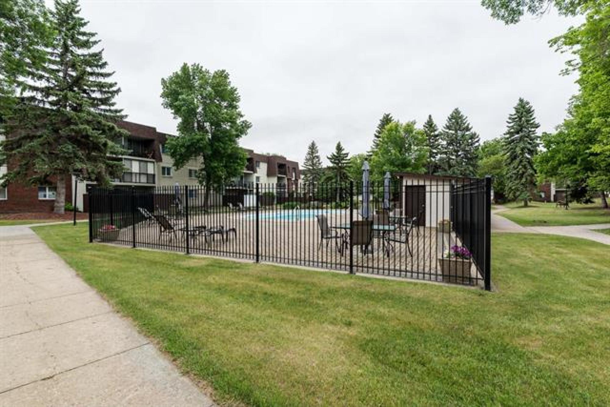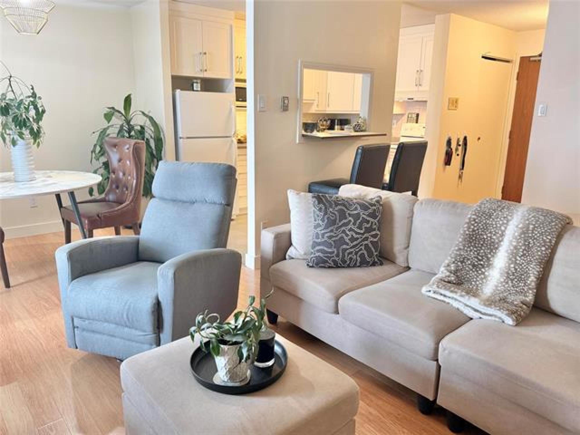 SS NOW | OPEN HOUSE SATURDAY JAN 10th NOON-1:30 OFFERS ANYTIME. Cool vibes, smart space, and a location that just makes life easier. Spacious 1 bedroom, 1 bathroom condo delivers big rooms, an easy flow, and a layout that actually works even if you need home office desk space. The brag-worthy modern white kitchen has tall updated cabinets, grey tile backsplash and a coffee bar space with a breakfast bar on the other side. You’ll love the updated bathroom too with great storage. The bedroom is so huge you can bring all your large furniture plus there’s a huge walk-in closet which will easily fit 2 people’s clothes! The private top floor balcony is perfect for coffee, plants, or unwinding with friends and a BBQ . Your inground pool is surrounded by mature trees, walking paths, bike storage and tennis courts. This well-managed complex feels established and relaxed plus has extra parking for rent. And when you’re ready to head out you’re close to everything: IKEA, shops, dining, and even a new gas station and convenience stores coming soon right in the neighbourhood. Comfortable, stylish, affordable, treed courtyard with benches and pet friendly-feels like its own little resort in an excellent location.