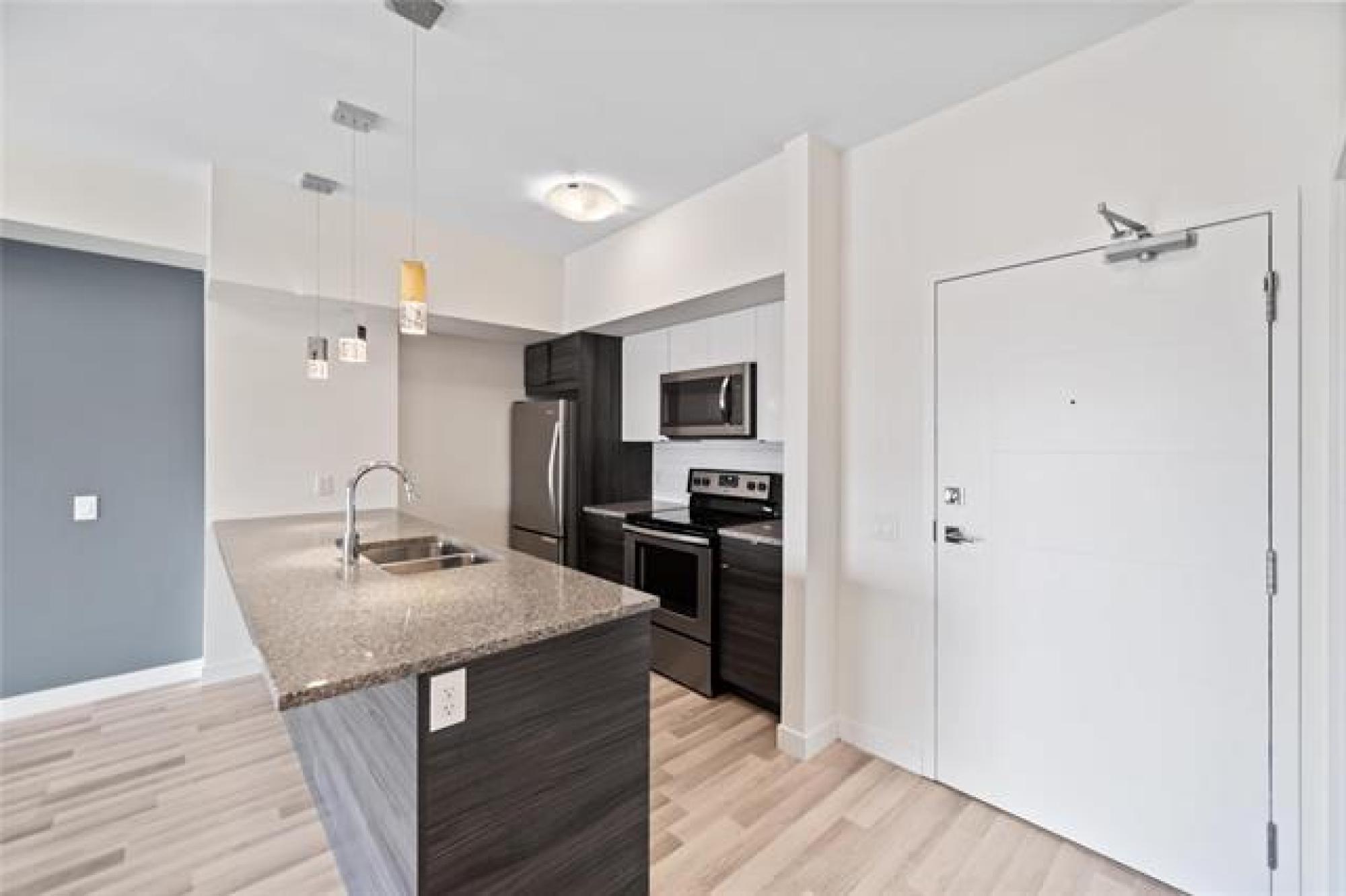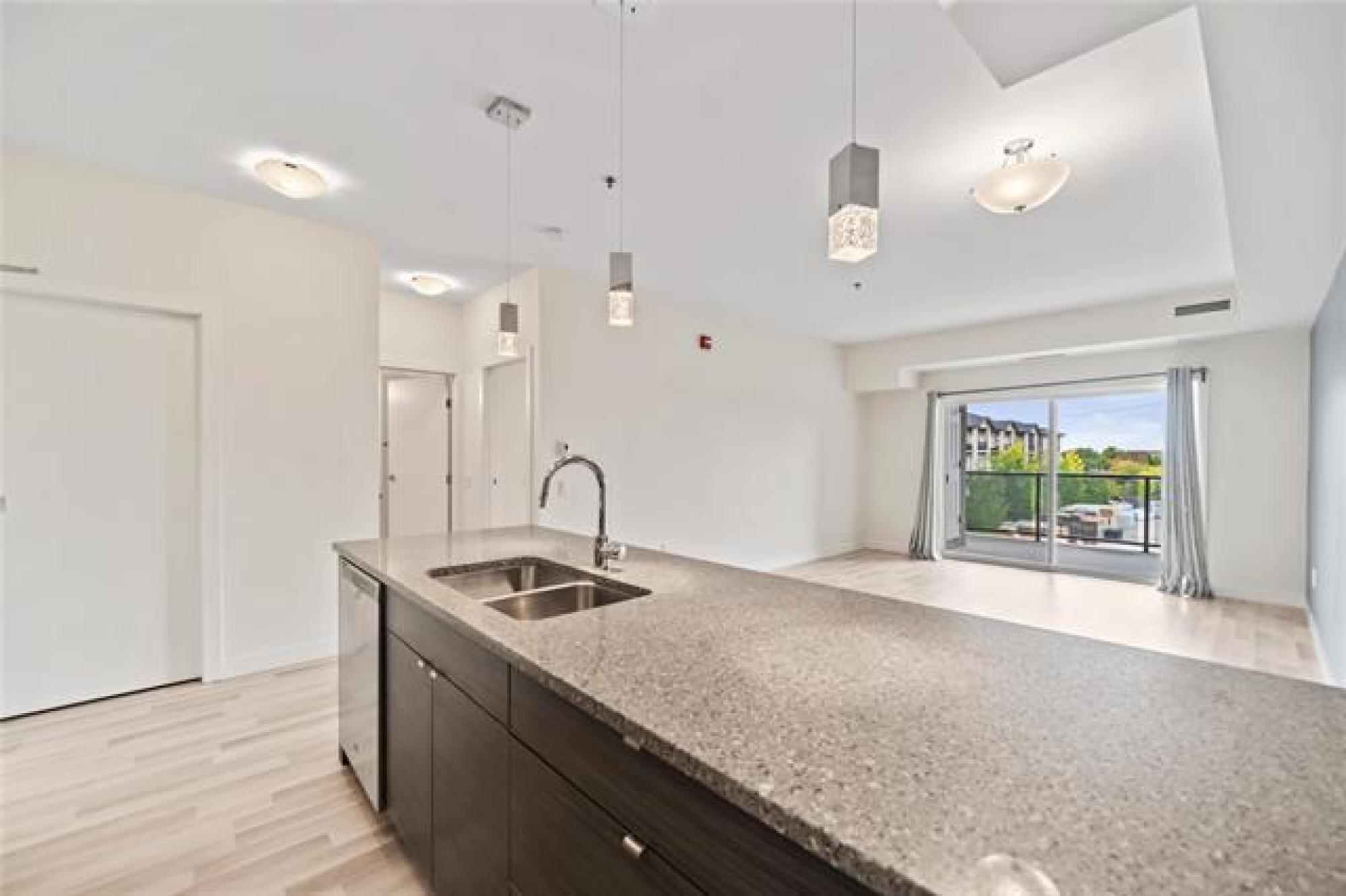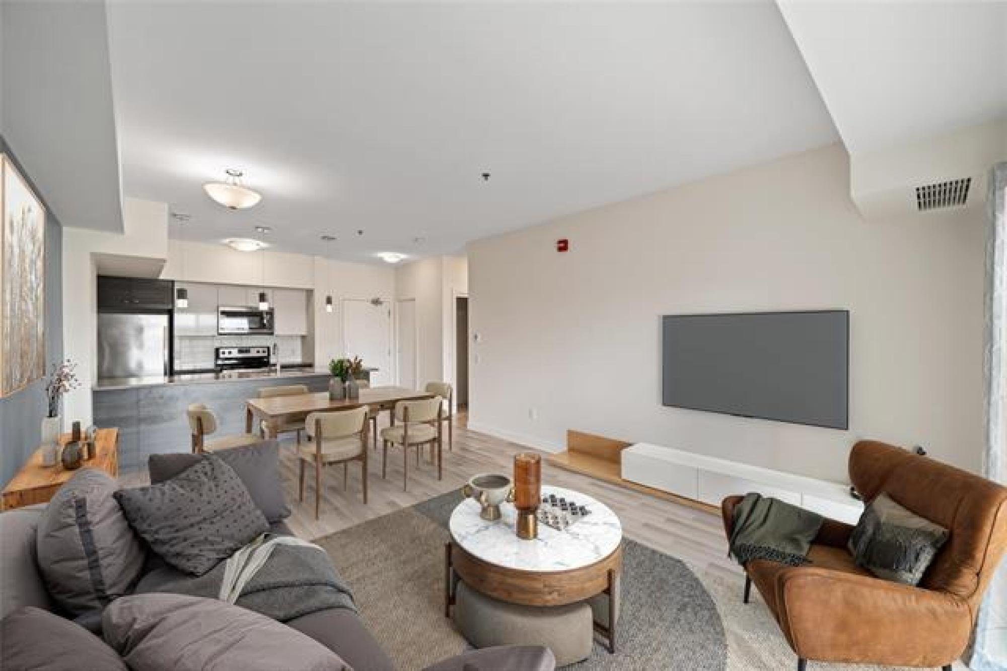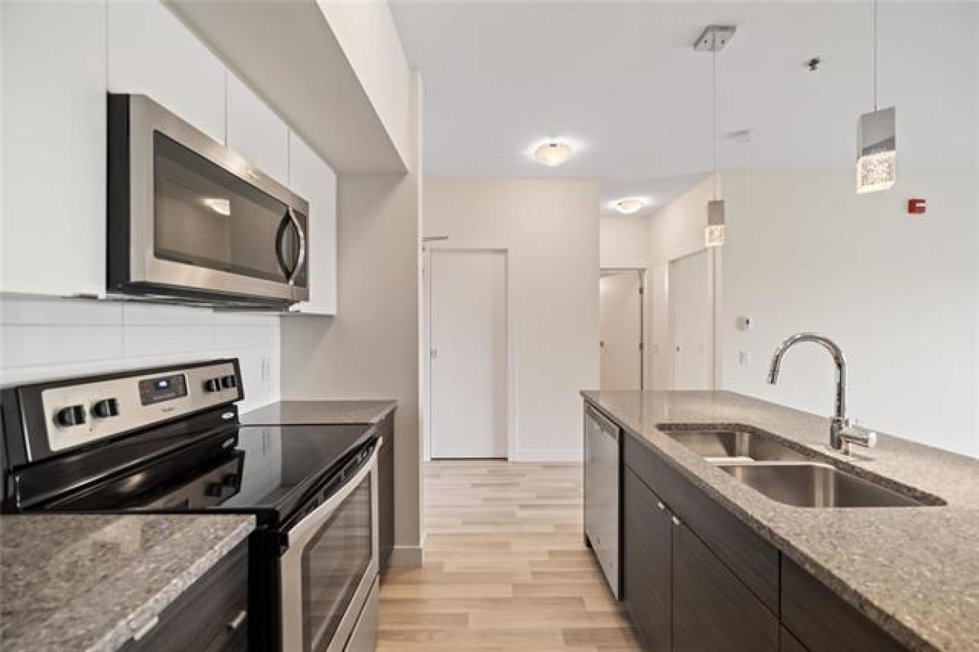 Offers as received. Welcome to this spacious well maintained 1 bedroom & 1 bathroom unit on the third floor with an outdoor parking stall in a newly constructed building. The unit has a large kitchen island with a large sliding patio door to the large balcony which offers tons of natural light. The unit has quartz countertops throughout with stainless steel appliances with the microwave combination hood fan vented to the outside and in-suite stackable laundry. Some photos are virtually staged. Please call for more info.
