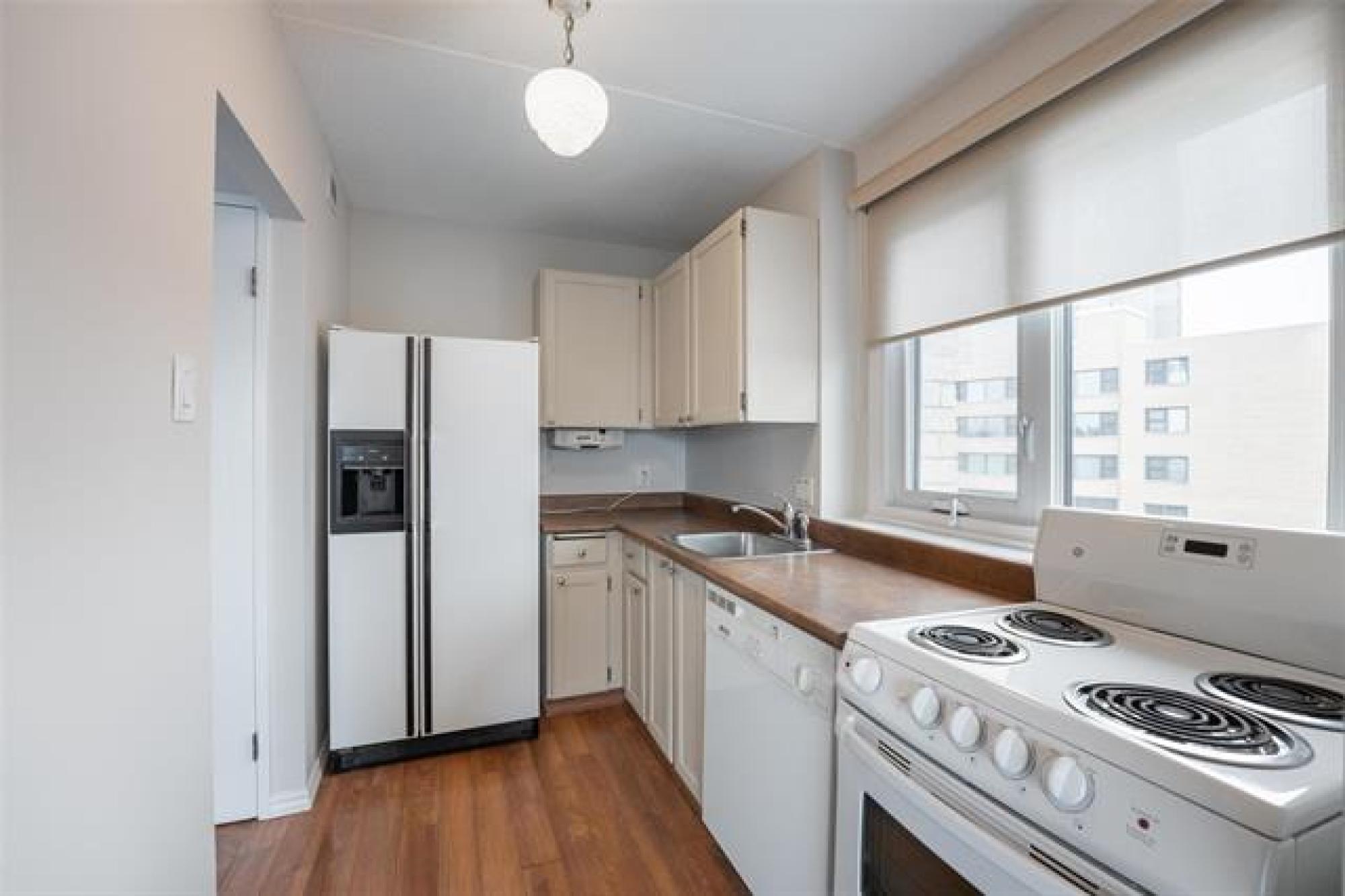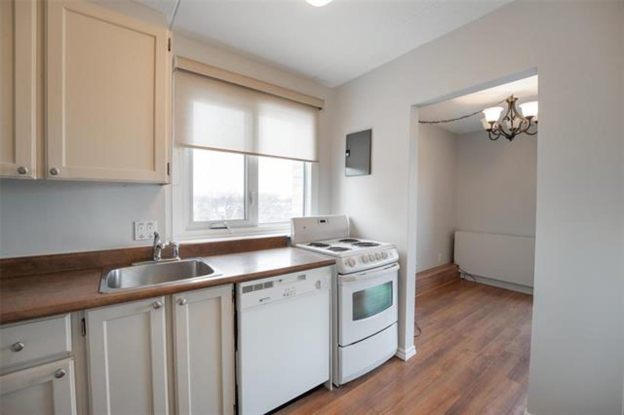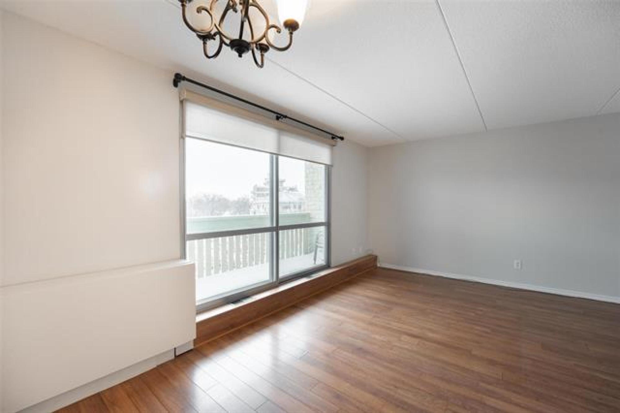 Showings now, offers anytime. Location! Get ready to be impressed by this bright, sunny, and spacious one-bedroom condo overlooking the crescent. This fantastic corner unit features an L-shaped living and dining area, complemented by a large kitchen window offering a beautiful view. The unit has been recently upgraded with tri-pane windows. Plenty of storage, large balcony with east to west views. Building backs onto the river, great for walking, biking and steps away from corydon shopping and restaurants. Elevator access, laundry on your floor, secure entry.