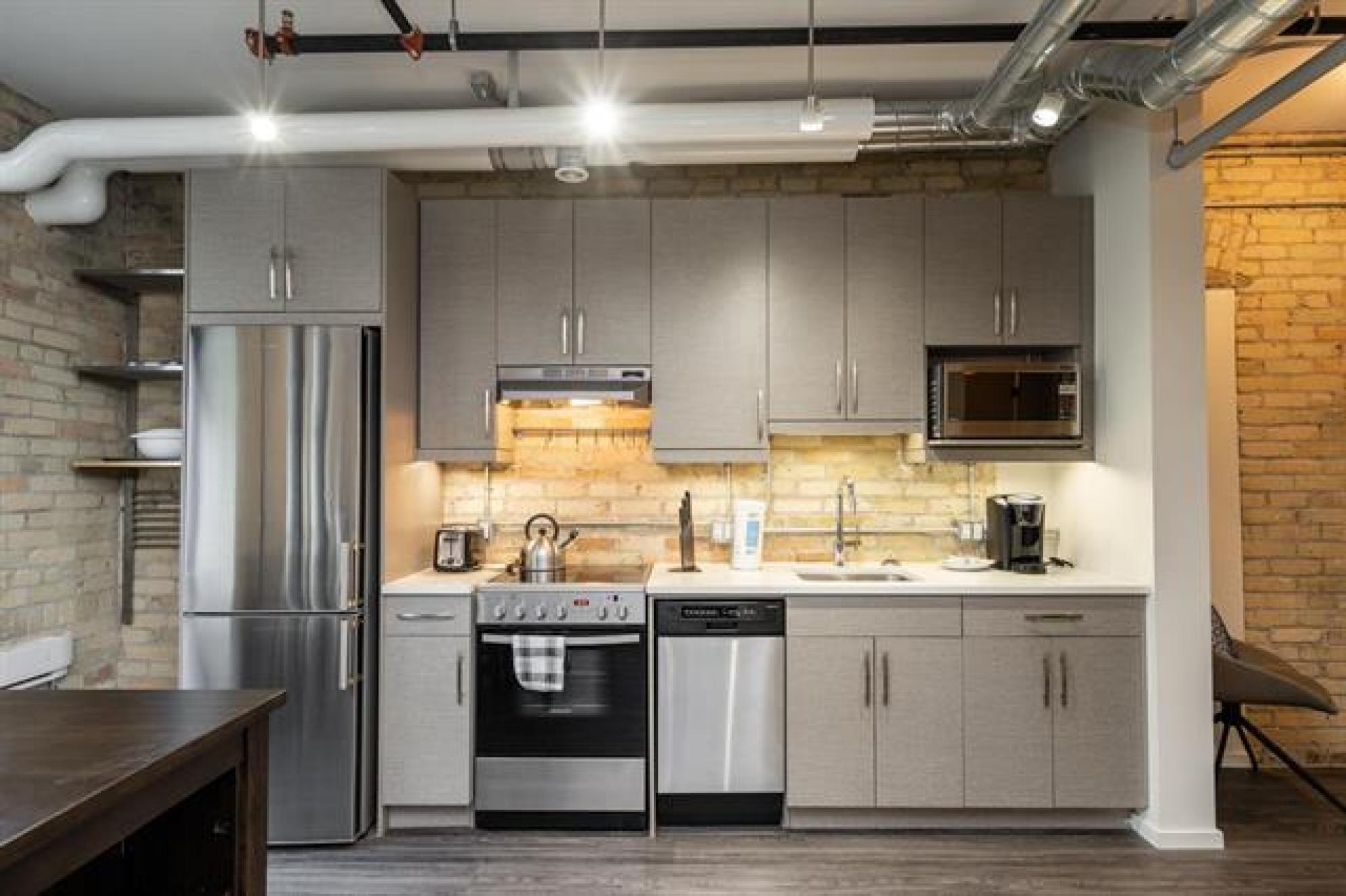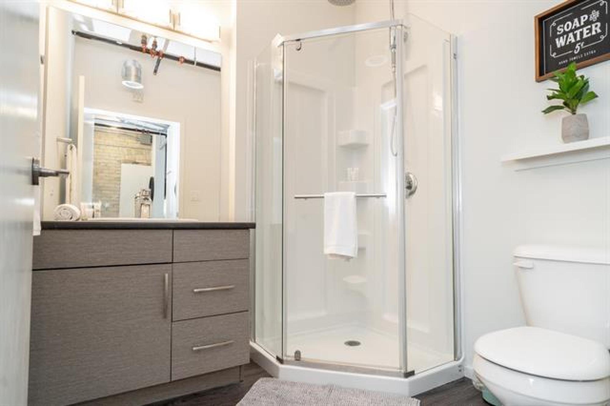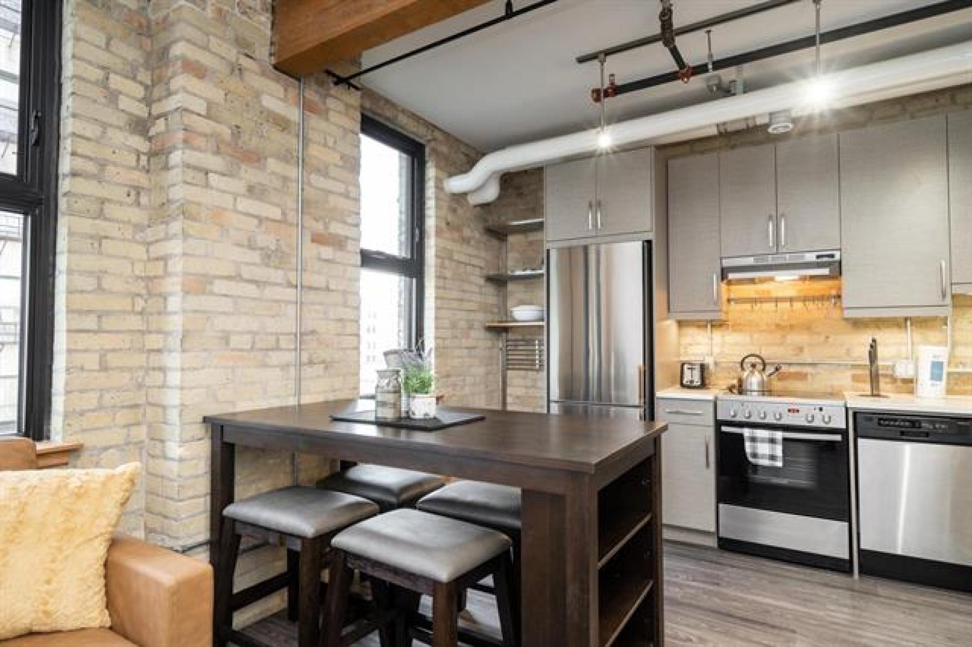 Impressive warehouse loft condo filled with style and history, situated in the East exchange district near waterfront drive. Conveniently located and surrounded by modern amenities, this quiet top floor unit features southwest exposure allowing an abundance of natural light, which enhances the old world charm of exposed beams and brick. Couple this with all of the modern finishes throughout and you have a unit that shines from top to bottom. The amenities of this building are exceptional... elevator service, handicap access, roof top patio, storage locker, common room and gym. Don't miss out on this excellent opportunity!