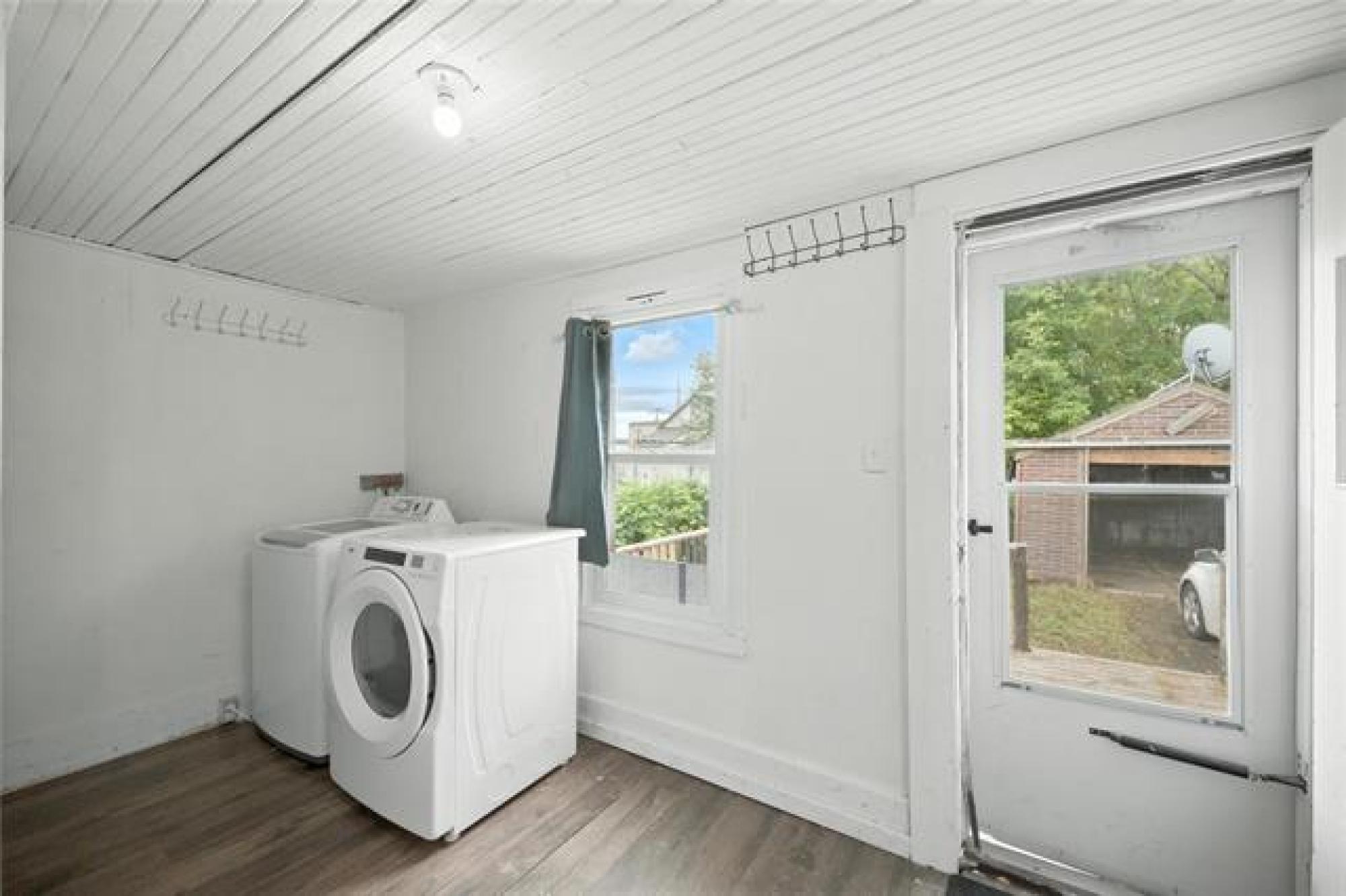 Calling all investors or first time home owners! Great opportunity to own this affordable home! This 856 SqFt, one and a half story house features, 2 bedrooms, 1.5 bathrooms and a large upstairs hobby room. Walk in to the front porch/sunroom that leads you into your long living room area. Large kitchen with loads of cabinet space. The house has a partial basement housing all your mechanical and enough room for storage. Main floor has vinyl flooring with 2 bedrooms on the main floor, full 4 piece bathroom, half bathroom and laundry room in the back. The outside has a older garage and decent sized yard. Book your showing today!