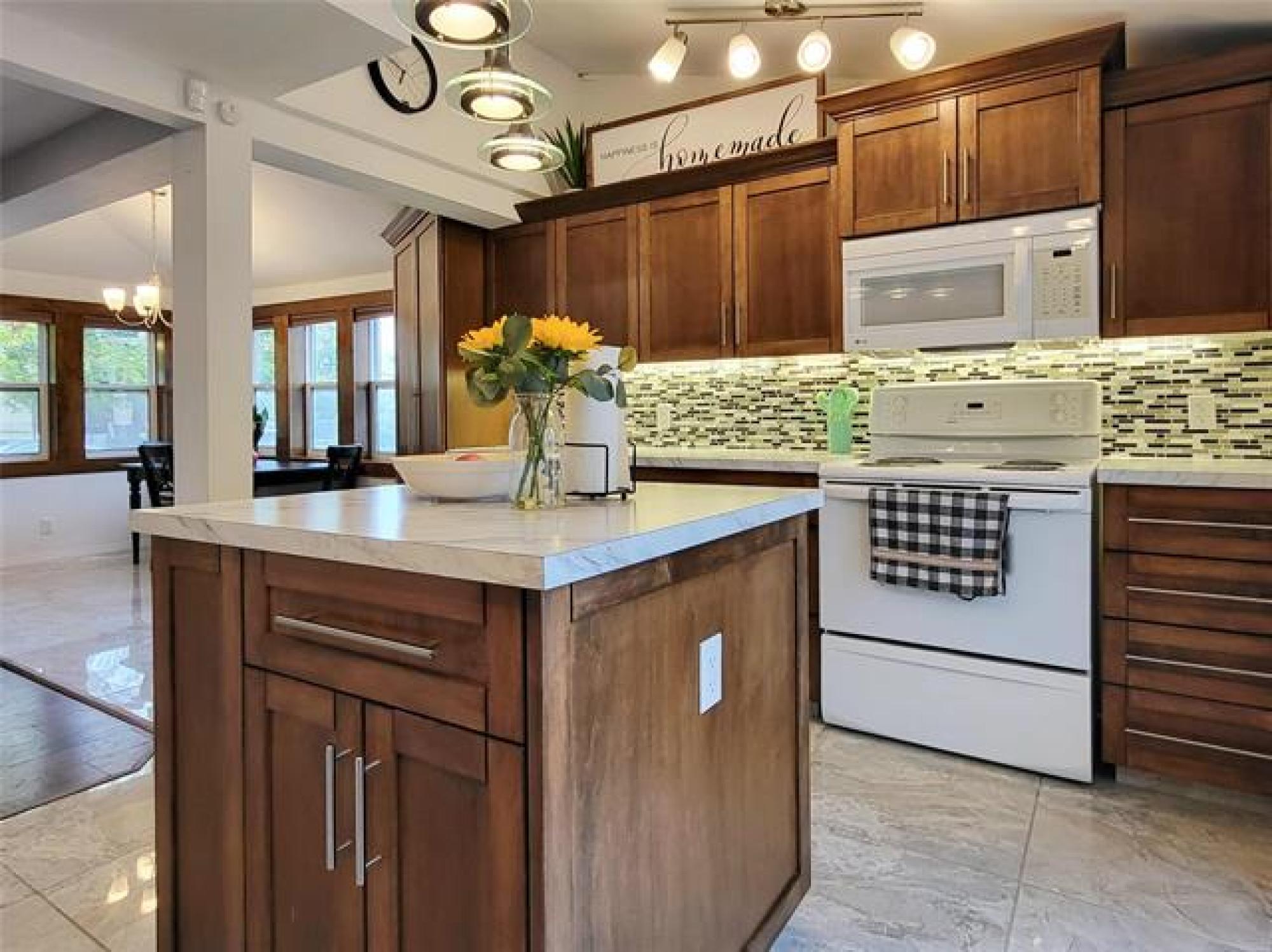 Just Listed, with offers anytime! GORGEOUS Living in the Heart of Selkirk! You WILL be WOWED! This Stunning Home filled with Charm feels like new! Open-style living, dining and DREAM kitchen; vaulted ceilings, wood grain laminate floors, maple kitchen cabinets, garden door to deck, kitchen island and tile backsplash! The bright dining area flows into the super comfy living room. The Beautiful 4-piece bathroom has it all; soaker tub, vanity, tile surround, & stacking washer & dryer. A nice sized Bedroom completes the main floor. Upstairs, enjoy your quiet retreat in the spacious primary loft-style bedroom w/built in closet/storage space. Home Features: High efficient Furnace, HRV, central air, 100 AMP electrical service to the house, newer plumbing, windows, doors/trim, crawlspace spray foam insulated. Enjoy the fully fenced massive private backyard with mature trees, big deck, fire pit and shed. BONUS: 24' x 20' Garage/Workshop: insulated, heated and wall A/C with 240 AMP plugs. Flexible possession available.