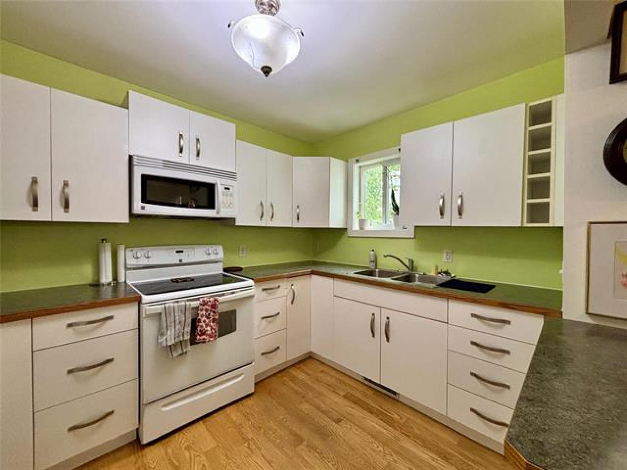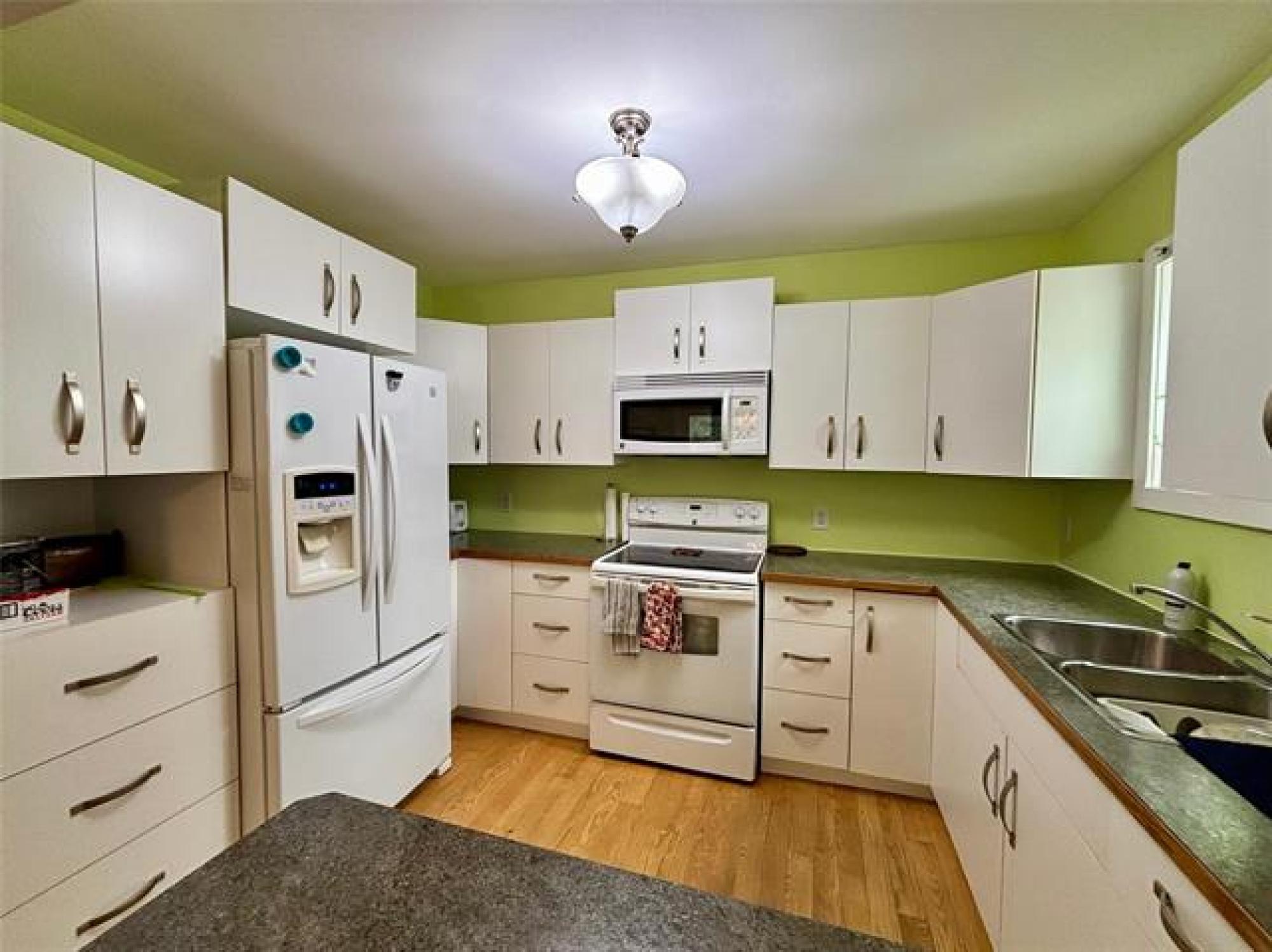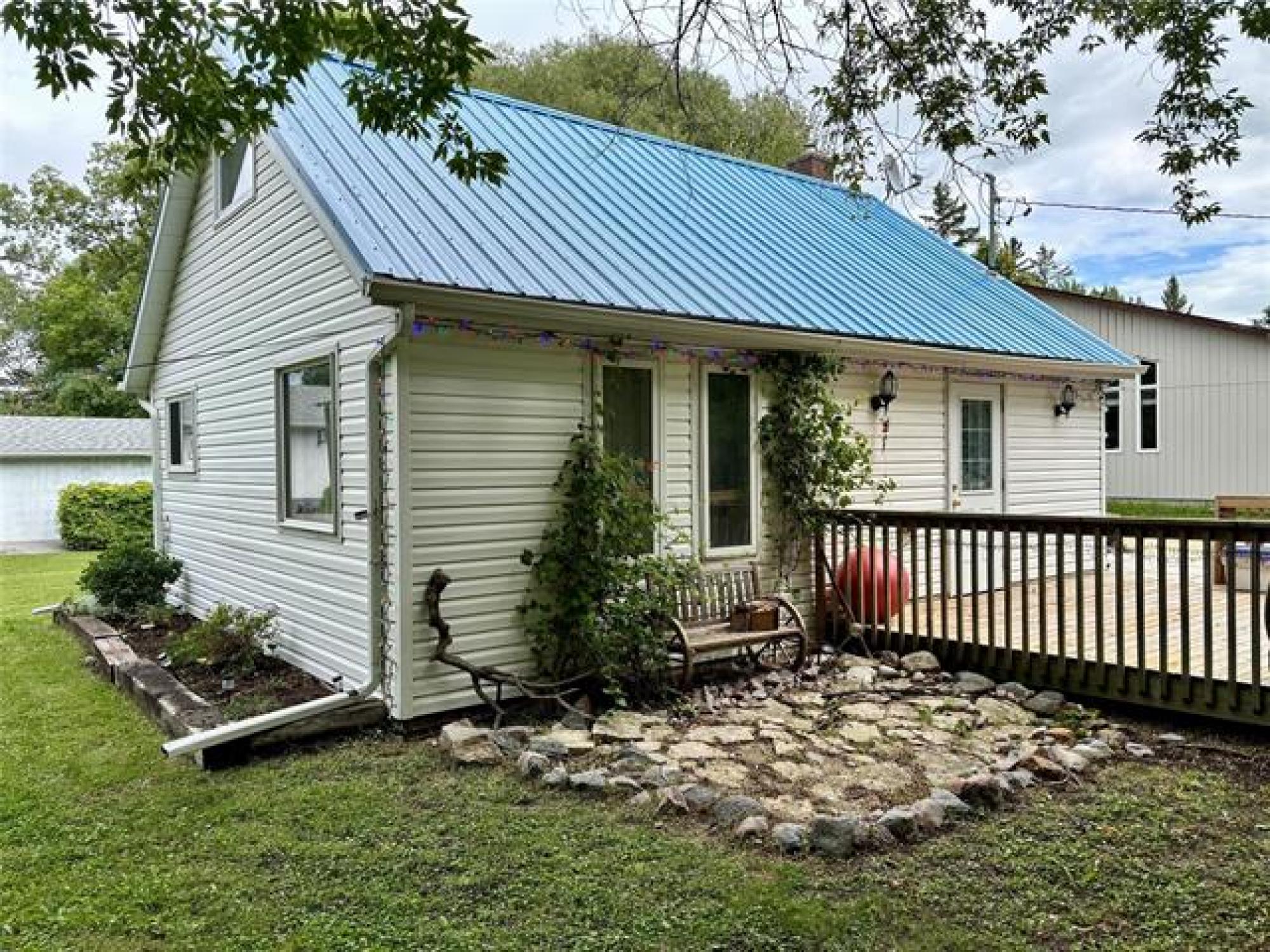 Beautifully cared for and remodeled 1½-storey home on a large 96.6 ft corner lot. Offering 882 sqft of living space, this straight and solid 2-bedroom, 1.5-bathroom home blends character with modern updates. Features include original hardwood floors, lots of kitchen cupboard space, newer lighting fixtures, a beautifully updated main floor bathroom with cork flooring, a generous mudroom, and good natural light throughout. The partial basement is clean, dry, and spray-foam insulated. Updates include a tin roof (2023), recently updated high-efficiency furnace, and recently updated hot water tank. The home was remodeled approximately 15 years ago, providing peace of mind for future owners. New windows 15 years ago. The property showcases a beautiful yard with mature trees and sits close to all shopping and amenities in the quiet, welcoming community of Beausejour.