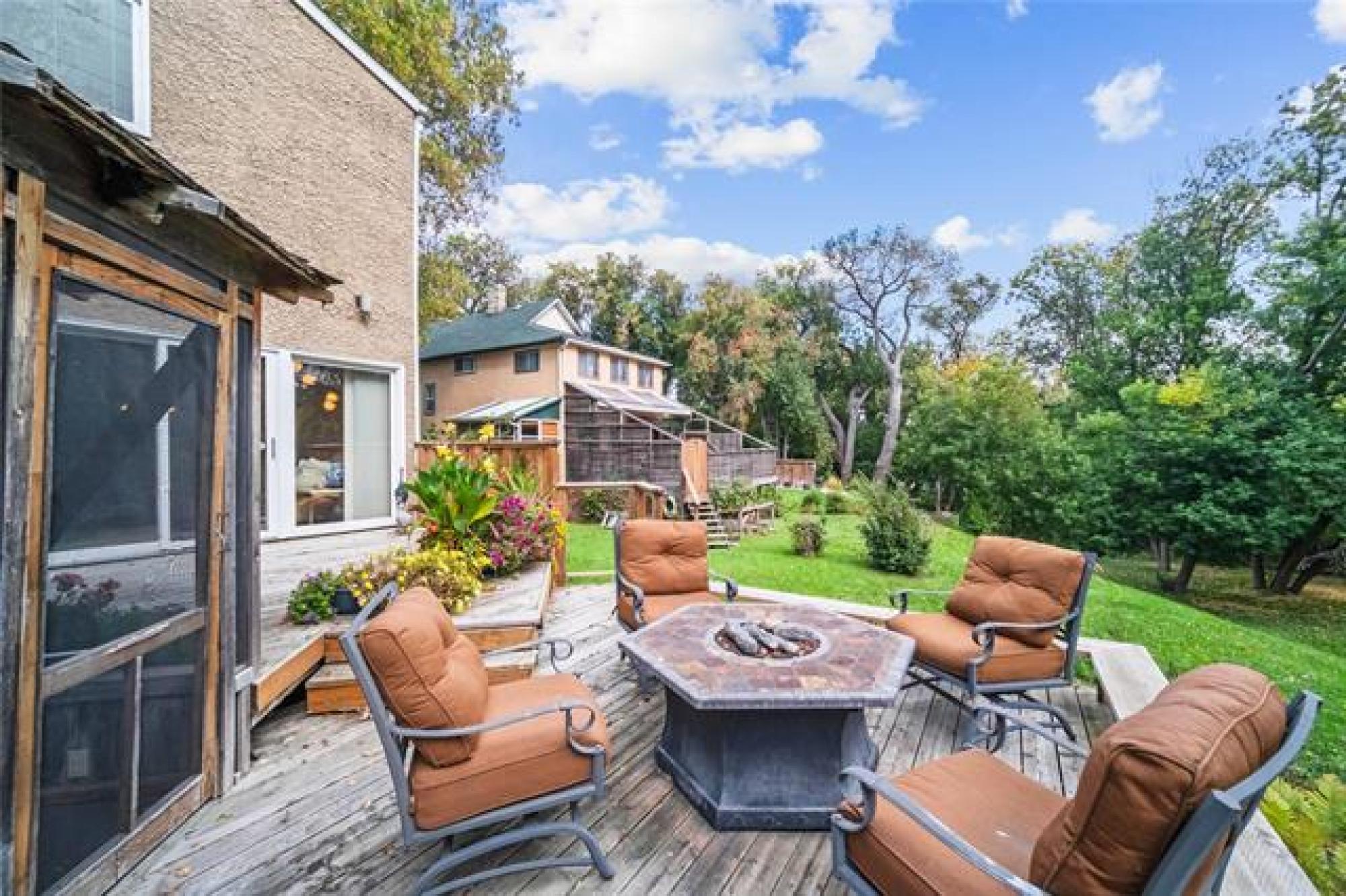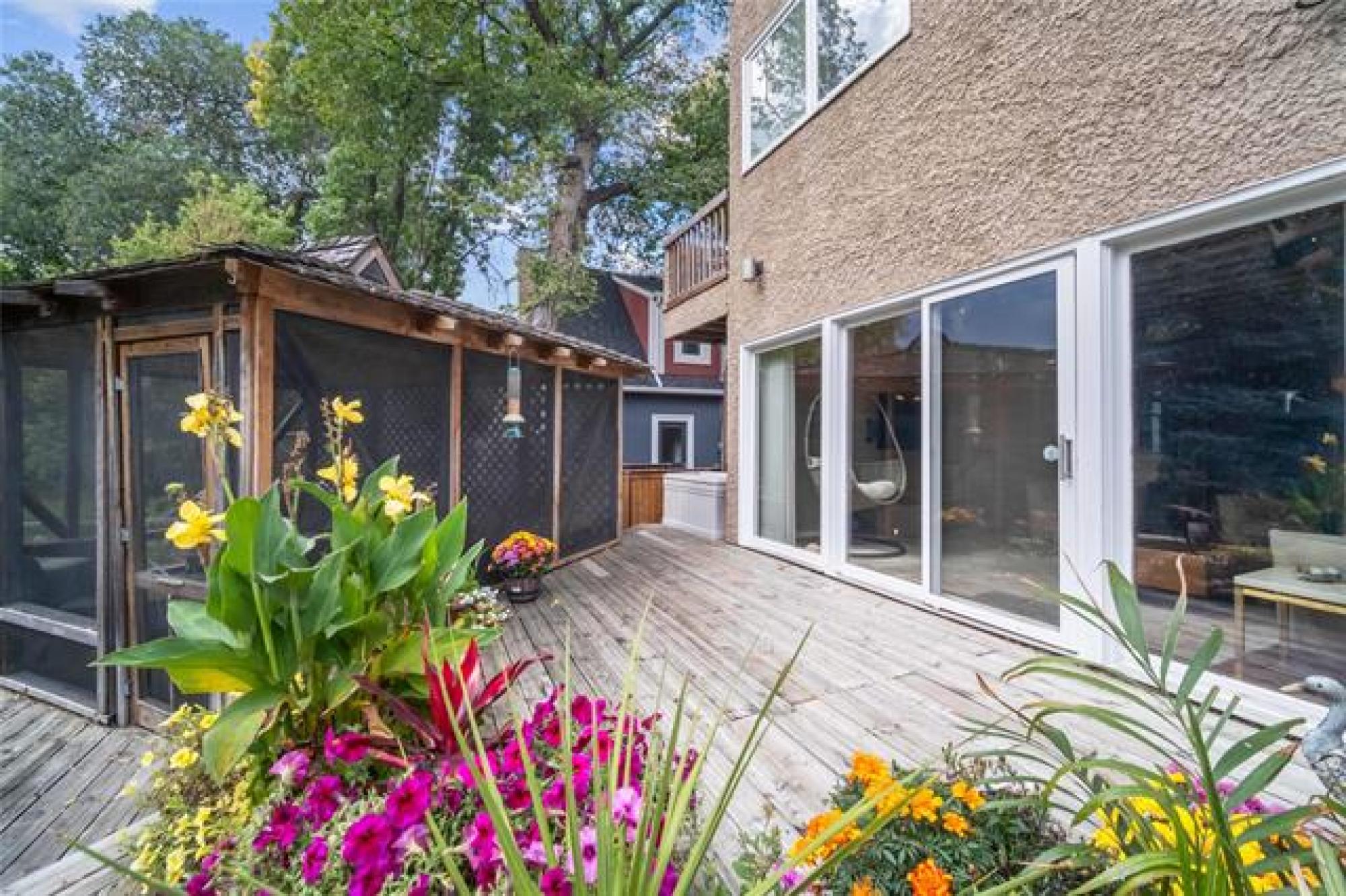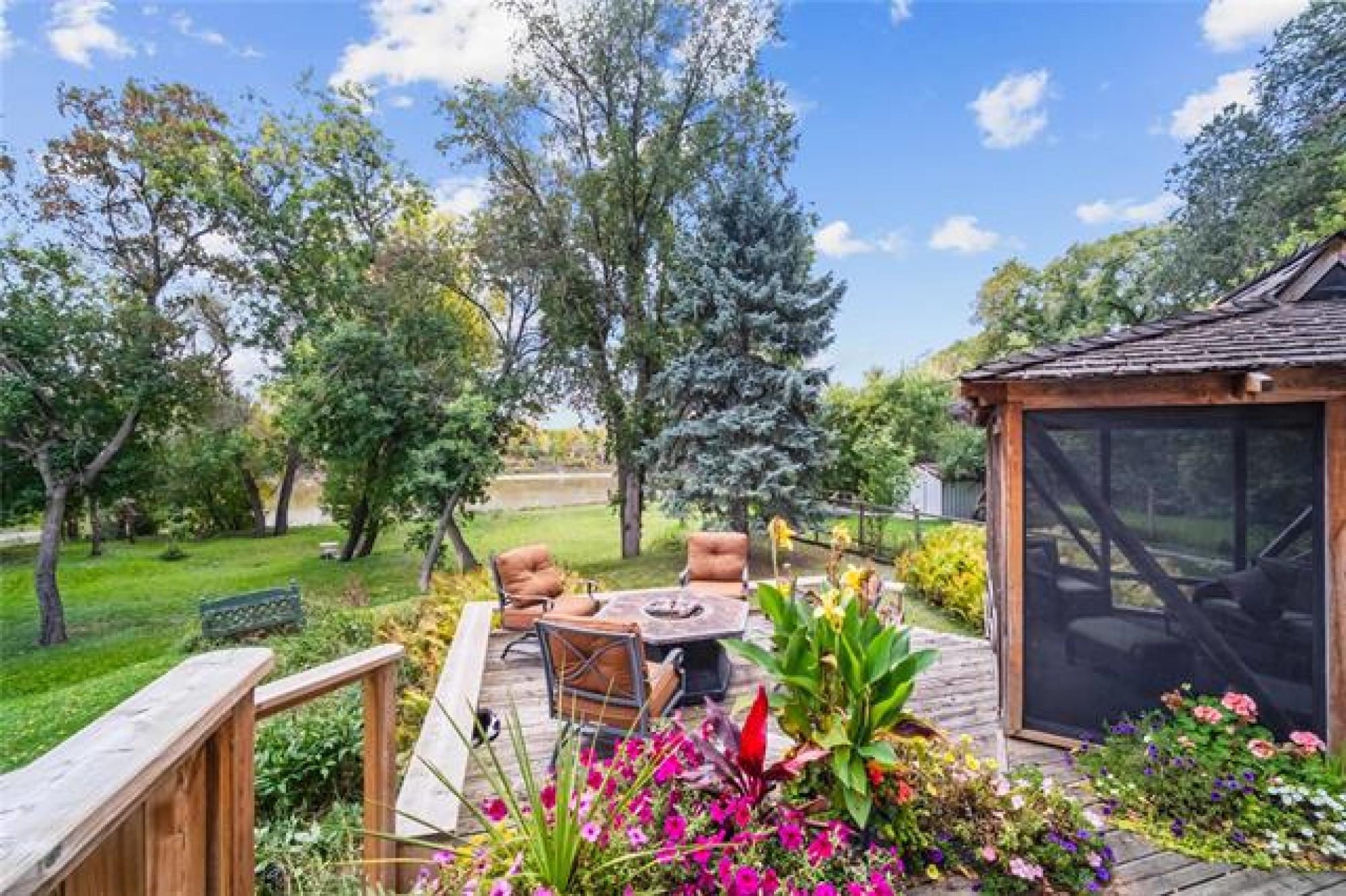 Offers as Received. Rarely available 1,950 sf 2-storey backing onto the Assiniboine river on quiet street in Wolseley. This architecturally designed home has a large front entrance with beautiful hardwood floors that extend throughout the man floor as well as a spiral staircase that goes up to the 2nd floor. The kitchen has TONS of white cabinetry with a large island that has granite countertops, stainless steel appliances, backsplash and pantry. The adjoining family room has expose joists with lots of room for furniture and HUGE windows overlooking the river. Upstairs there are 2 bedrooms +a loft with the primary bedroom having a large walk-in closet and roof top balcony. The loft space has tons of space for a home office/business with vaulted ceilings and big bright windows. Downstairs the basement has room for TONS of storage with laundry. The backyard is unbelievable and is surrounded by mature trees with a HUGE yard, 2-tier deck and beautiful screened in gazebo that is perfect for summer nights overlooking the river.