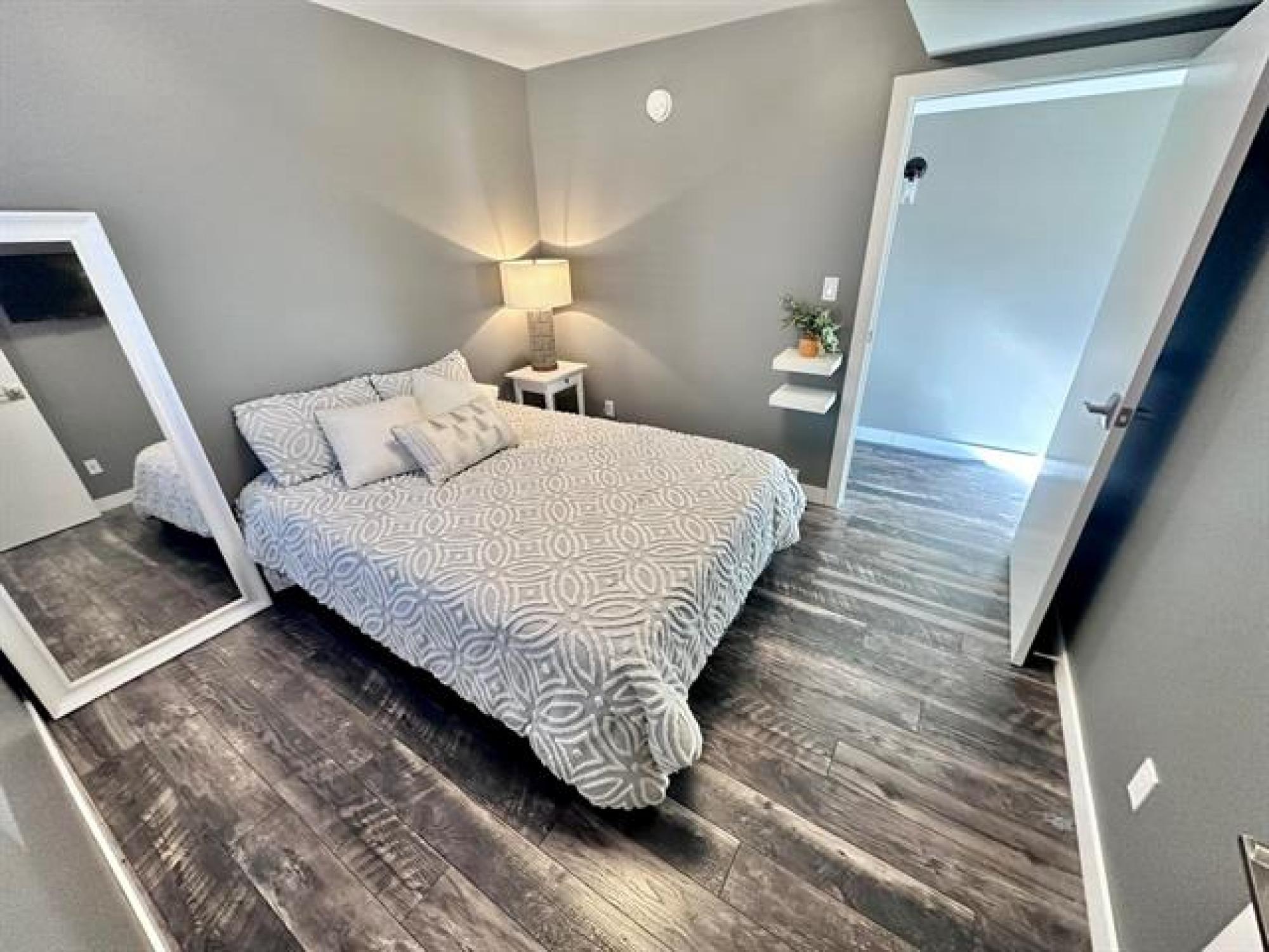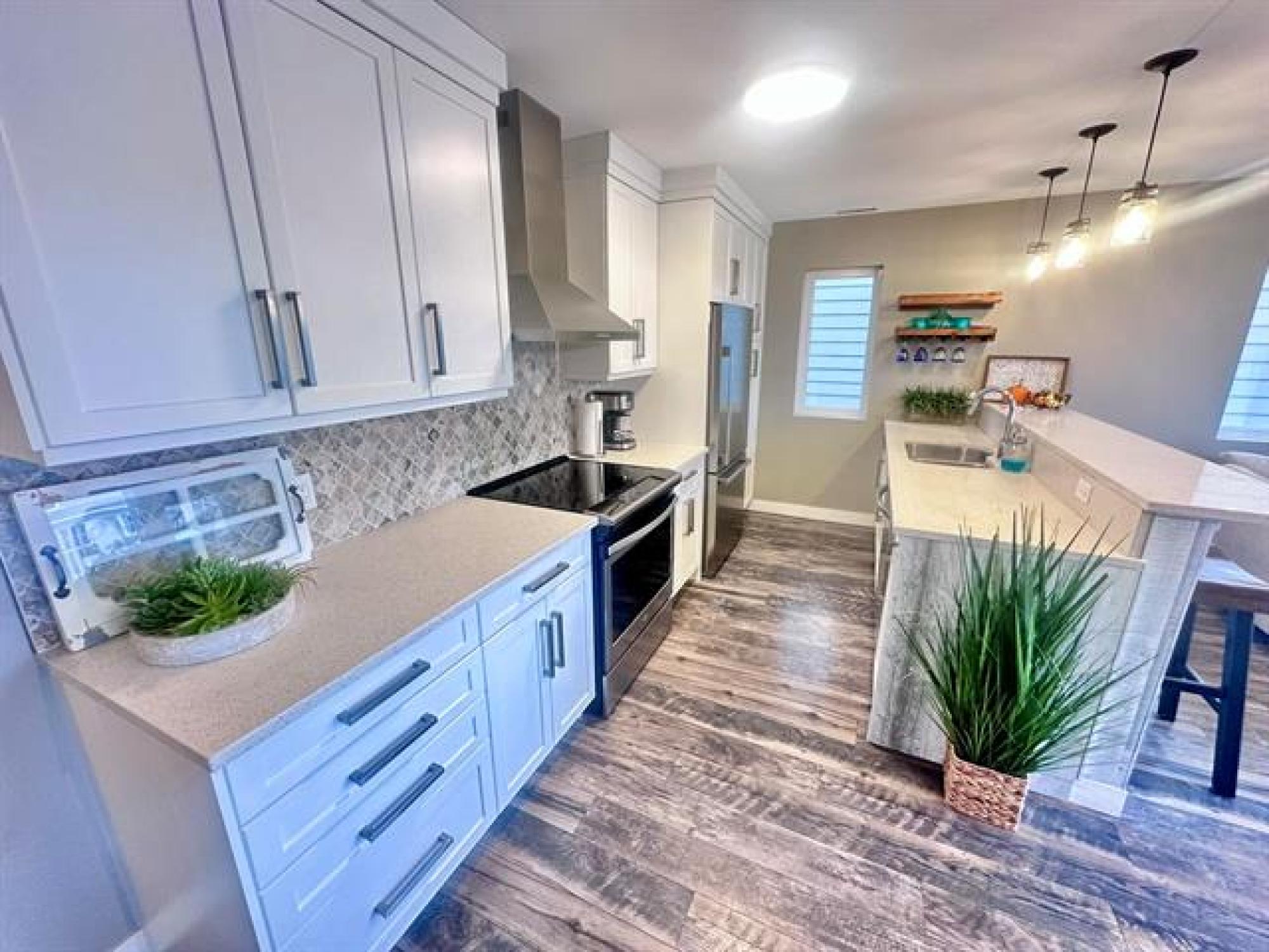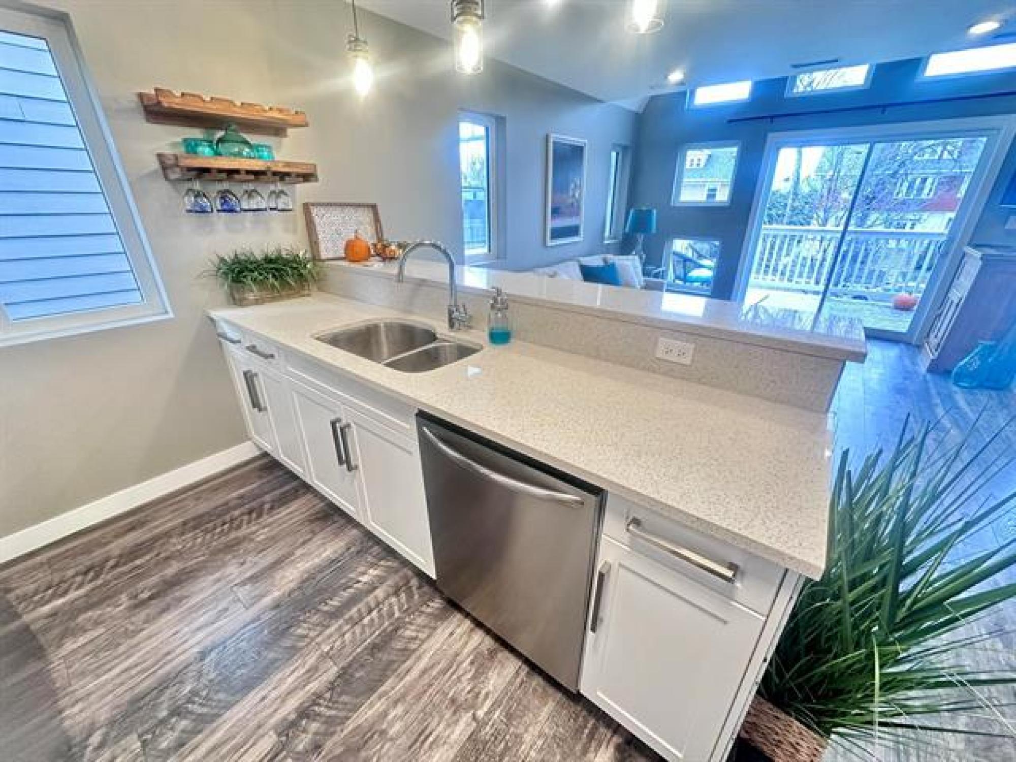 NEW REVISED PRICE for this fabulous remodeled & upgraded 2 story condo in the heart of Crescentwood! Built in 2014, the unit has been updated since 2019 with new kitchen, flooring, bathrooms with tile, and more! Open plan with big bright windows. Living room offers patio doors to private deck. Dining room opens to main floor allowing for expansion for those big dinners. Spectacular kitchen with quartz counter, white shaker cabinets, tile backsplash, chimney hood fan, stainless steel appliances and raised eating bar! Down the hall you find one bedroom w/walk-in closet and a bathroom including spectacular tile shower & main floor laundry. Second deck of garden door gives you southern sun exposure. Up the open staircase you find an open loft/den space (which could be closed for 3rd bedroom) and Primary bedroom with deep wall closet/additional storage, and a gorgeous ensuite with 2 sinks undermount in quartz & water closet. Attached insulated garage & parking behind.