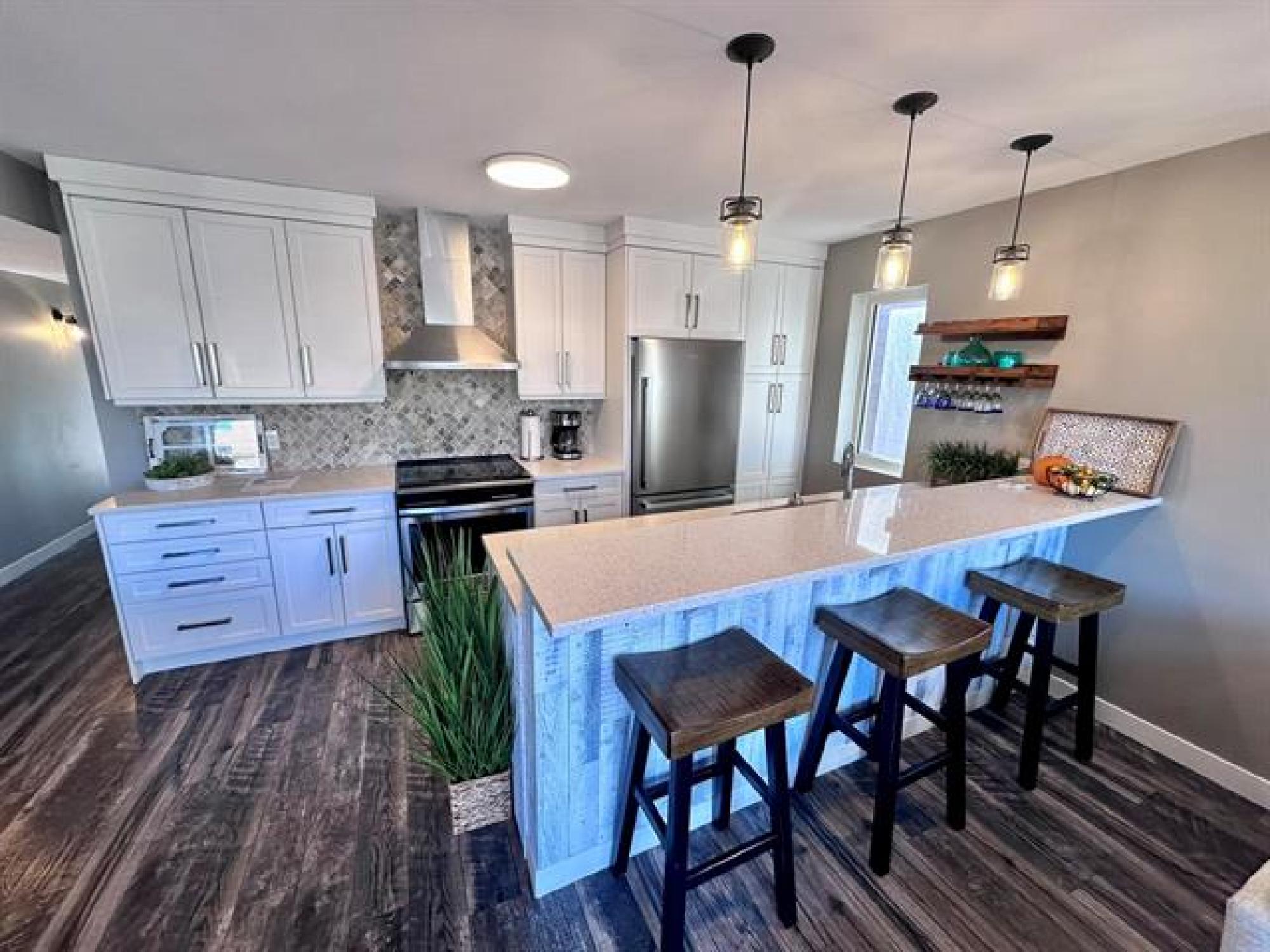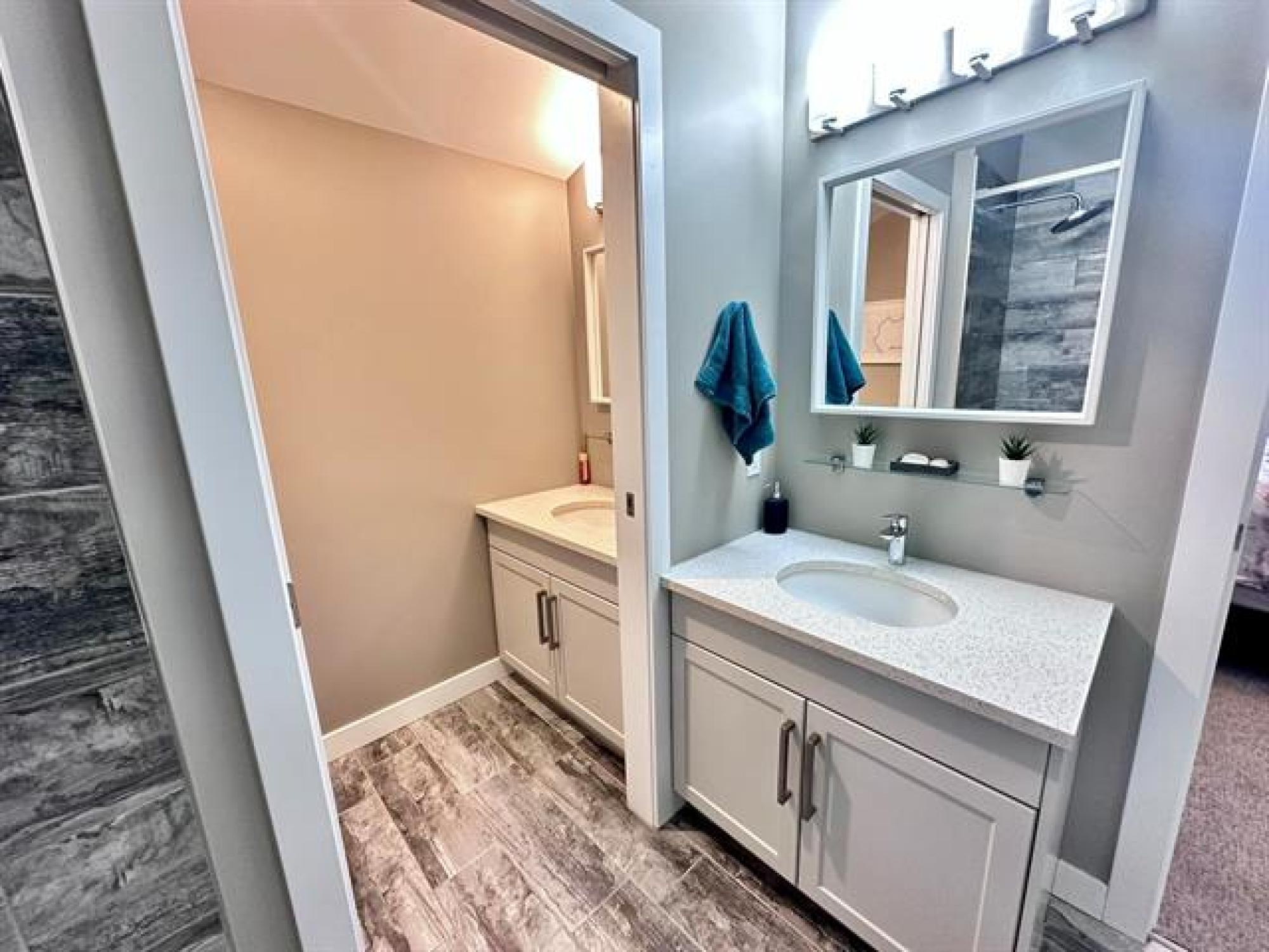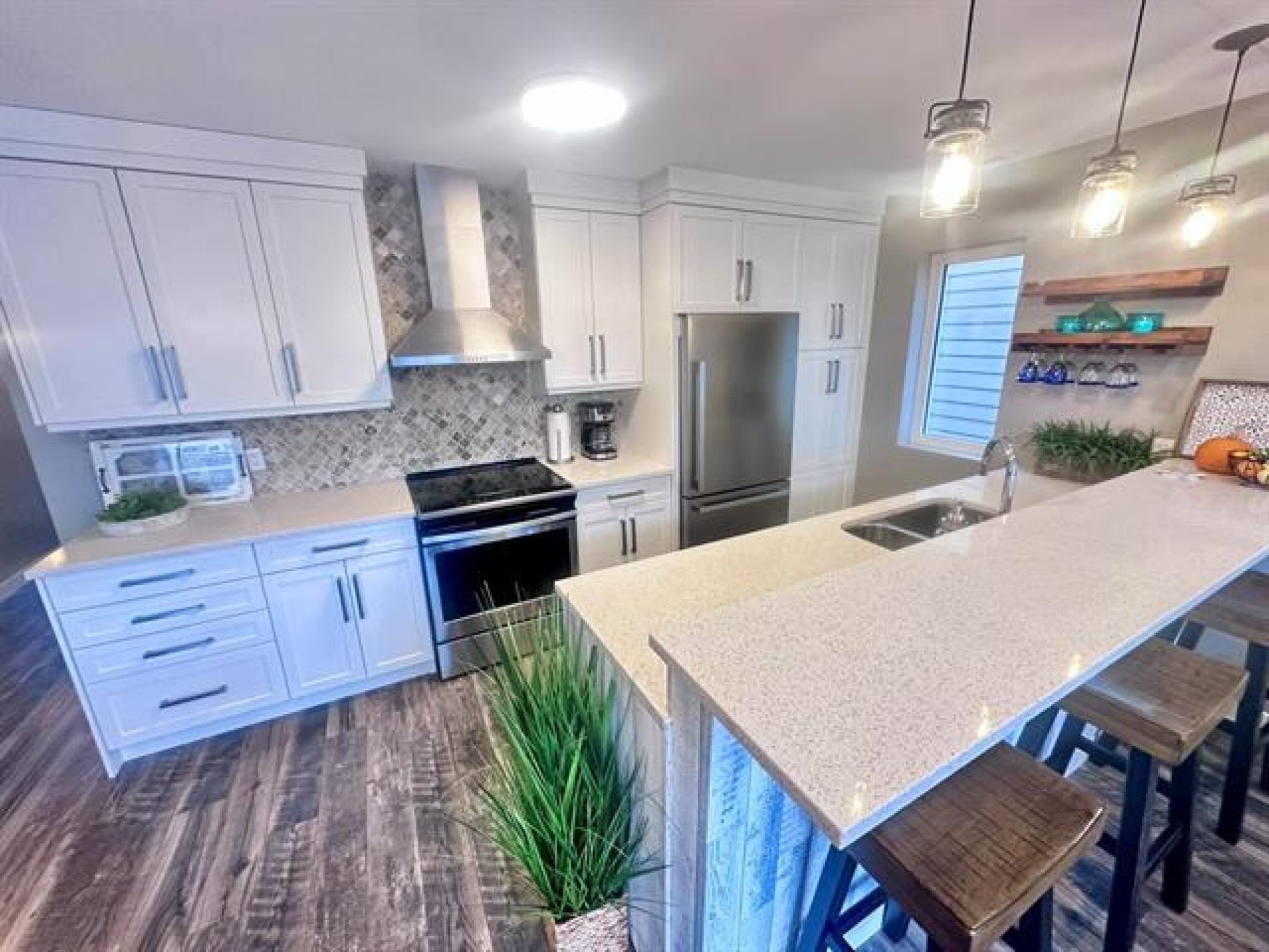 NEW REVISED PRICE for this fabulous remodeled & upgraded 2 story condo in the heart of Crescentwood! Built in 2014, the unit has been updated since 2019 with new kitchen, flooring, bathrooms with tile, and more! Open plan with big bright windows. Living room offers patio doors to private deck. Dining room opens to main floor allowing for expansion for those big dinners. Spectacular kitchen with quartz counter, white shaker cabinets, tile backsplash, chimney hood fan, stainless steel appliances and raised eating bar! Down the hall you find one bedroom w/walk-in closet and a bathroom including spectacular tile shower & main floor laundry. Second deck of garden door gives you southern sun exposure. Up the open staircase you find an open loft/den space (which could be closed for 3rd bedroom) and Primary bedroom with deep wall closet/additional storage, and a gorgeous ensuite with 2 sinks undermount in quartz & water closet. Attached insulated garage & parking behind.