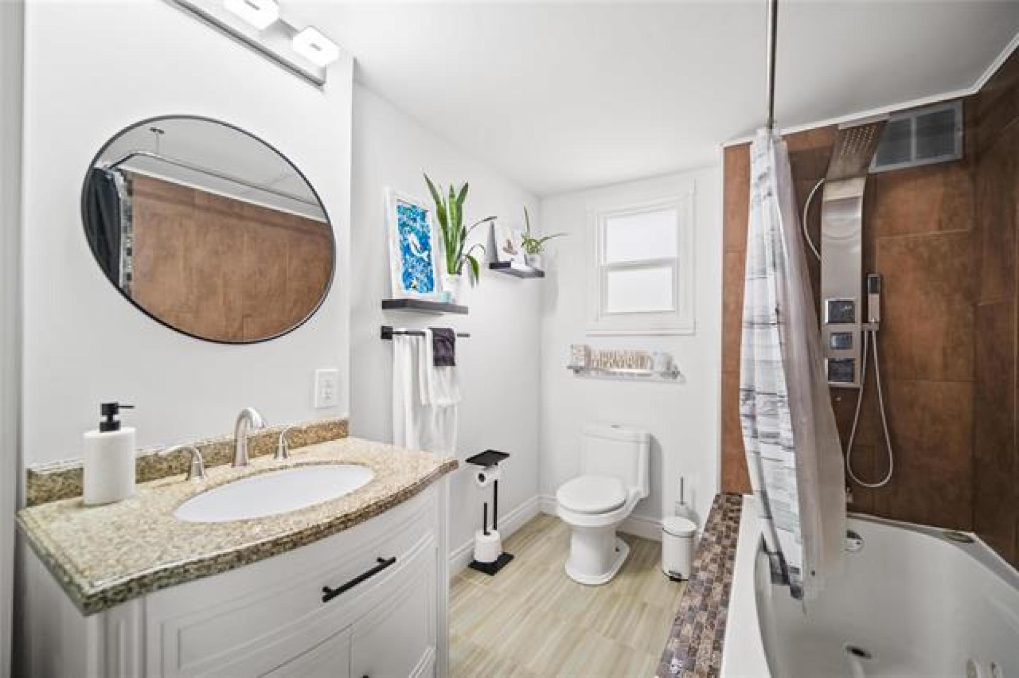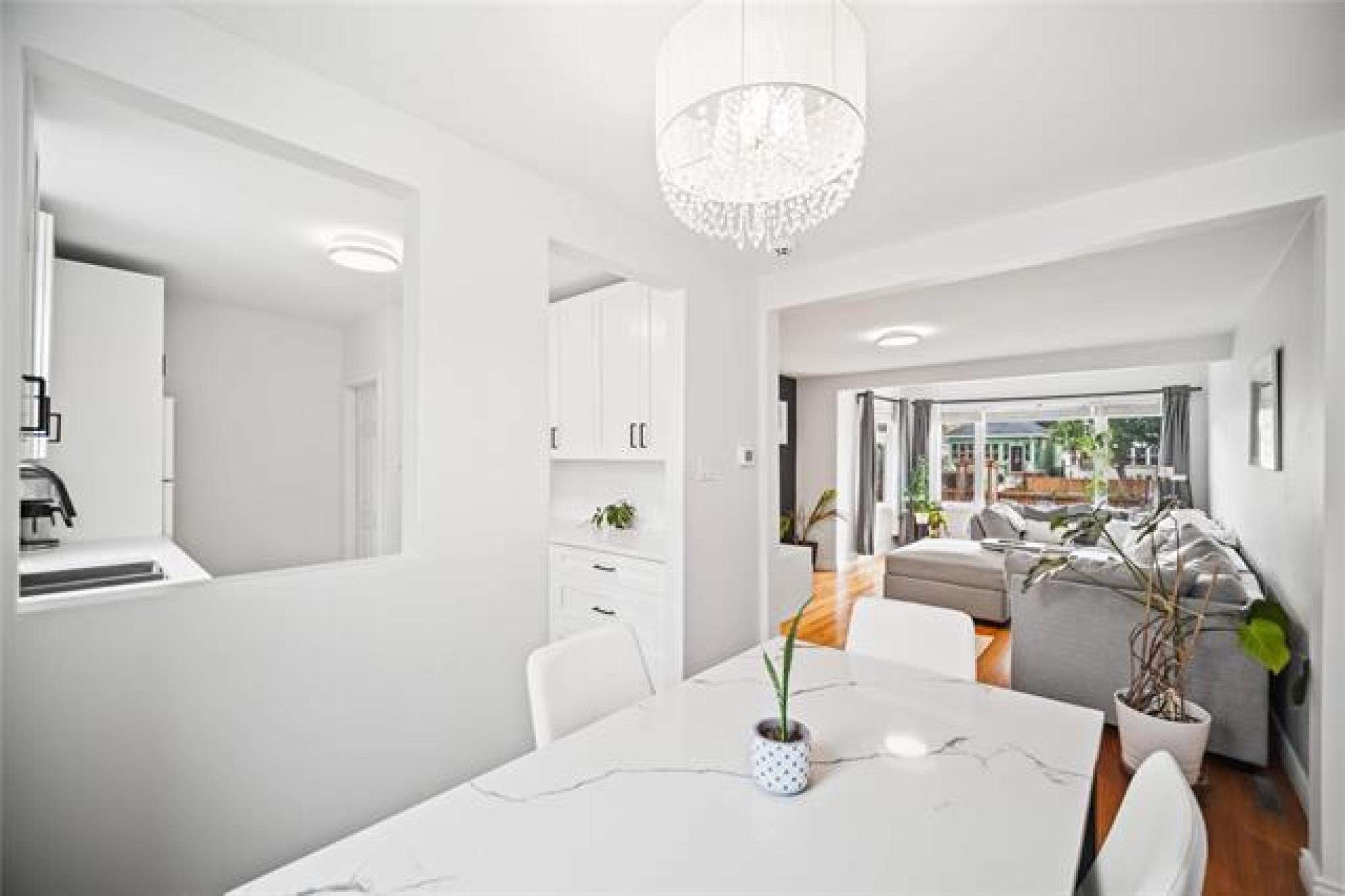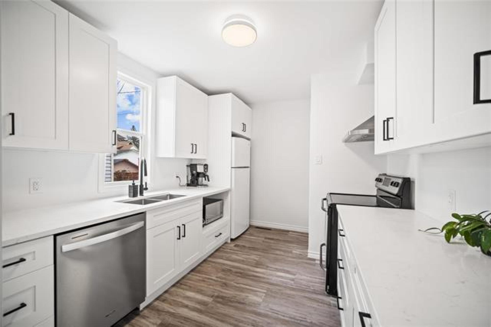 Offers Nov 10. Move-in ready and completely remodelled, this stunning 1015 sqft home has been immaculately cared for and thoughtfully updated throughout. Sunlight pours into every room, highlighting the gleaming hardwood floors and bright, open living spaces. The brand-new kitchen is a showstopper, featuring quartz countertops, modern cabinetry, and plenty of workspace for the home chef. Relax and unwind in the spa-inspired main bath complete with a luxurious jacuzzi tub — the perfect retreat after a long day. Step outside to the fully fenced yard with a spacious deck, ideal for entertaining or simply enjoying the outdoors. A true bonus is the oversized, shop-like garage that offers endless possibilities for storage, hobbies, or a workshop. With quality finishes, meticulous care, and stylish updates inside and out, this home is ready for you to move in and start enjoying from day one!