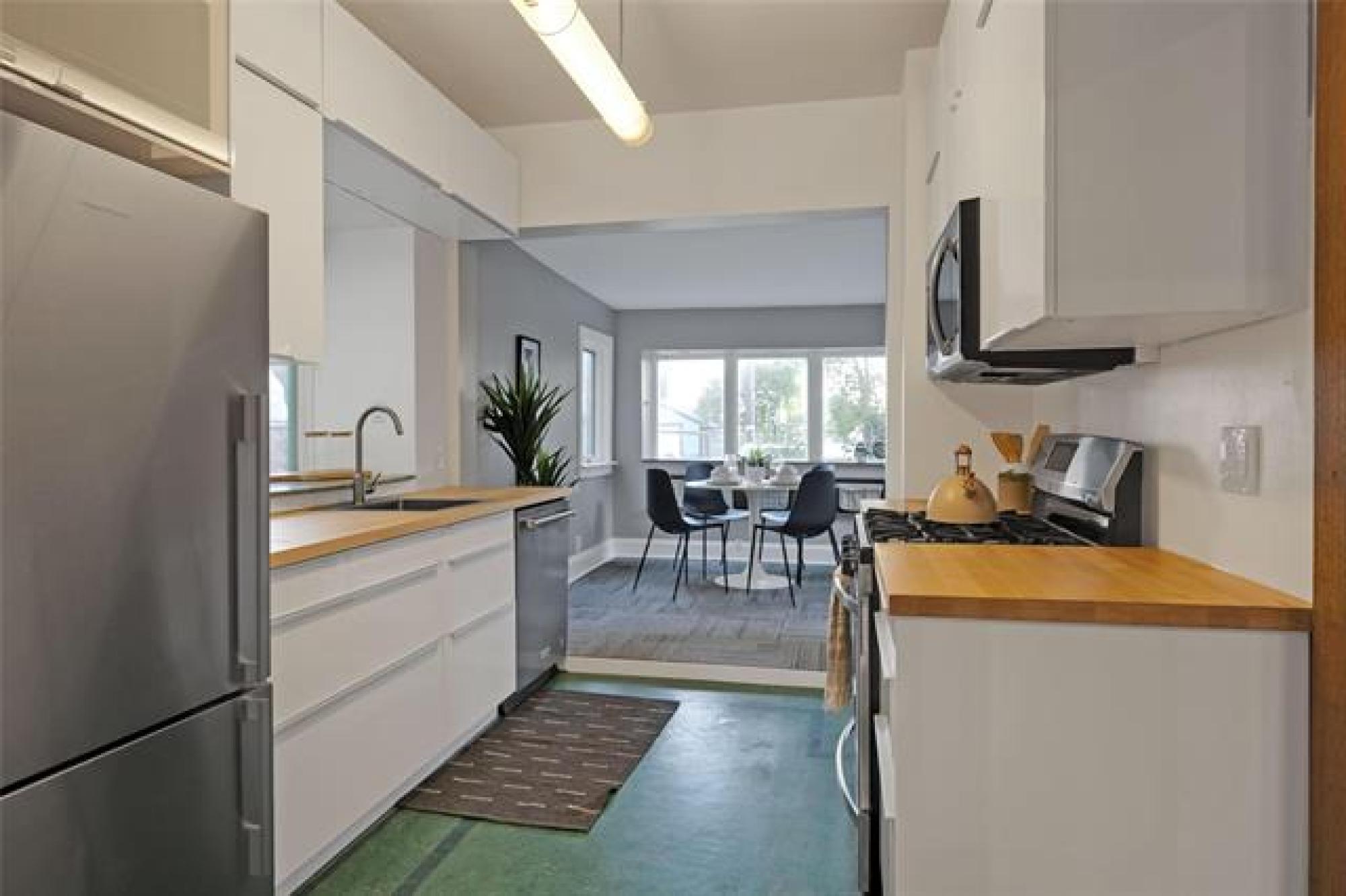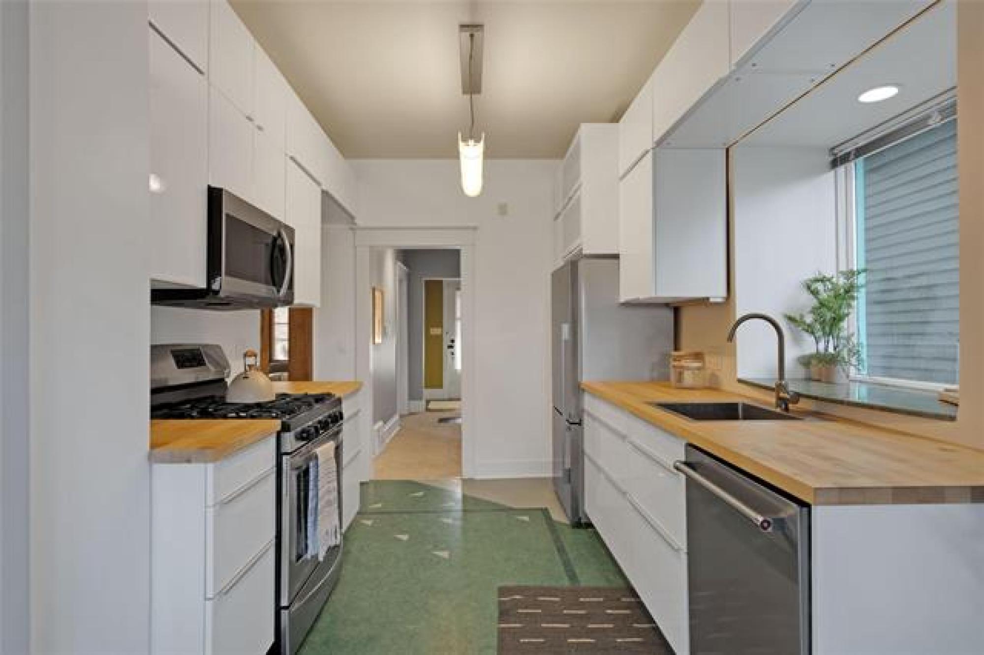 Offers as received. Step into the cozy porch of this Crescentwood gem and you instantly fall in love with this home! Porch was built in 2010 and features weather wall windows. The front entry offers a custom built front closet and opens up into an inviting living/dining room combo with original hardwood floors. The updated eat-in kitchen overlooks the landscaped backyard and features a Fisher Paykel fridge, brand new countertops and dishwasher (2025). Upstairs you will find an updated bathroom with a clawfoot tub/shower combo and 2 bedrooms. The huge primary bedroom could be easily converted back into 2 separate bedrooms if you desired. The backyard offers multiple decks, a patio and perennial gardens. Upgrades include: Exterior paint (2025), hi-efficiency furnace, hot water tank and A/C (2019), electrical (2016), windows (2014), porch and supporting foundation wall (2010). An ideal location with an easy stroll to groceries, coffee spots and dining. A short walk to schools, community centers and transit. Easy access to key routes for the work commute.