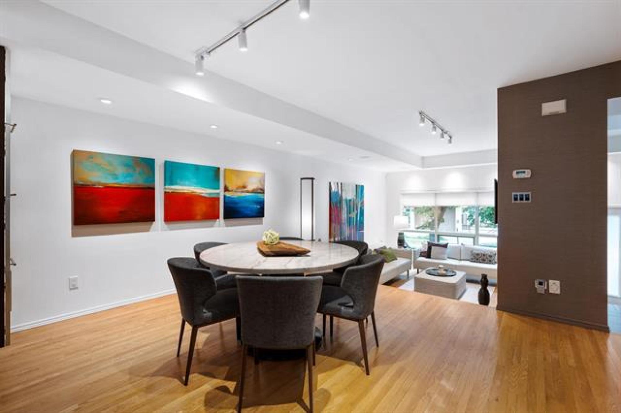 Wellington Crescent Condo nestled in Osborne Village most sought-after neighborhoods and experience the stylish lifestyle it offers. Best location to stroll around at the Forks for activities throughout the year, enjoy walking trails, fine dining, upscale local shopping & nightlife downtown. This Townhouse with its Luxury 1,950 sq. ft. of living space vaulted ceilings, refinished HWF, cozy gas fireplace, and surround sound system. Main floor entrance to your designer open concept sunken living room, cozy gas fireplace, dining area, a gourmet kitchen quartz counter, SS appliances, gas cooktop and pantry. Unwind and recharge in your enclosed 3-season sunroom, BBQ in the private outdoor balcony and enjoy a quiet morning coffee or evening spent watching the northern lights. Upstairs is a spacious guest bedroom, 3pc bath, a luxurious primary suite w/large walk-in closet, spa-inspired ensuite and natural rays by skylight. The finished lower level adds incredible flexibility for a rec room, office or 3rd bedroom. Private entrances front and through your double attached garage with an additional 2 outdoor spots. A great opportunity is waiting for you to move here. Pet friendly! Book your private showing!