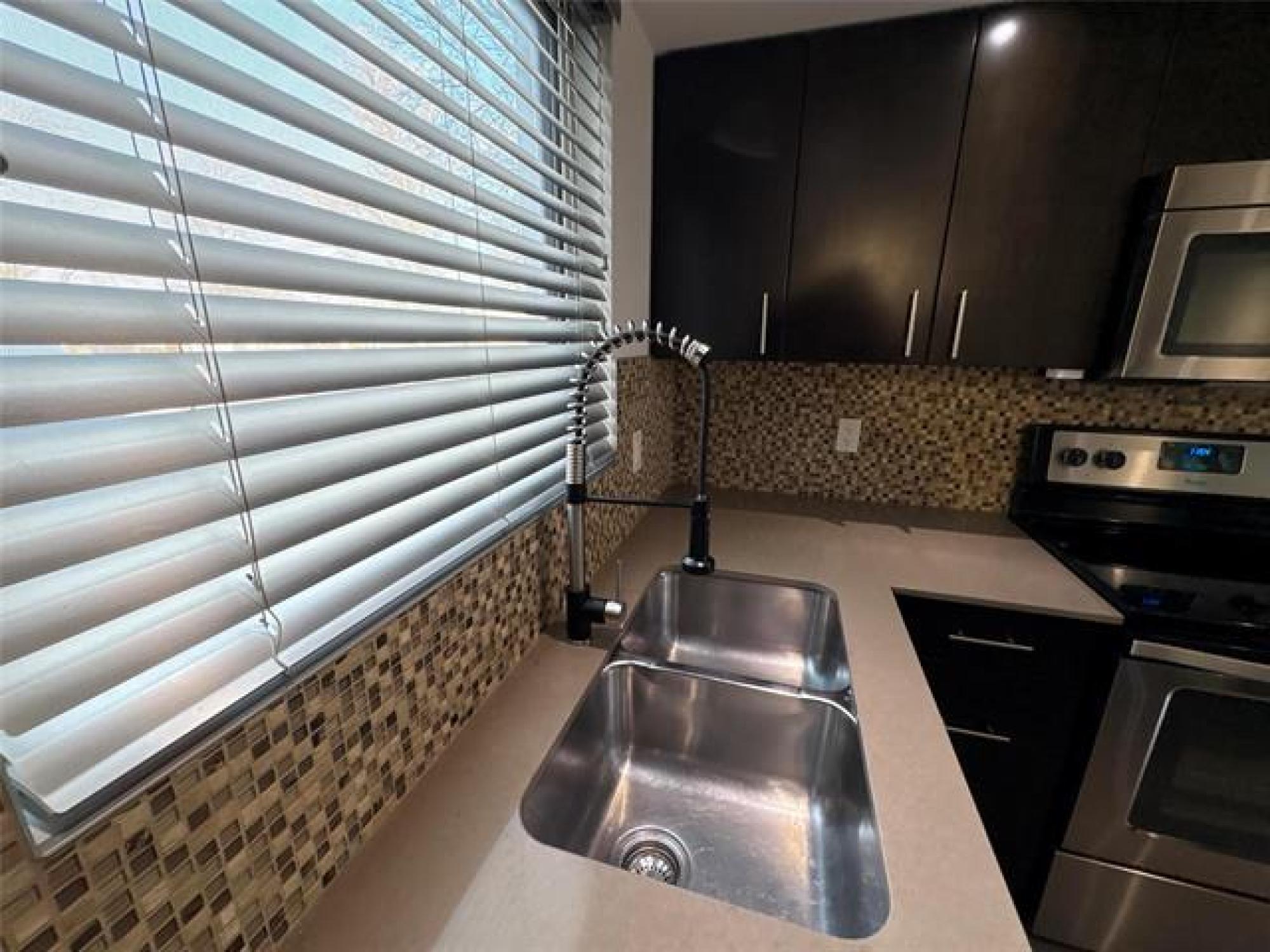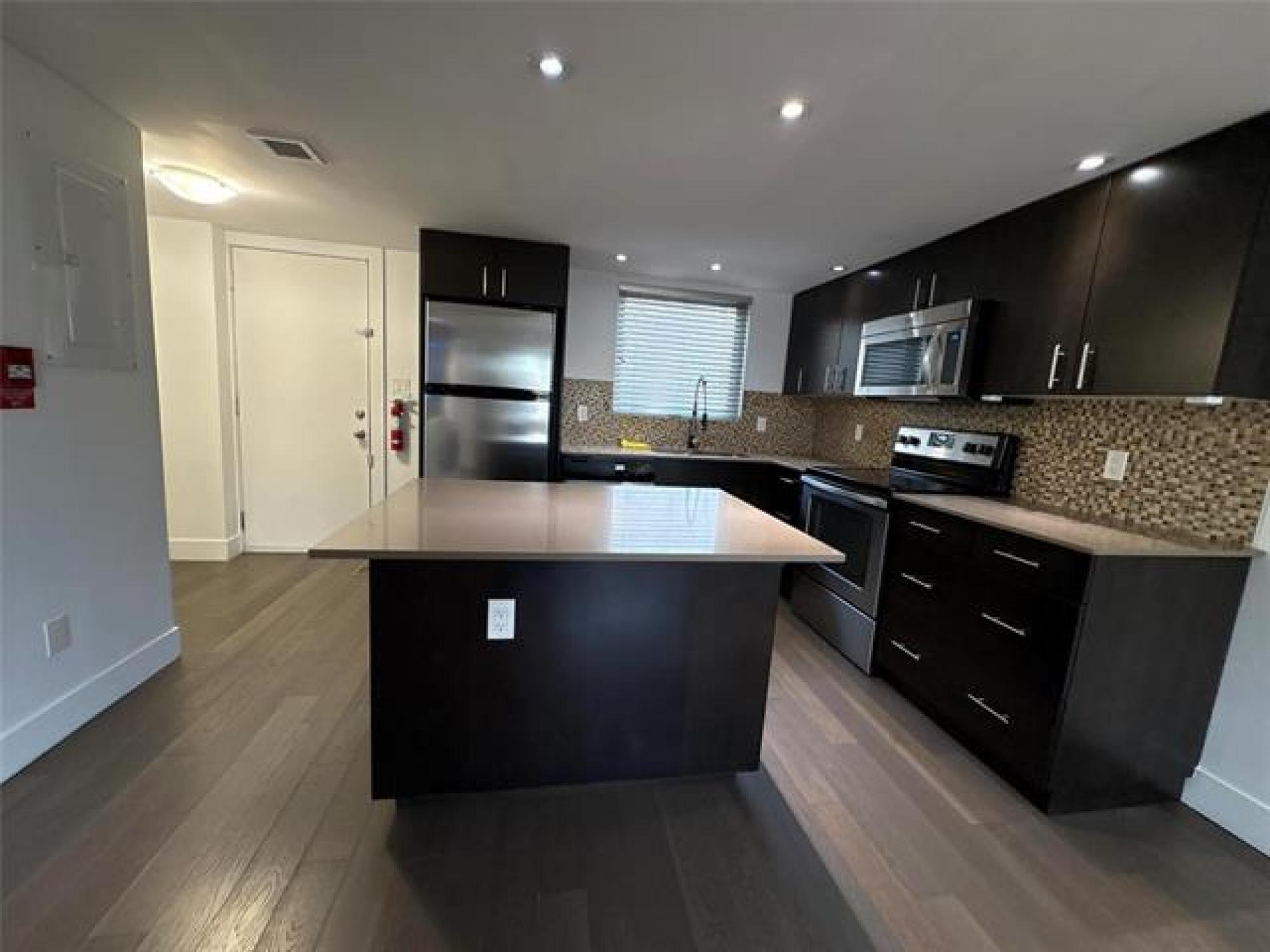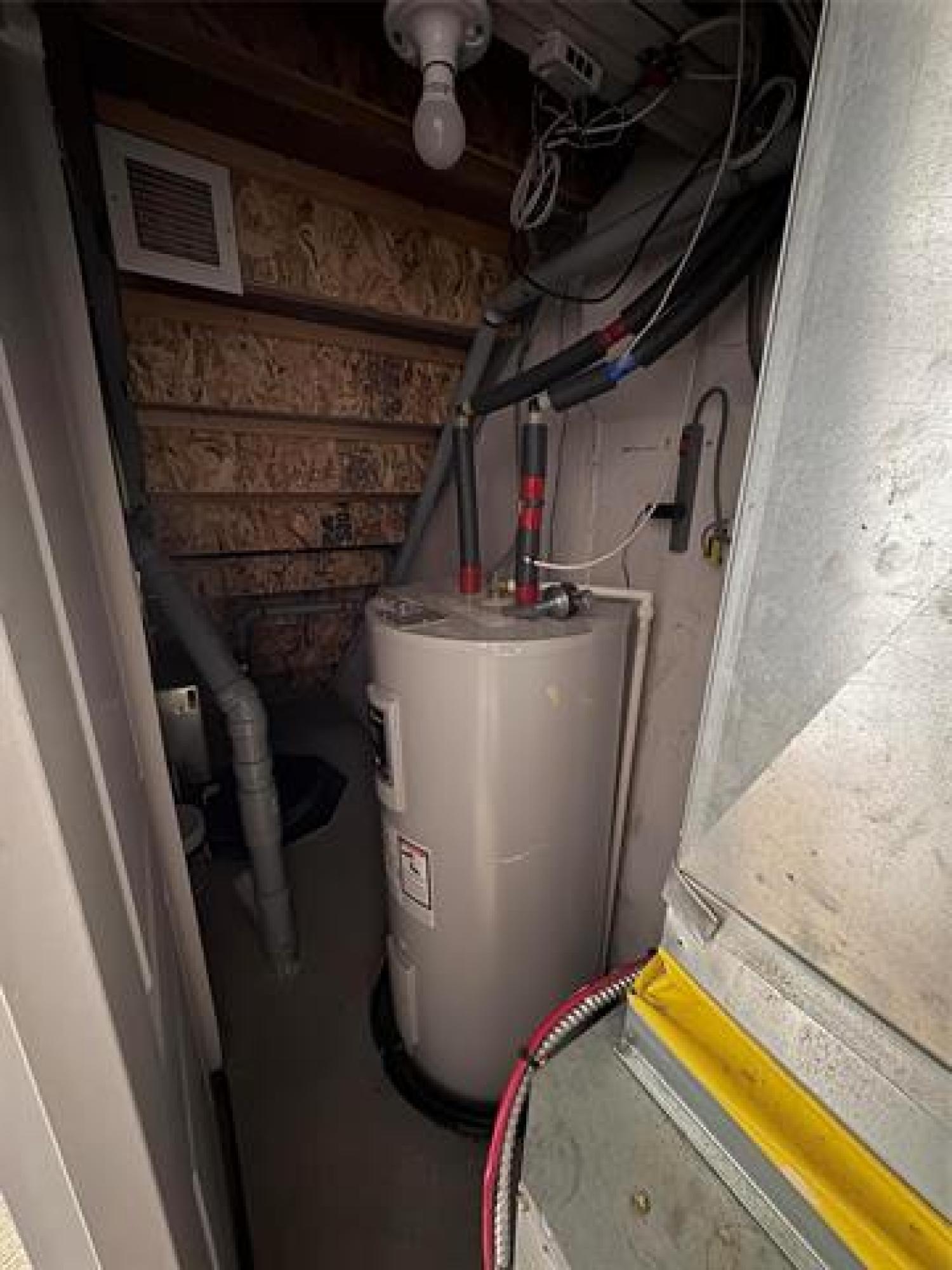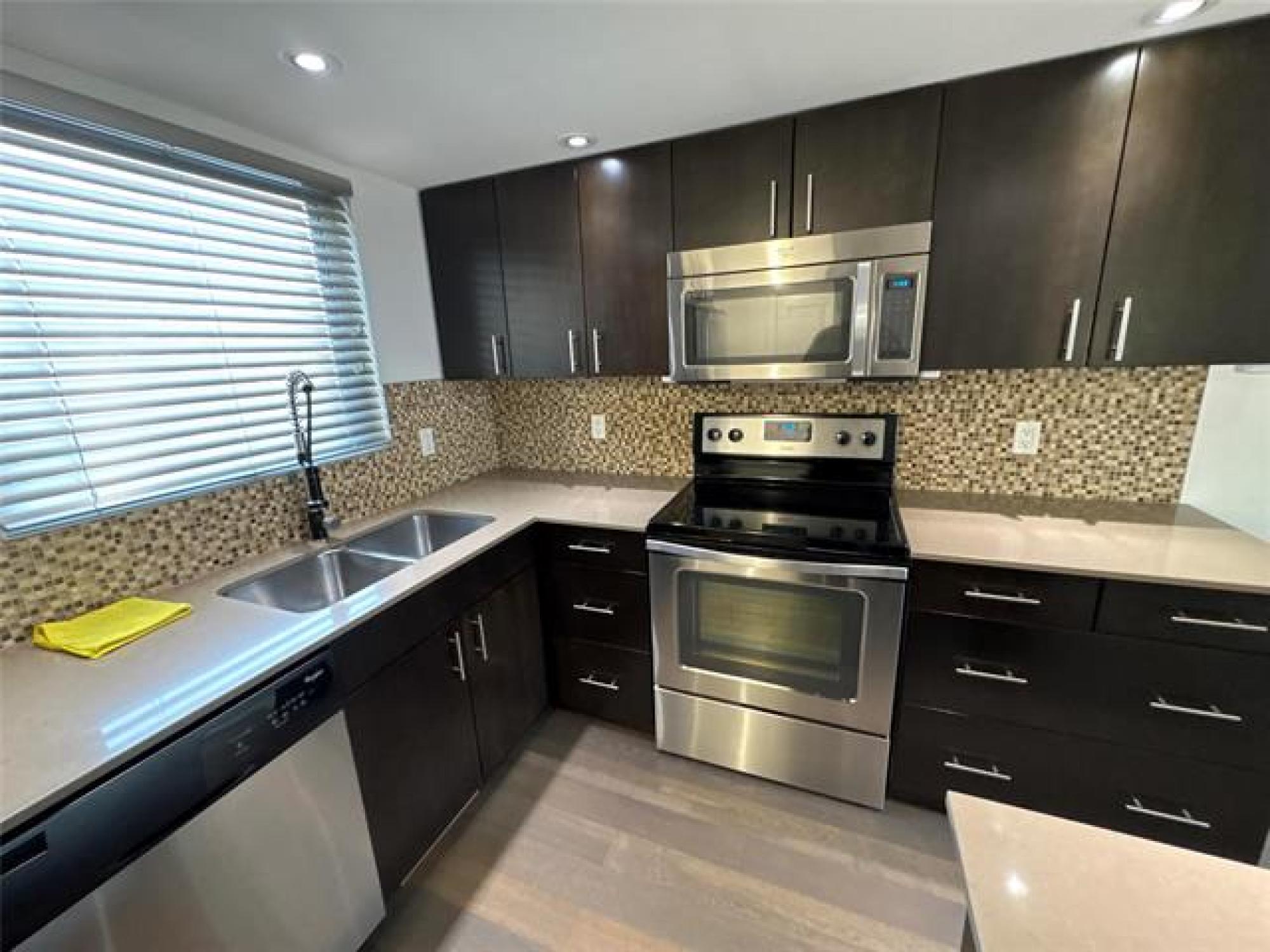 Showing starts now, offers as received. Bright, modern two bedroom, one and a half bathroom home with an open concept main floor and plenty of natural light. The living area features laminate flooring, an electric fireplace, pre wired rear speakers, 12 pot lights with dimmers for a warm, adjustable setting. The kitchen includes a large island, stylish backsplash, single partition sink with a modern tap, and matching stainless steel appliances. All countertops are quartz, with a wall backsplash in the lower level three piece washroom. Enjoy comfort with in suite laundry. Very efficient geothermal heating and cooling, electric hot water tank, triple pane windows, and a central fire alarm system. Front and back door guards add extra peace of mind. All windows have aluminum blinds. The main bathroom offers an updated rain showerhead. A deck with glass and aluminum railing and special vinyl flooring overlooks the fenced yard. There is also an outdoor shed for extra storage. Extra wide parking stall is in front of the unit. Close to transit, Youngs Supermarket, Sisler High School, Lord Nelson School, and shopping. Ideal for first time buyers or downsizing. Book your viewing today for this move in ready home
