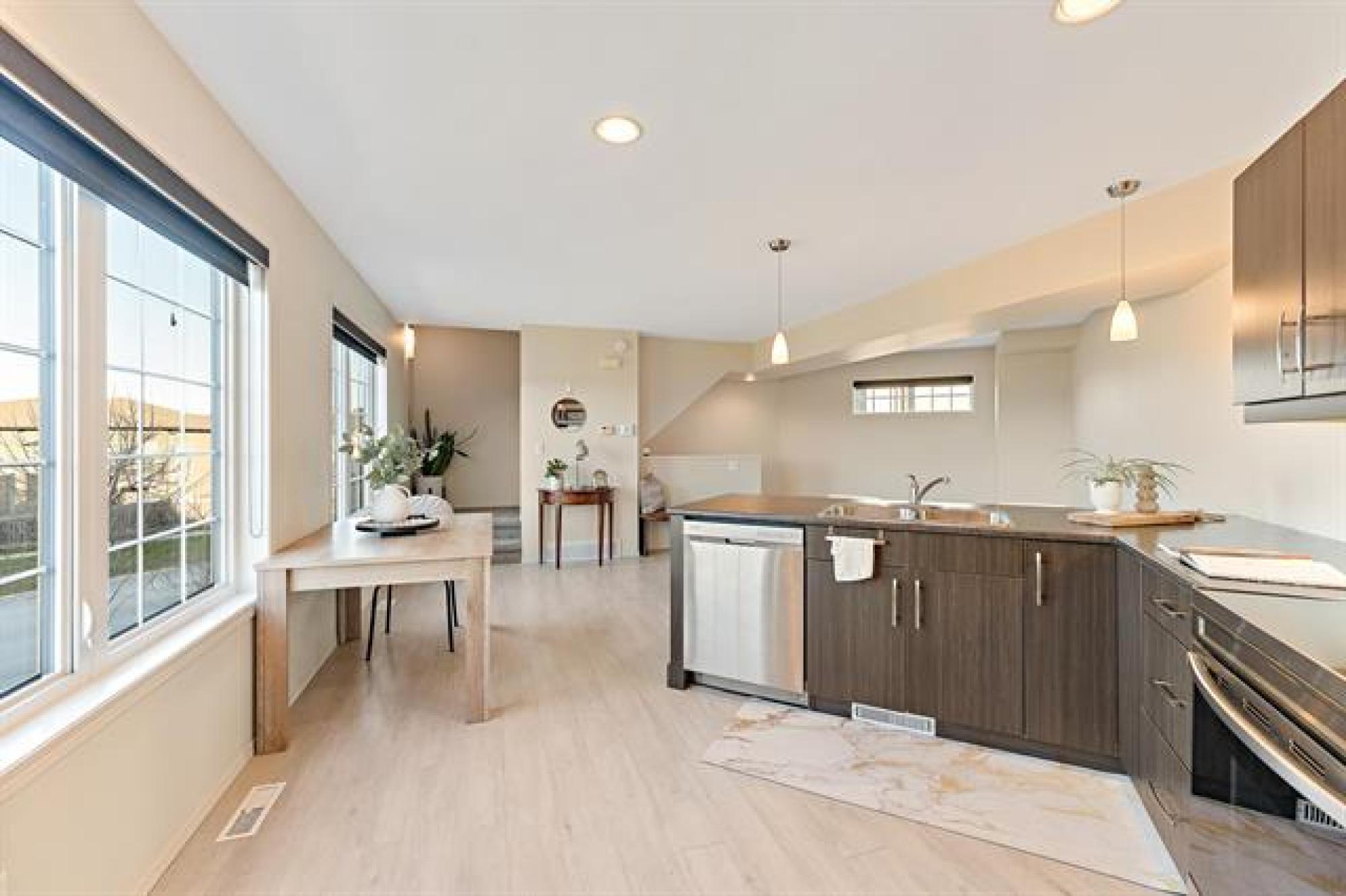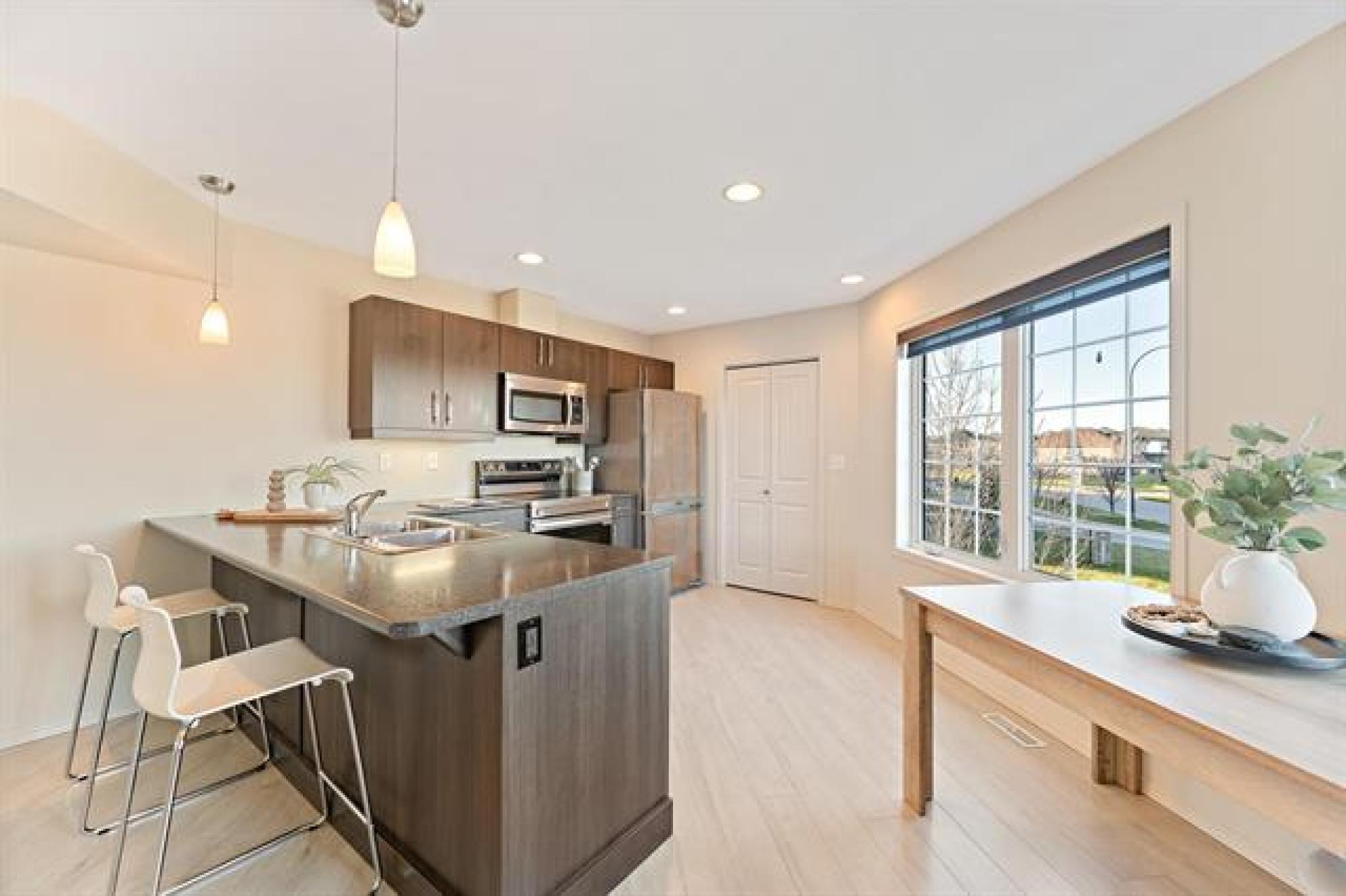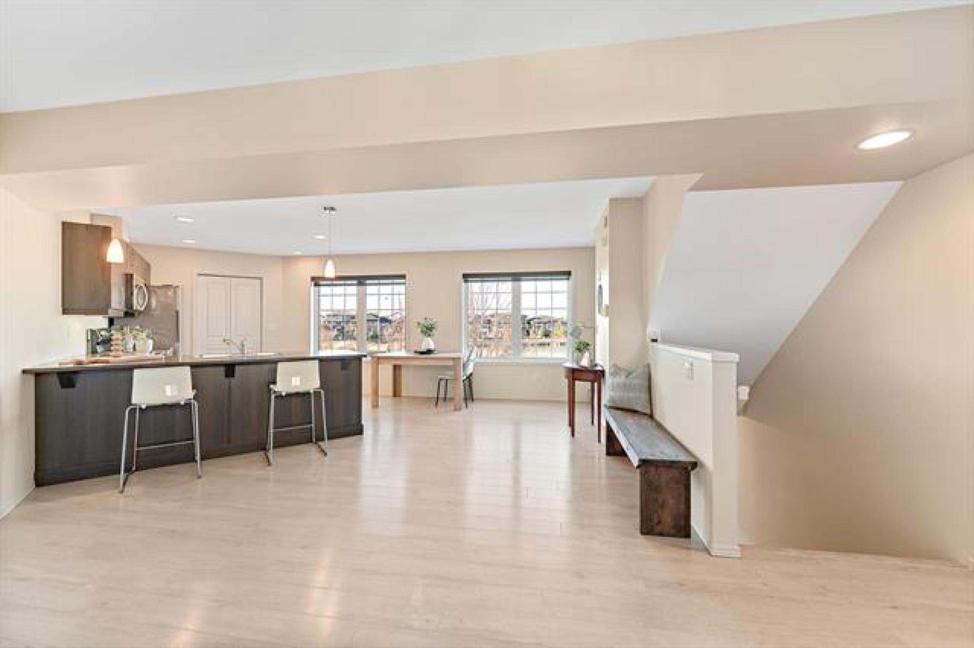 Showings start now! Offers as received. Welcome to 201 20 Ancaster Gate this beautiful 3 story townhouse style condo is in the highly desirable Bridgwater Forest community. Offering 2 spacious bedrooms and 2 full bathrooms, this condo features an open-concept kitchen and living area filled with natural light that gleams thoughtout. Enjoy stunning lake views from every floor, creating a peaceful and inviting atmosphere. The modern kitchen flows seamlessly into the bright living space, perfect for entertaining relaxing. Additionally this unit has in-suite laundry on the main floor, a private patio to watch the sunrise, and two dedicated parking spots. With its exceptional location, thoughtful design, and tranquil setting, this condo perfectly combines style, comfort, and convince in one of Winnipeg's most sought-after neighbourhoods. Close to many schools, University of Manitoba, Winnipeg Bluebomber stadium, Altea, Grocery stores, bus routes and so much more! Don't miss out!