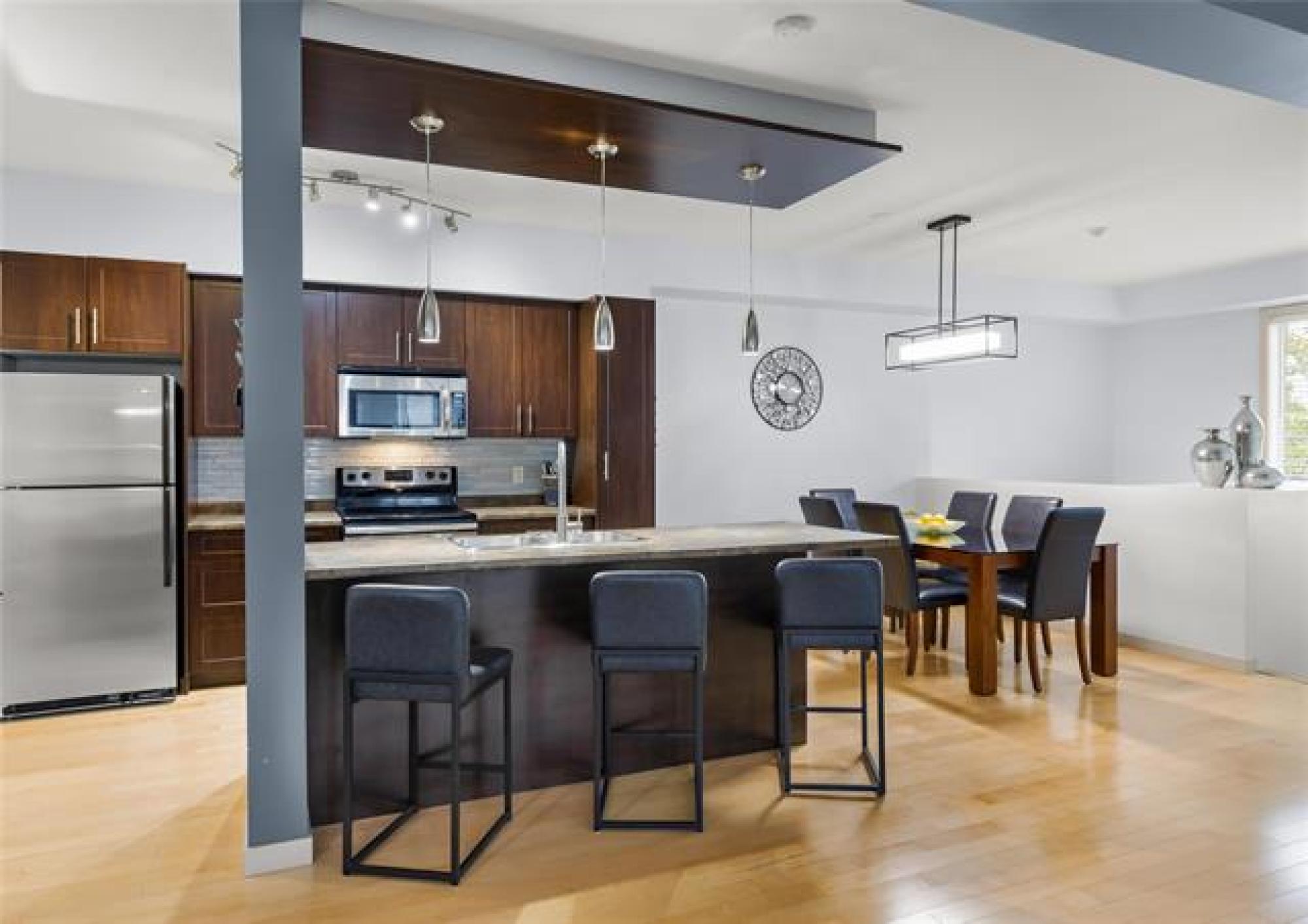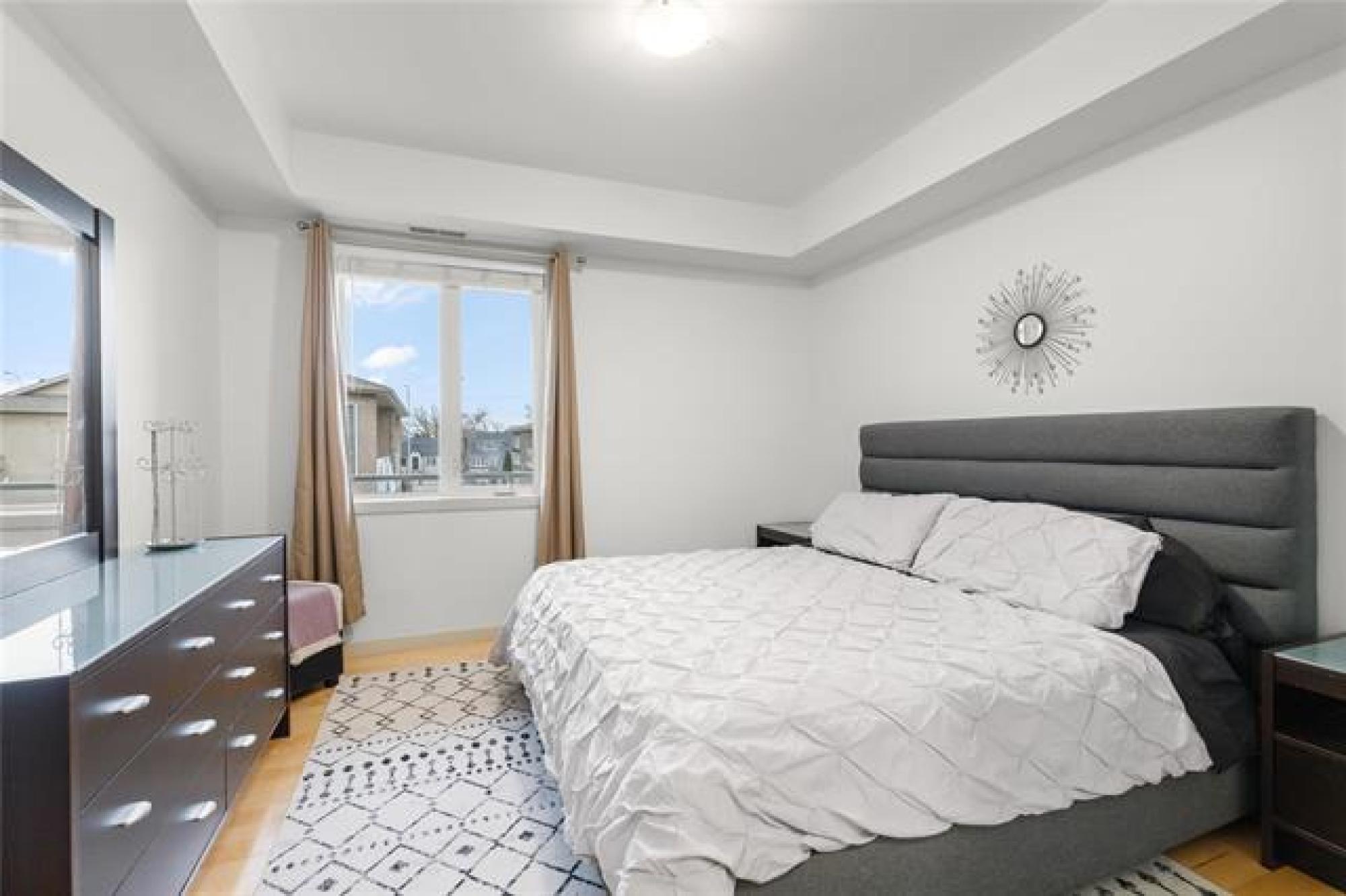 Welcome to the Gates on Henderson, where security meets stunning riverfront luxury. Enjoy one of the building's LARGEST floorplans at 1,230 sq ft, offering a bright, OPEN-CONCEPT LIVING SPACE WITH TWO GENEROUSLY SIZED BEDROOMS AND TWO FULL BATHROOMS. Premium finishes include a modern kitchen, stainless steel appliances, and a massive breakfast bar that flows seamlessly into the dining area. Savour a quiet moment on your private balcony or step out to explore the lush, WELL MAINTAINED GREEN SPACE THAT RUNS RIGHT DOWN TO THE RIVERBANK. Experience complete peace of mind with expert, professional complex management and the built-in security of a gated entrance just minutes from major shopping and dining on Henderson Highway.