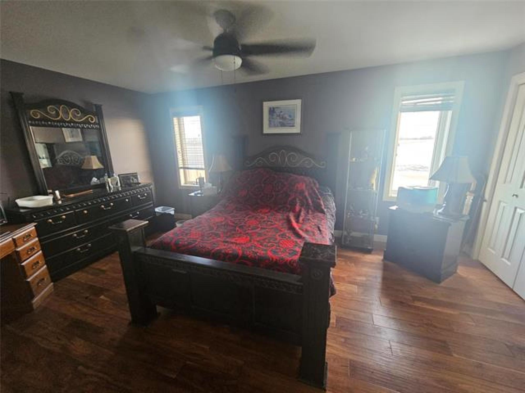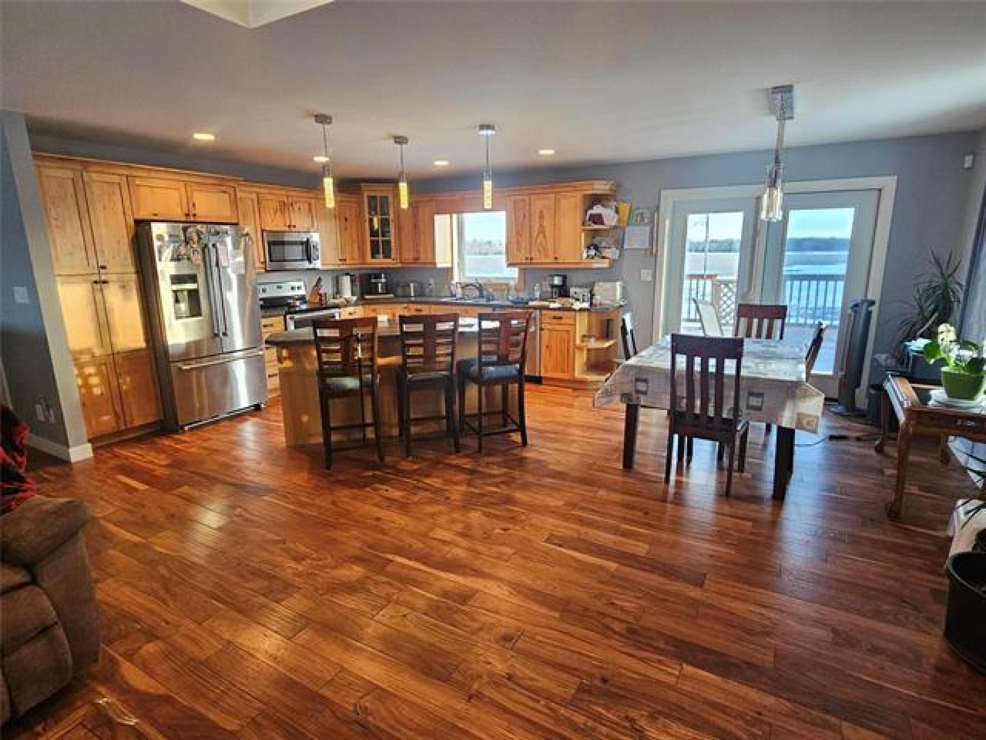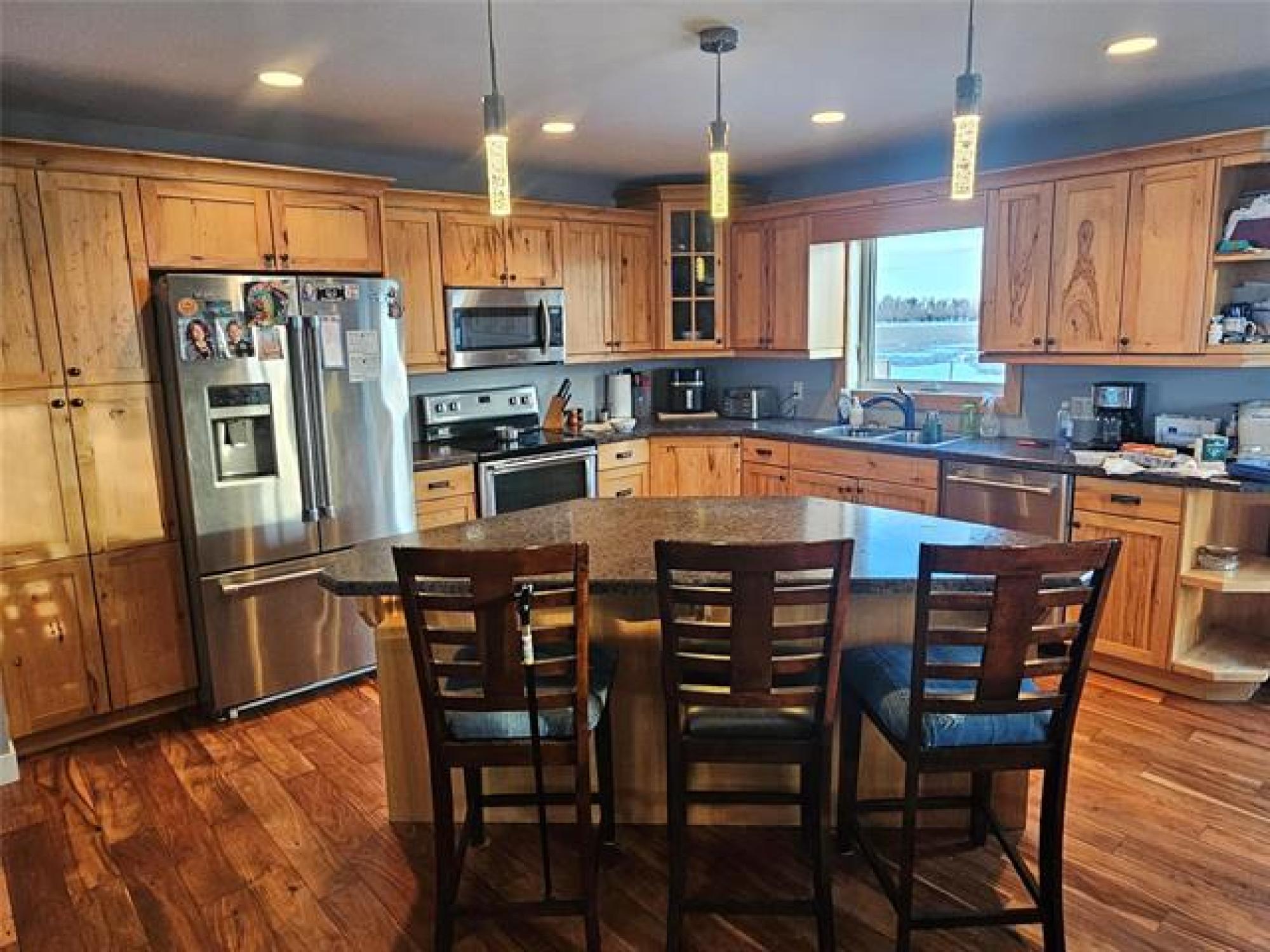 Custom hand crafted wood kitchen cabinets with Island and built in drawers. Large pantry. Trayed ceiling in the living room is accented with pot lights for a warm and relaxed feel. Engineered Hardwood floors. Master bedroom features his and hers closets, as well as a 4 piece ensuite. 2nd bedroom is close to the 4 piece main floor bathroom. Central air conditioning. Patio doors to a large deck. The full insulated lined lower level is ready for developemnt. Concrete ICF foundation. The 24 x 24 garage is insulated, drywalled, and painted. Private with no neighbors behind you. 20 minutes from city. Semi- pie shaped lot.