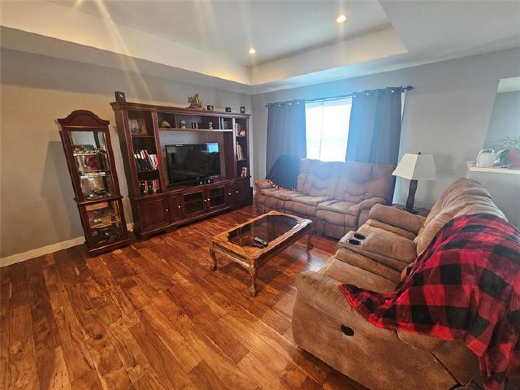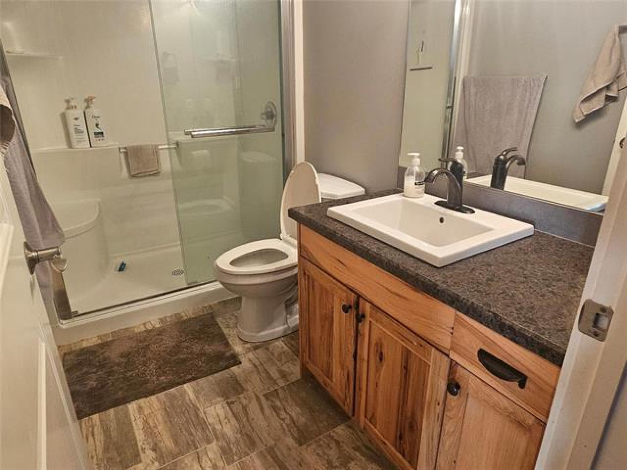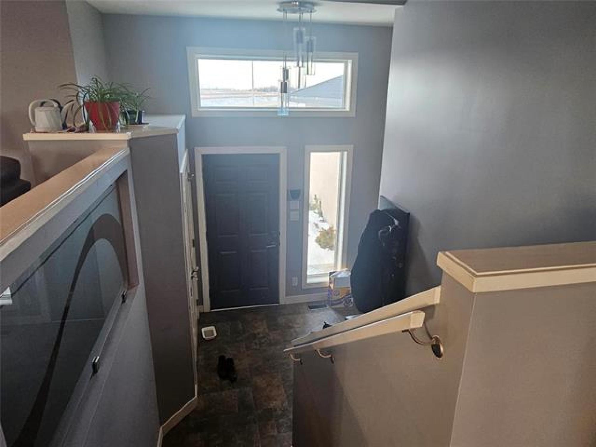 Custom hand crafted wood kitchen cabinets with Island and built in drawers. Large pantry. Trayed ceiling in the living room is accented with pot lights for a warm and relaxed feel. Engineered Hardwood floors. Master bedroom features his and hers closets, as well as a 4 piece ensuite. 2nd bedroom is close to the 4 piece main floor bathroom. Central air conditioning. Patio doors to a large deck. The full insulated lined lower level is ready for developemnt. Concrete ICF foundation. The 24 x 24 garage is insulated, drywalled, and painted. Private with no neighbors behind you. 20 minutes from city. Semi- pie shaped lot.