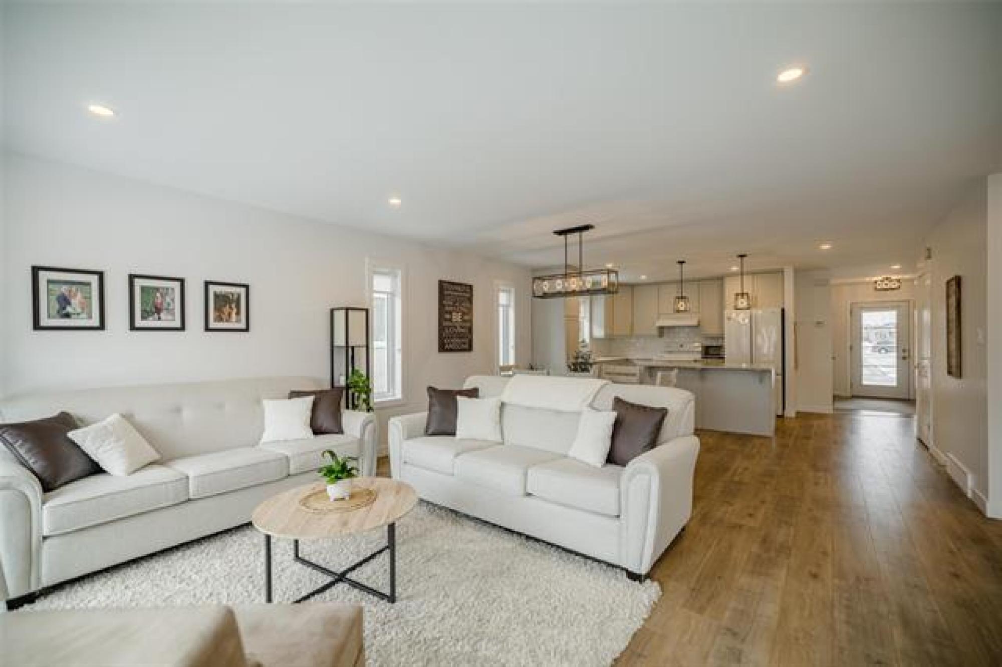 SS April 8 Offers April 18 - Consider downsizing to this desired condo community where seasonal yard care is included in the low monthly condo fees of $130! This 1200sqft unit was built new in 2019 and has been meticulously cared for with beautiful modern finishing throughout. The main floor laundry and open concept living space are sought after features and the quartz counter tops tastefully finish of the cabinetry. The front facing bedroom is also a perfect office space with lots of natural light and just around the corner from the 3pce bathroom. The spacious primary bedroom has a 4 pce ensuite and walk in closet. The lower level is ready for completion, or makes great storage space, with the utilities conveniently tucked away. Central air, natural gas furnace, HRV and all appliances are included. Oversized single attached garage with opener. Summer possession date preferred. Don't miss this one - book your showing today!