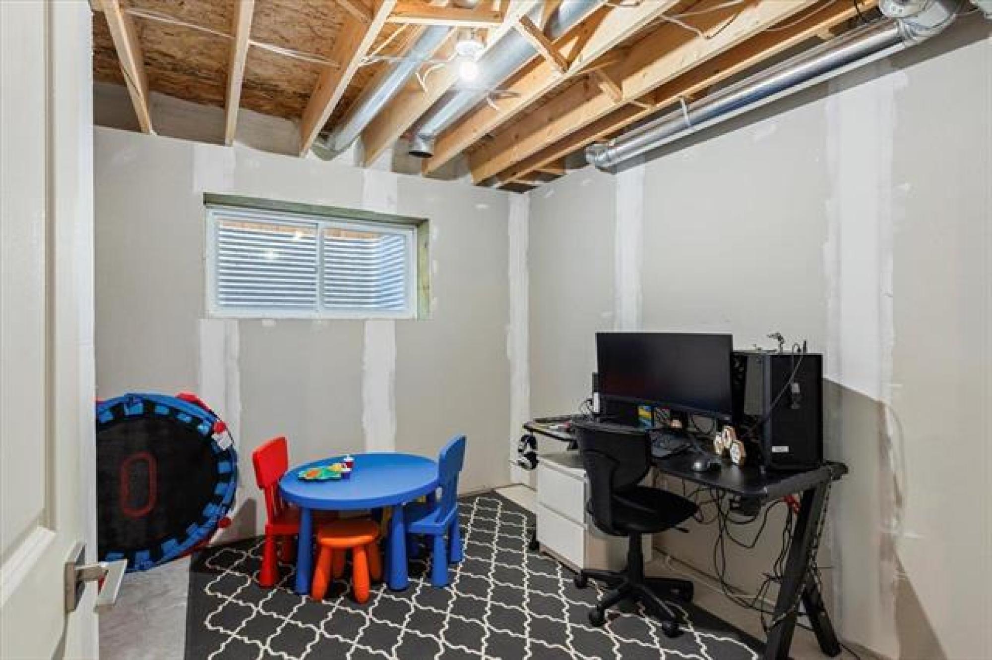 Modern comfort meets family-friendly living in this stunning 2-bedroom, 2-bath bungalow located in the highly sought-after Hampton Village! Built in 2023 by GE Homes, this home feels brand new and offers an effortless open-concept design with luxury vinyl plank floors, quartz counters, and stainless steel appliances that shine in the bright kitchen. StartThe partially finished lower level adds even more value — enjoy a spacious rec room, a full bathroom, and two framed and drywalled bedrooms ready for your personal finishing touches. Step through the patio doors to your large deck and landscaped, fenced backyard — perfect for BBQs and family fun, plus a storage shed for convenience. A single attached garage and extra-wide driveway provide plenty of parking. Located just minutes from Clearspring Middle School, this home is perfect for a young family or anyone looking for move-in-ready modern living in a beautiful, growing neighborhood!