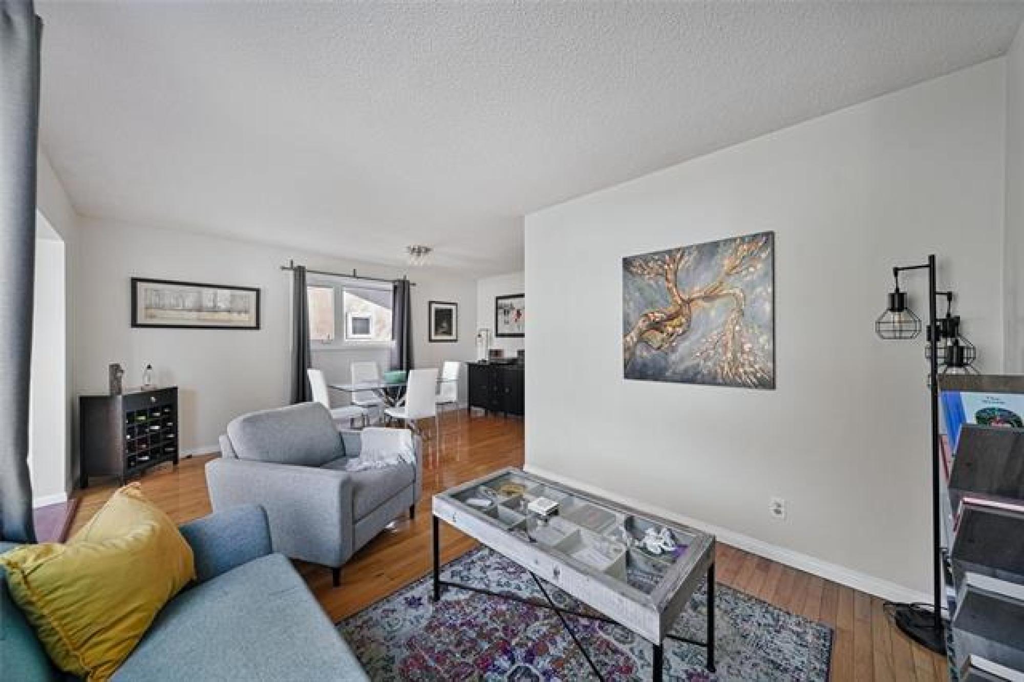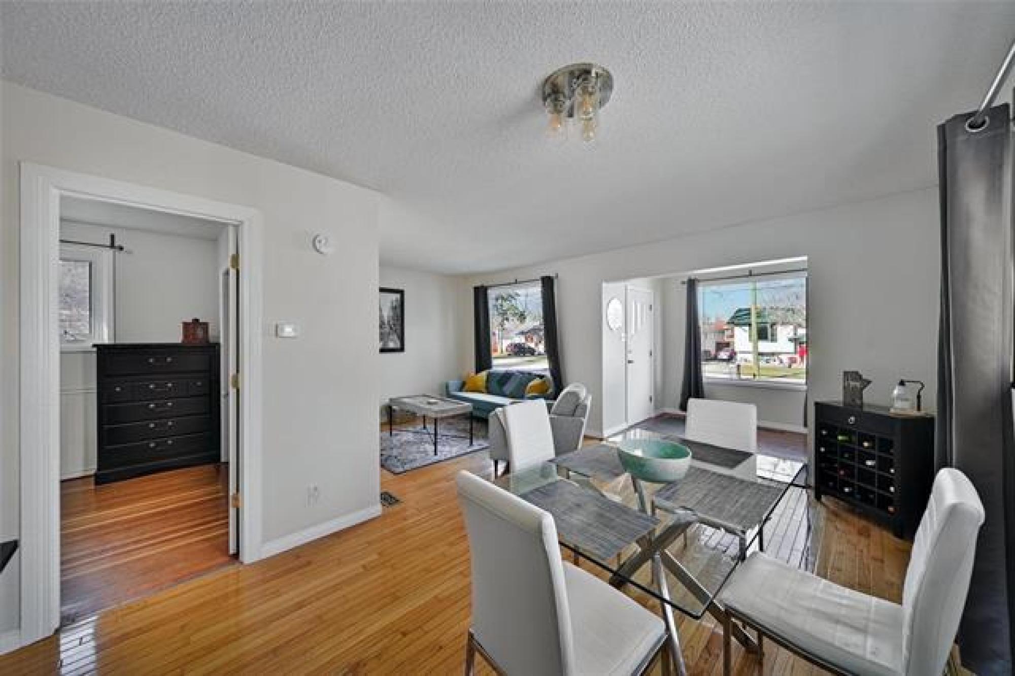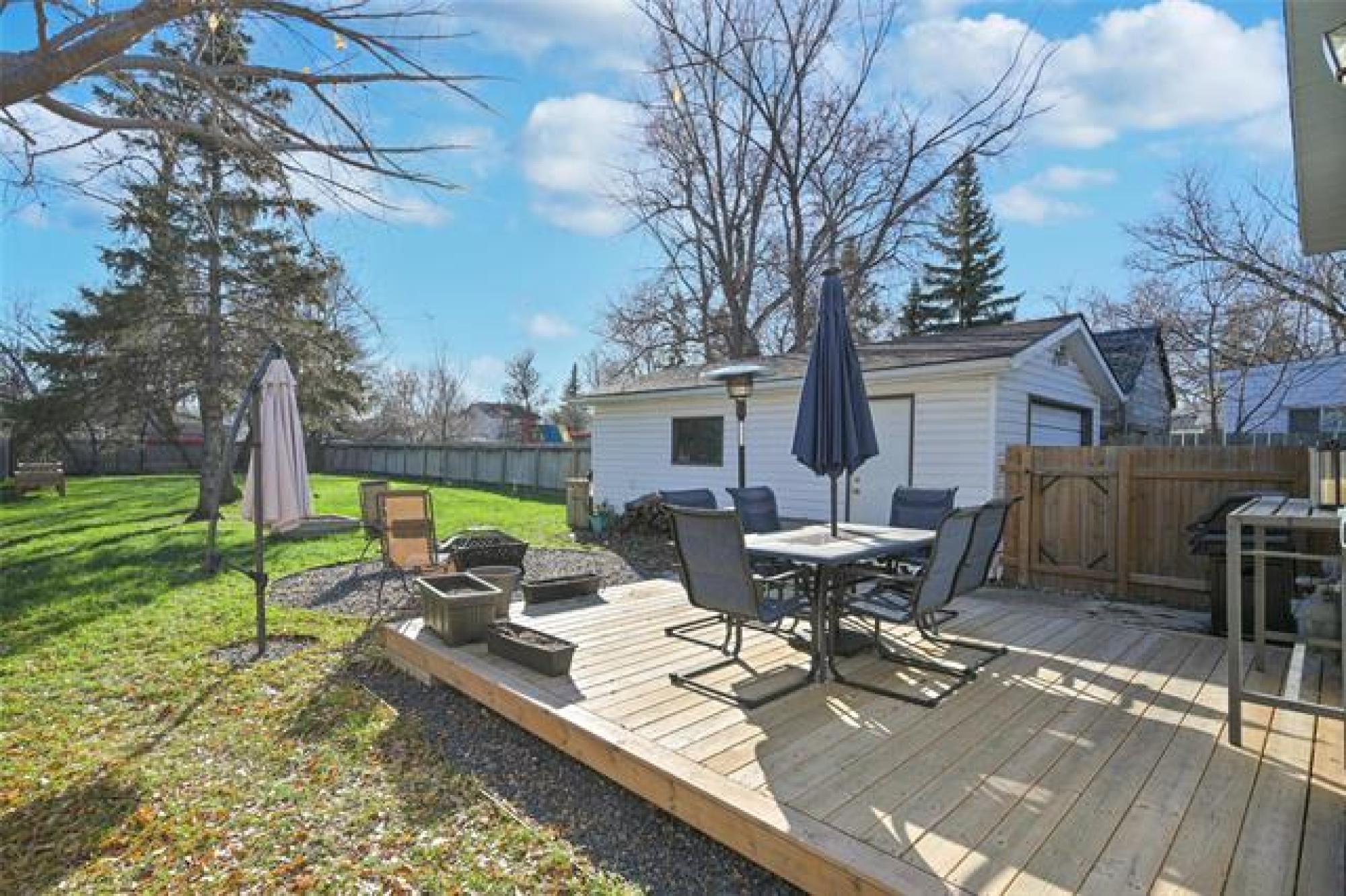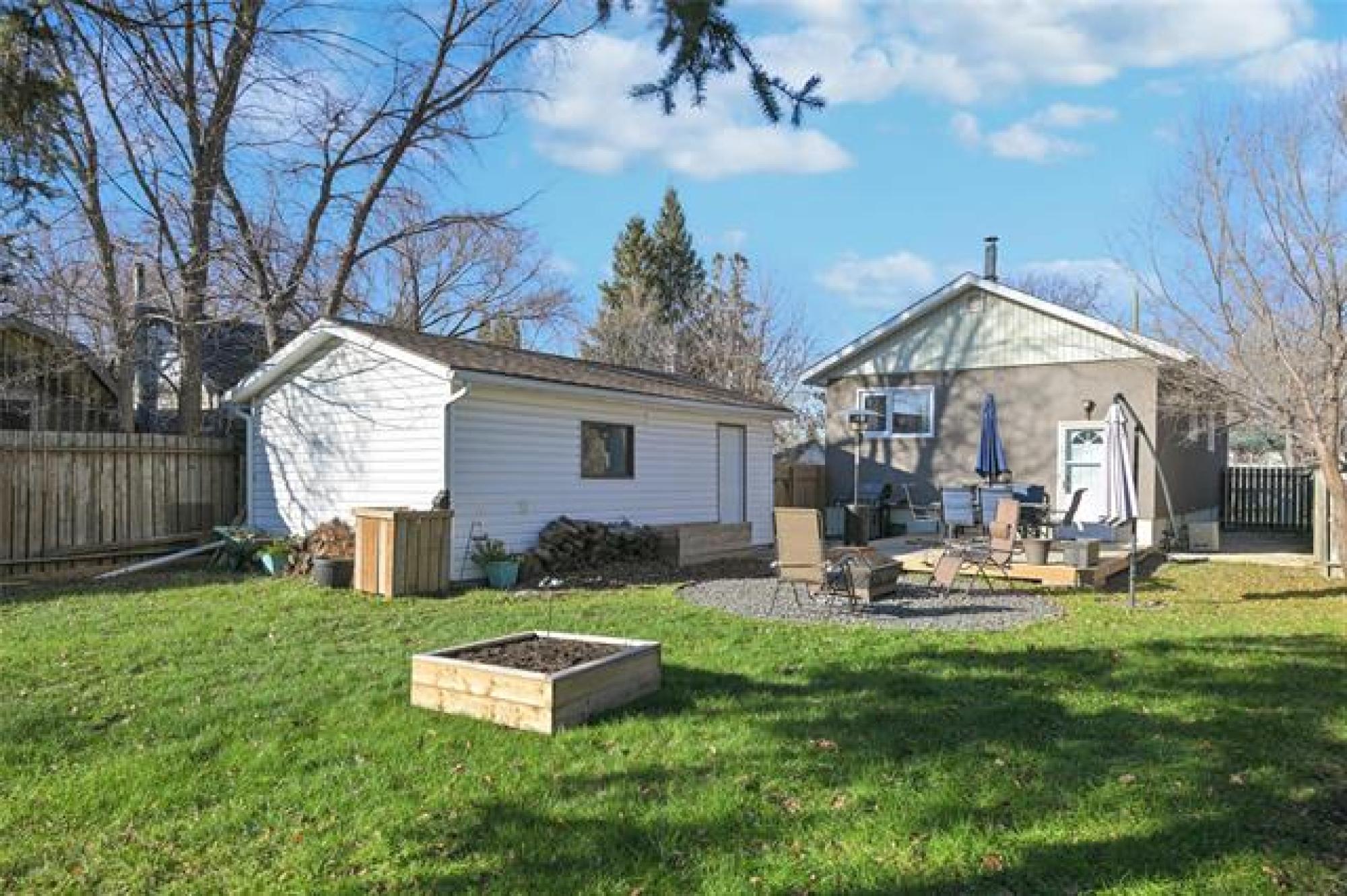 Showings start now, offers presented Nov 20 evening, Open house Saturday Nov 15 1:00-3:00pm. Welcome to this charming 2 bedroom, 1 bath bungalow, with single detached garage. The perfect place to call home for first-time buyers! Featuring 875 square feet of bright, functional living space plus a fully finished basement, Central A/C and high efficiency furnace this move in ready gem offers comfort, updates, and incredible value. You’ll love the living and dining area with hardwood floors, a bright kitchen with a double sink, and a layout that feels both cozy and open. Downstairs, enjoy the finished basement with a bar area, perfect for entertaining or relaxing. Step outside to your massive, fully fenced backyard with deck and fire pit, ideal for gathering with family and friends, and plenty of yard space for kids, pets, or garden. Enjoy peace of mind knowing the furnace and hot water tank are new (2025), other updates include deck and front steps (2024) basement flooring and paint (2023) dishwasher (2022). Located close to schools, shopping, and public transportation, this home combines convenience with charm. Possession can be quick! Move in before the holidays and start the new year in your new home!