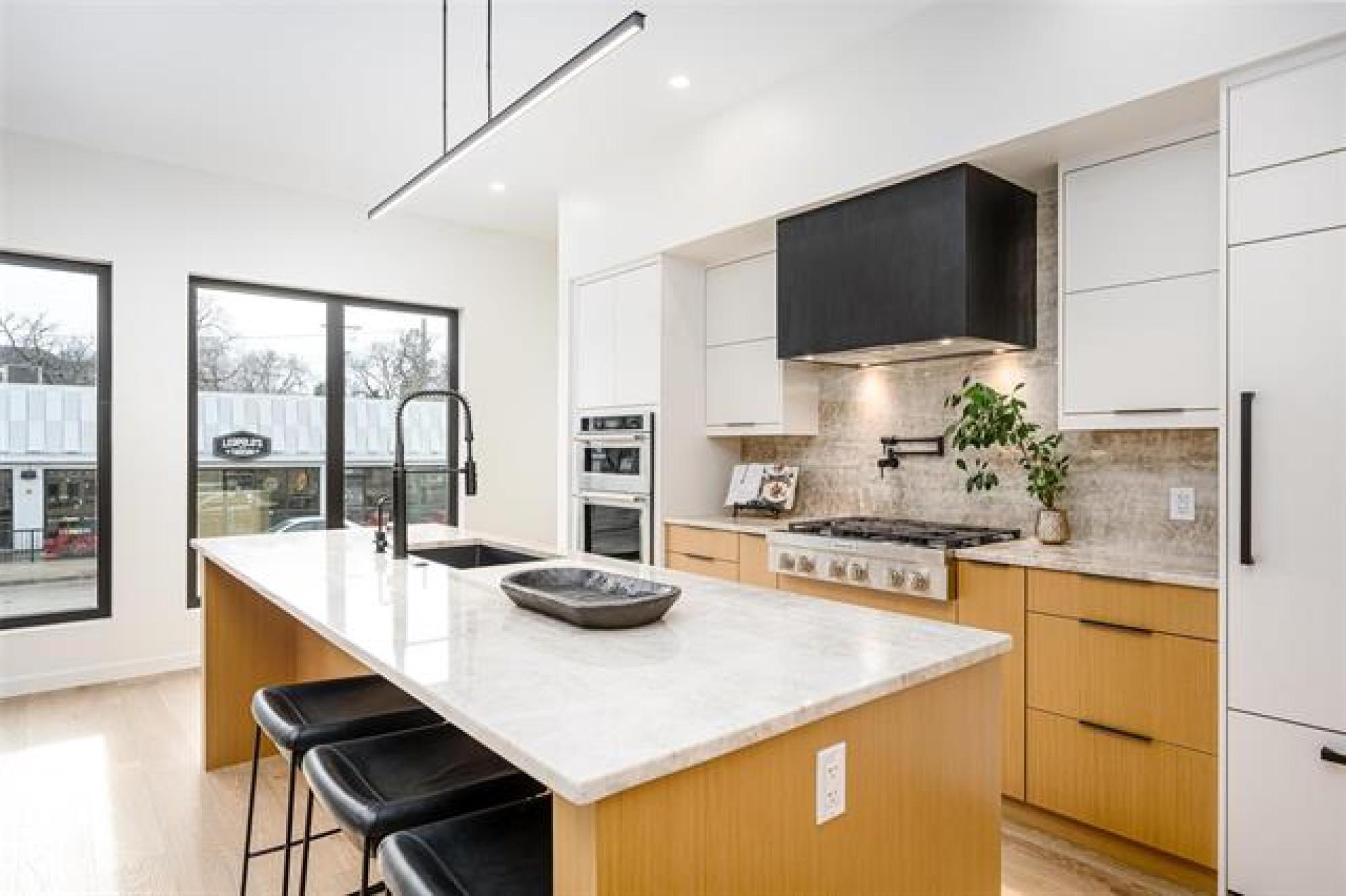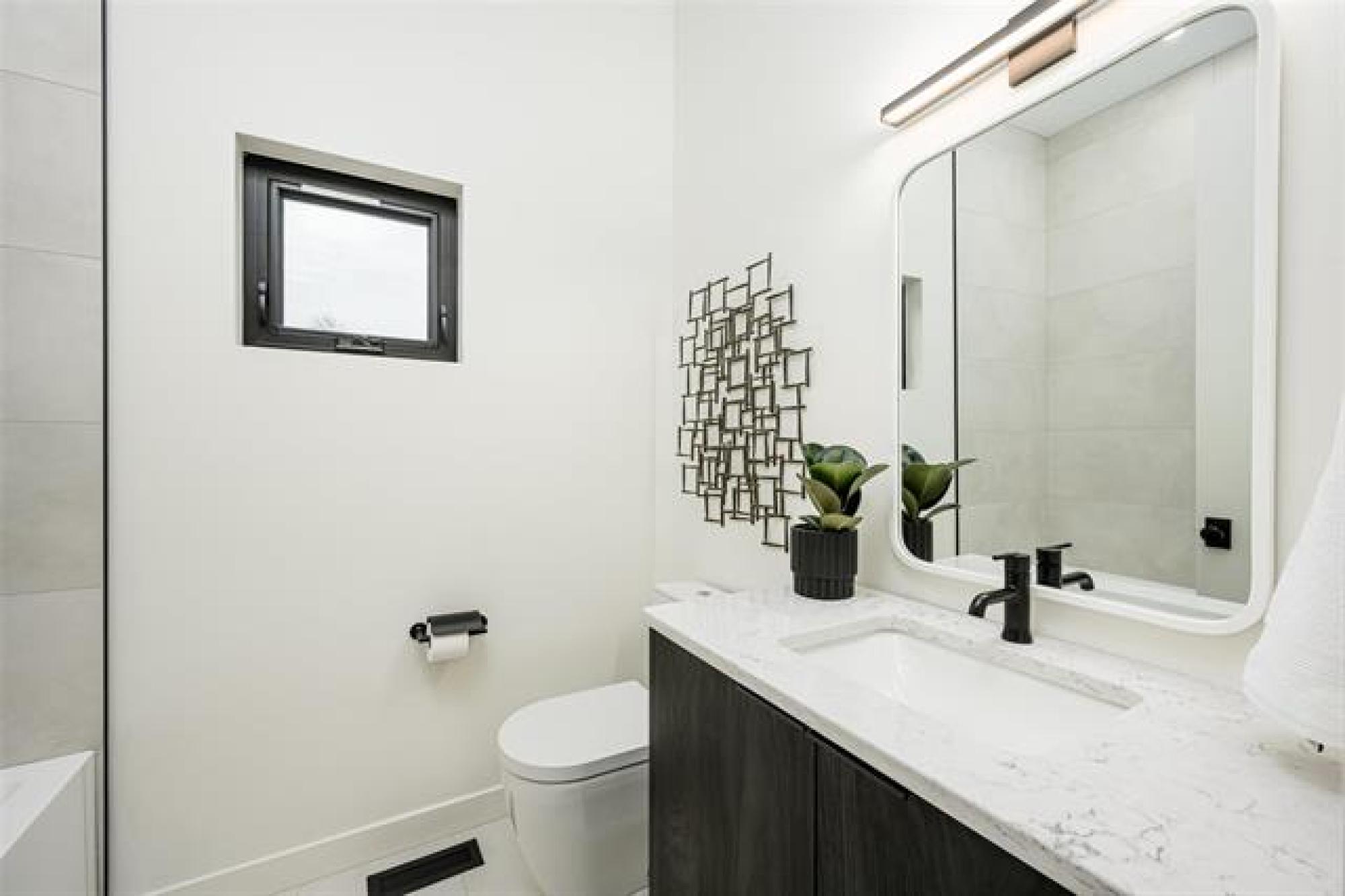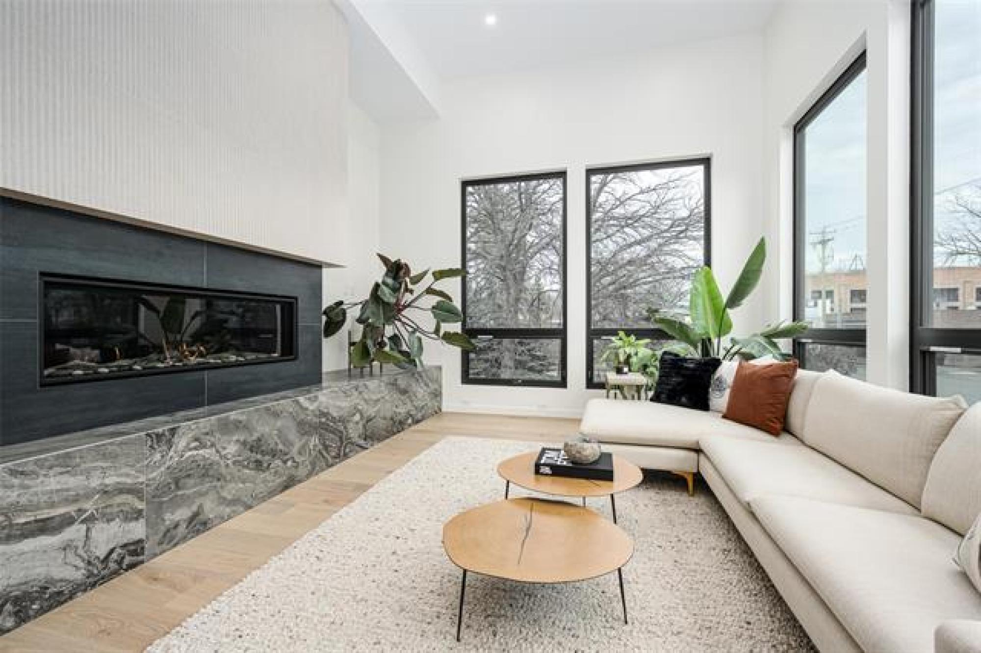 Experience exceptional luxury in this custom-built masterpiece by Dwell Homes, perfectly situated in the prestigious River Heights neighbourhood. The main level is adorned with elegant engineered hardwood floors, guiding you into a breathtaking living room featuring soaring 14-foot ceilings and a striking gas fireplace set against a dramatic feature wall. At the heart of the home lies a chef-inspired kitchen, beautifully finished with Taj Mahal Granite countertops and backsplash, premium appliances, abundant custom cabinetry for storage, and a hidden coffee nook for your morning ritual. Each spacious bedroom includes its own private ensuite with heated floors, offering comfort and privacy for every resident. The fully insulated lower level offers incredible potential, with high ceilings and large windows creating a bright, open space—ideal for a home office, studio, or future development. With side access from Academy Road, it’s perfectly suited for a work-live setup. This home is built on piles with a structural wood floor system and includes an oversized, double-attached garage for added convenience. A transferrable interest rate is available—contact for details. Property taxes to be confirmed