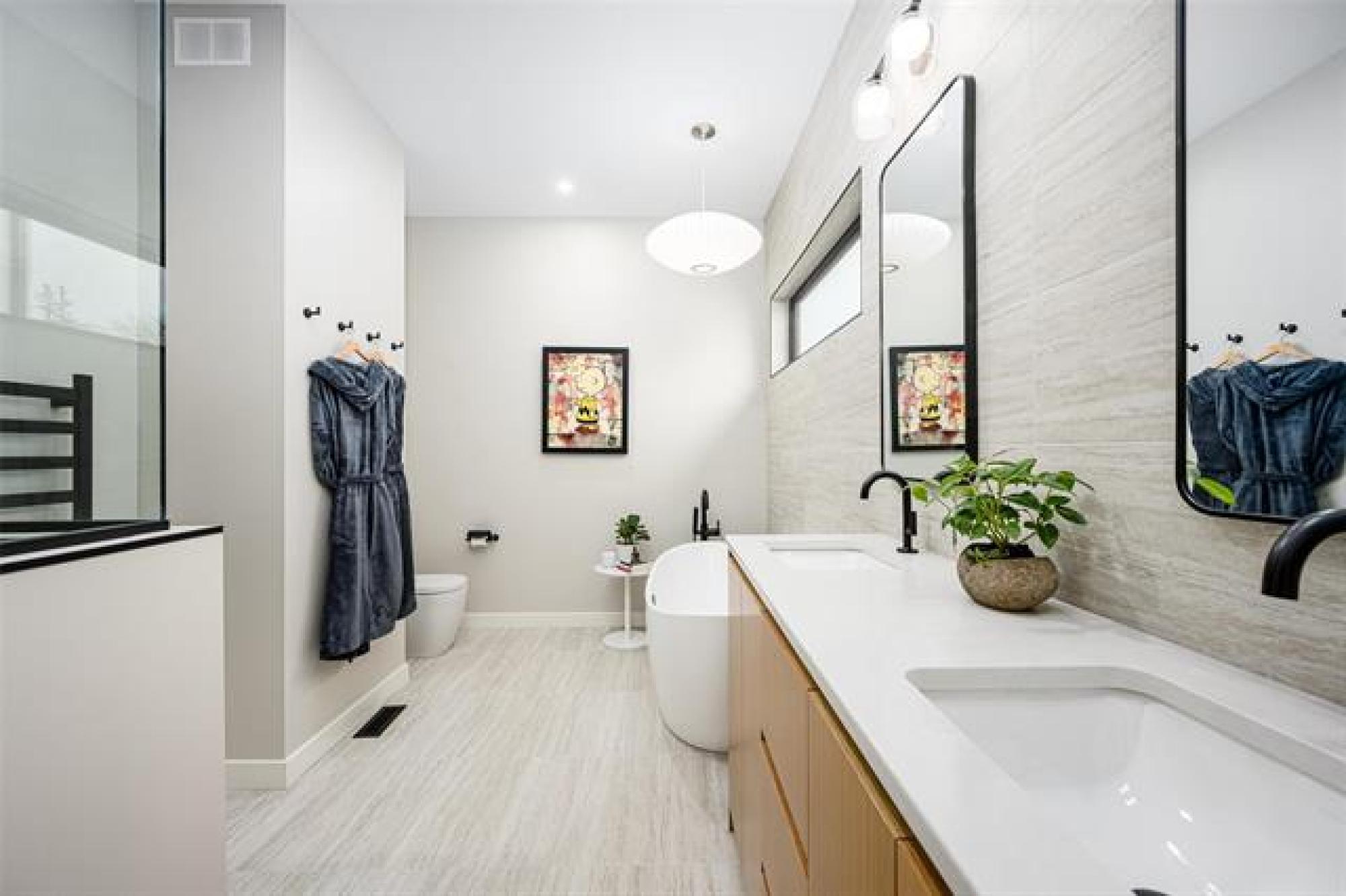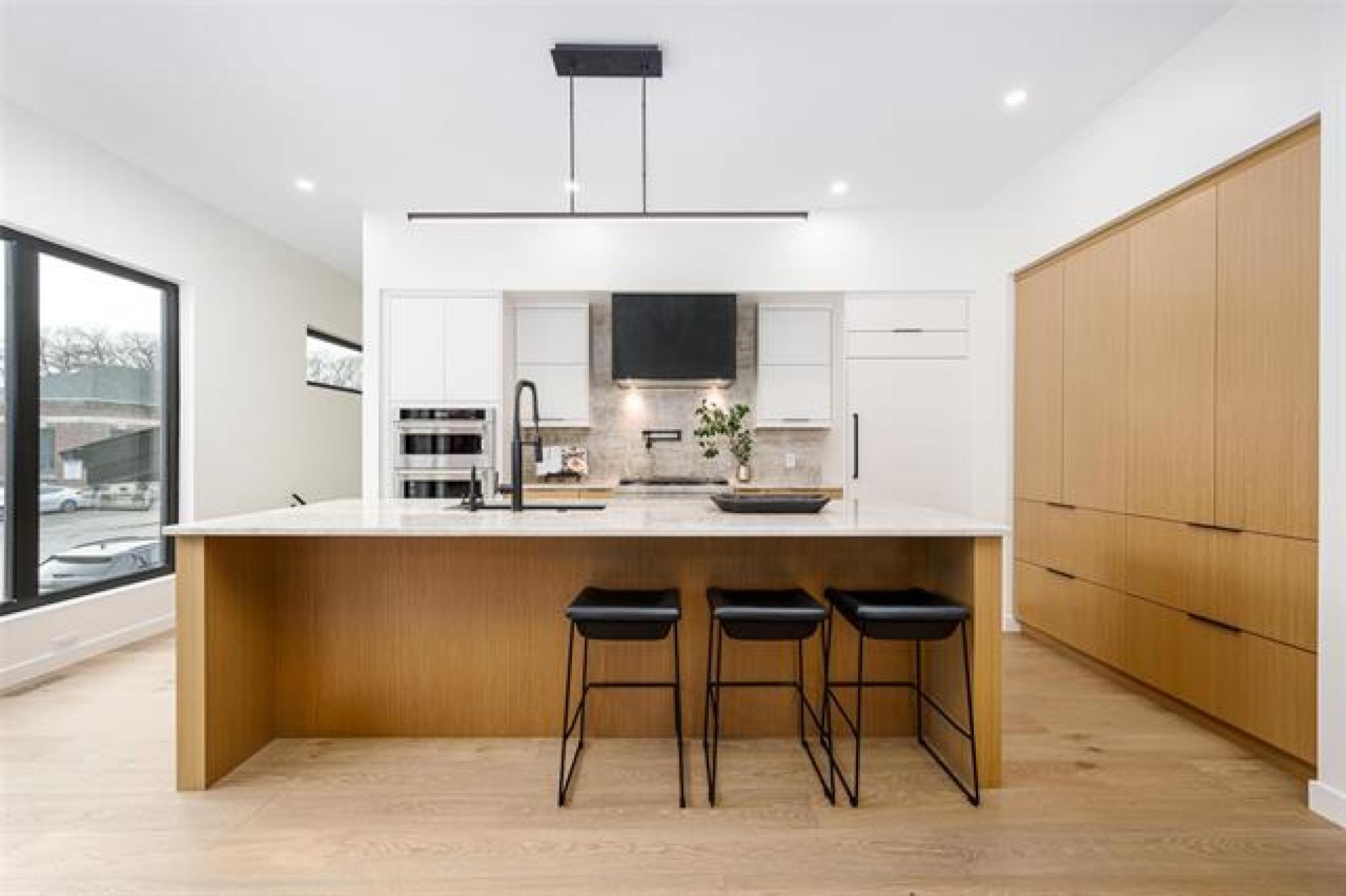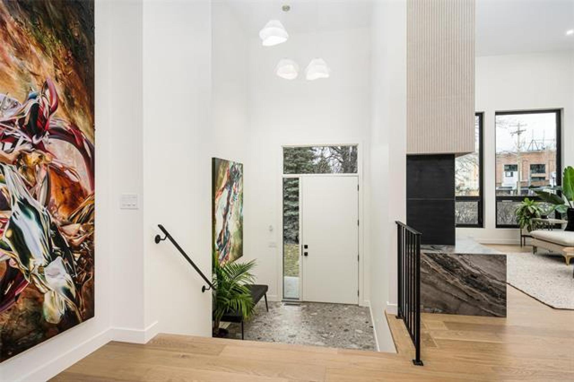 Experience exceptional luxury in this custom-built masterpiece by Dwell Homes, perfectly situated in the prestigious River Heights neighbourhood. The main level is adorned with elegant engineered hardwood floors, guiding you into a breathtaking living room featuring soaring 14-foot ceilings and a striking gas fireplace set against a dramatic feature wall. At the heart of the home lies a chef-inspired kitchen, beautifully finished with Taj Mahal Granite countertops and backsplash, premium appliances, abundant custom cabinetry for storage, and a hidden coffee nook for your morning ritual. Each spacious bedroom includes its own private ensuite with heated floors, offering comfort and privacy for every resident. The fully insulated lower level offers incredible potential, with high ceilings and large windows creating a bright, open space—ideal for a home office, studio, or future development. With side access from Academy Road, it’s perfectly suited for a work-live setup. This home is built on piles with a structural wood floor system and includes an oversized, double-attached garage for added convenience. A transferrable interest rate is available—contact for details. Property taxes to be confirmed