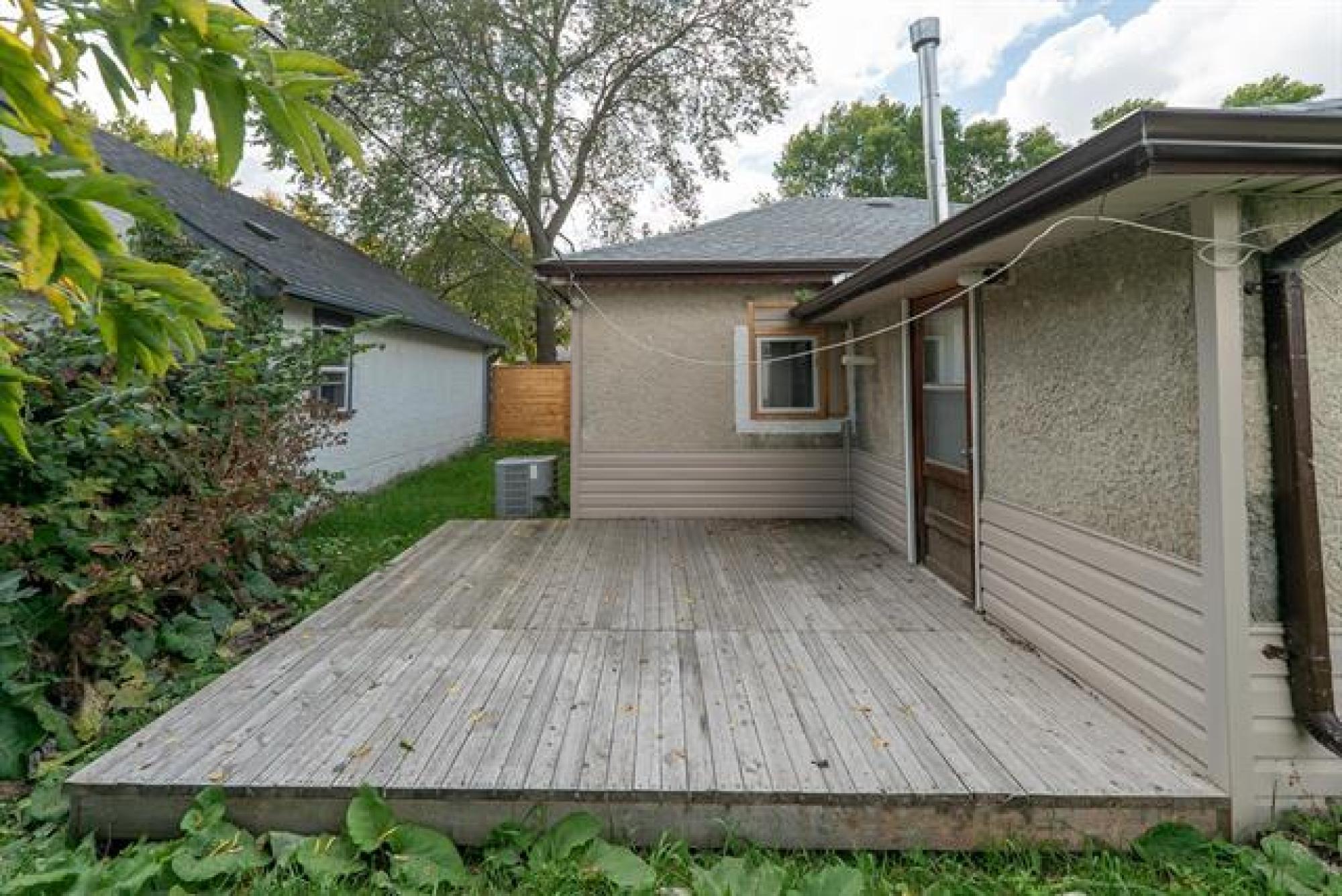 Welcome to this inviting 954 sq ft bungalow, ideally located near Red River College and a variety of everyday conveniences. Step inside to a bright living room with warm hardwood flooring, creating a cozy space to relax and unwind. The spacious eat-in kitchen offers plenty of cabinetry and room for family meals or entertaining. The home offers two comfortable bedrooms plus a versatile den/flex room — ideal for storage, a home office, or even a potential third bedroom with some adjustments. Recent updates add comfort and peace of mind, including new shingles (2023), updated front windows (2023), a high-efficiency furnace, refreshed bathroom, drywall, and flooring. The fenced backyard is ready for outdoor enjoyment, featuring a large deck, storage shed, and landscaped space for kids, pets, or gardening. Appliances and furnishings are included, making this a convenient move-in-ready opportunity. Whether you’re a first-time buyer, investor, or someone looking for a well-kept bungalow in a central location, this property is worth a closer look.