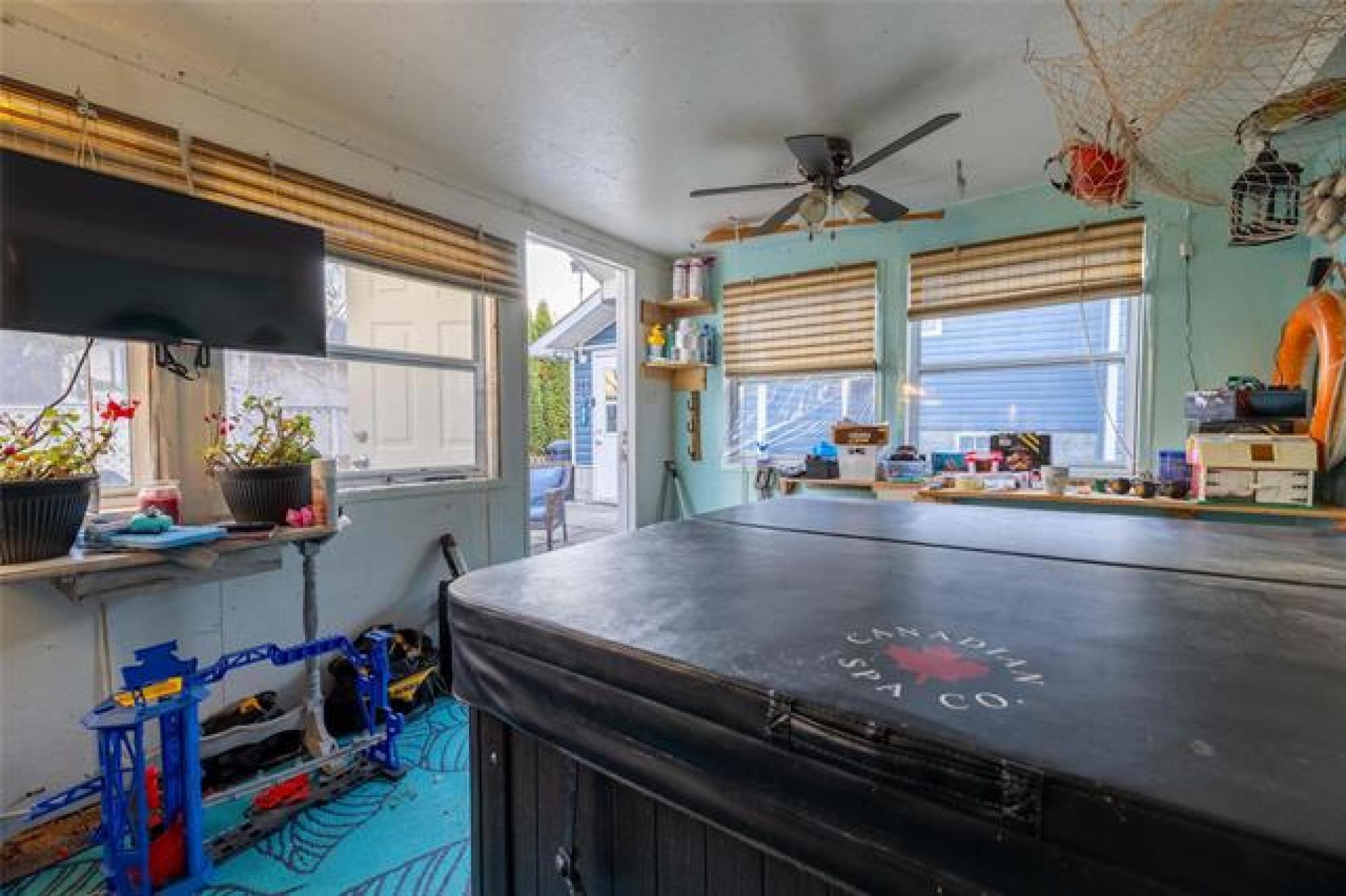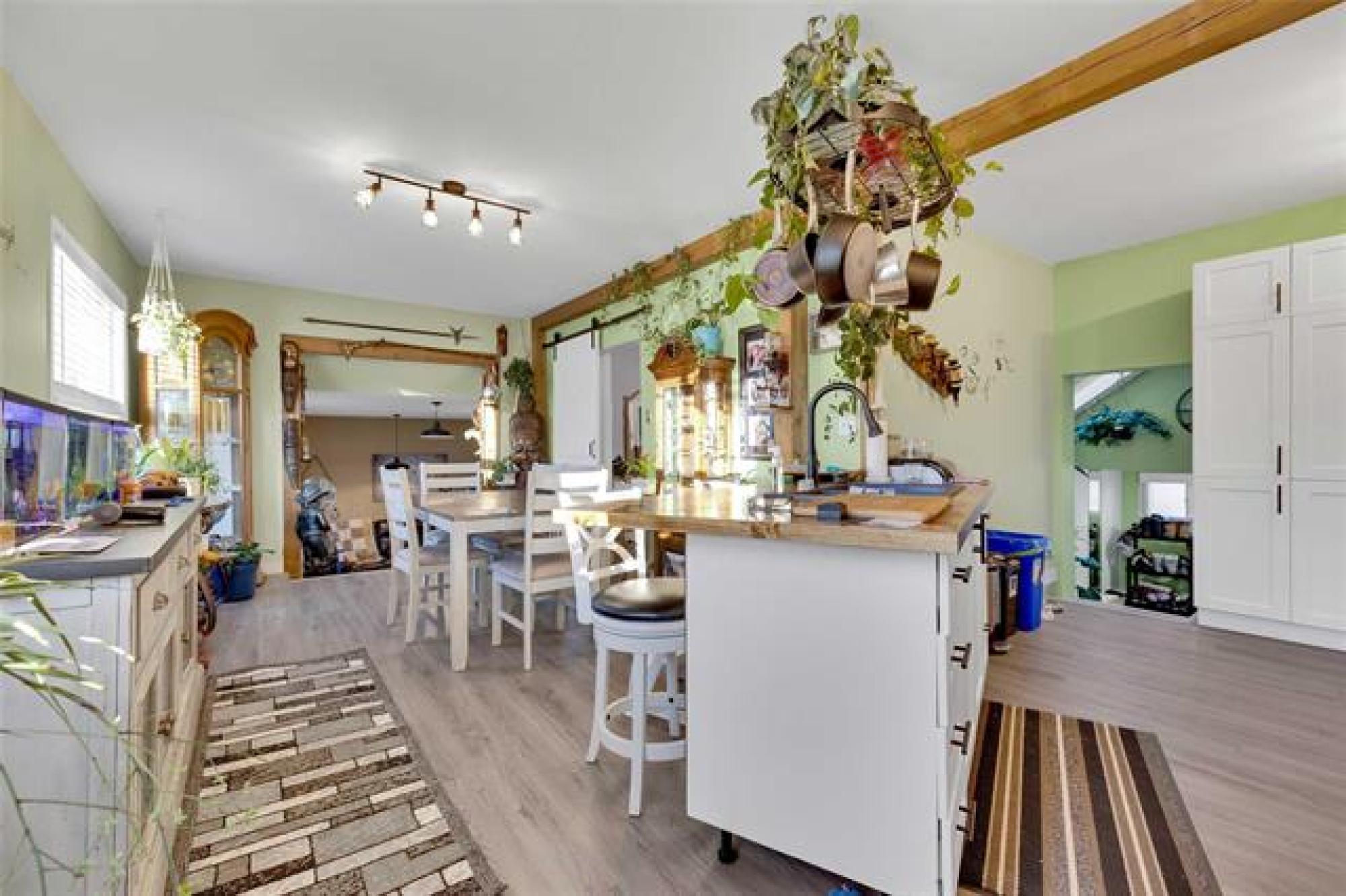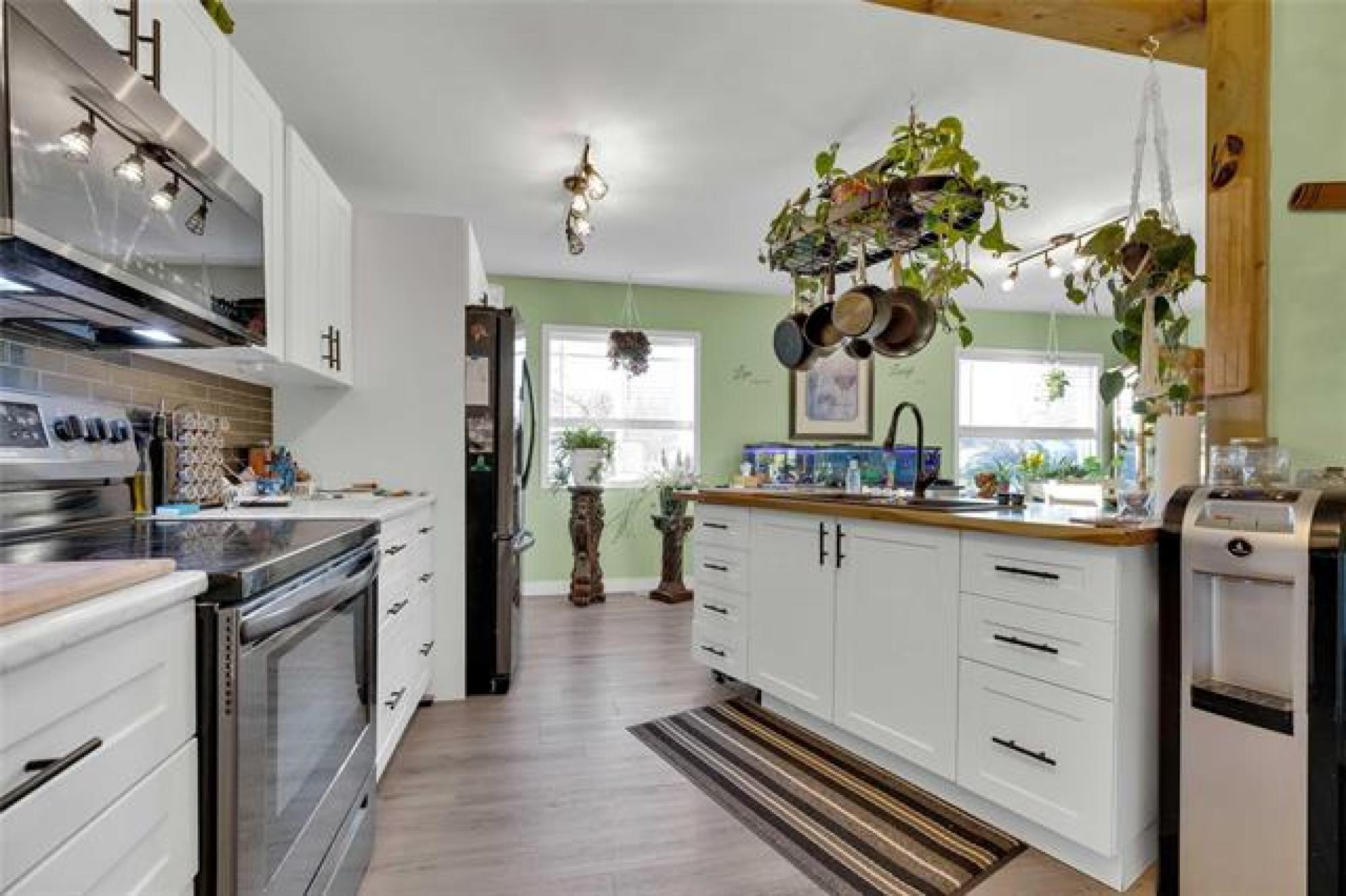 This newly updated 2 bedroom, 2 bathroom home perfectly blends modern upgrades with character. Featuring sleek fixtures throughout, the home is move-in ready and offers a spacious, flowing layout. The main floor includes a bright kitchen with plenty of cupboard space, stainless steel appliances, and abundant natural light. This opens into a dining area with beautiful wooden stairs leading down to the living room. Adjacent to the living room, you'll find a bedroom with a large closet. The main floor also features a stylish bathroom with a large soaker tub. The lower level includes a partially finished rec room, offering flexible space for entertainment or a home office, along with plenty of storage. The backyard is a standout, with a detached workshop ideal for hobbies, tools, or extra storage. With modern updates, a great layout, and plenty of outdoor space, this home is the perfect place to call your own.