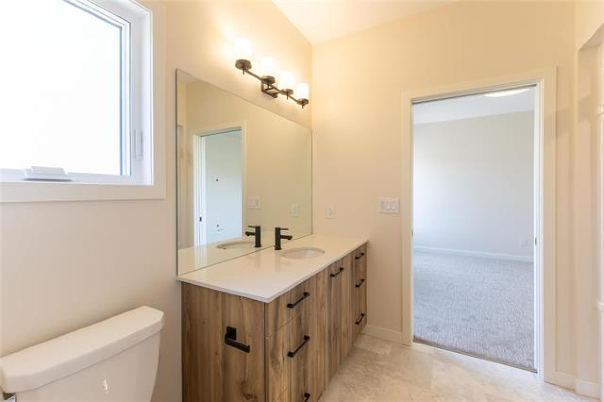 Built by Warkentin Custom Homes, this stunning 2bdrm, 2bthrm 1360sqft bungalow w/ a full bsmt & dbl attached garage is sure to impress! Step inside to find LVP flooring flowing throughout the main living areas. The eat-in kitchen features two-tone soft-close cabinets, quartz counters, subway tile backsplash, stainless steel appliances, an island with built-in microwave, and seating for 3. The formal dining area is open to the living room, showcasing west-facing windows & a patio door leading to a covered deck. The primary suite offers a walk-in closet and a 3-piece ensuite with a 1 piece acrylic shower and glass doors. A second spacious bedroom, 4 pc bathroom & main flr laundry w/ builtin cabinetry complete the main flr. Additional features include steel beam construction, plywood subfloor w/ Ijoists, spray-foamed floor joist cavities, and a Lennox furnace with central air.Choose from 2 flr plans & various interior finishes.Show home by private appointment!