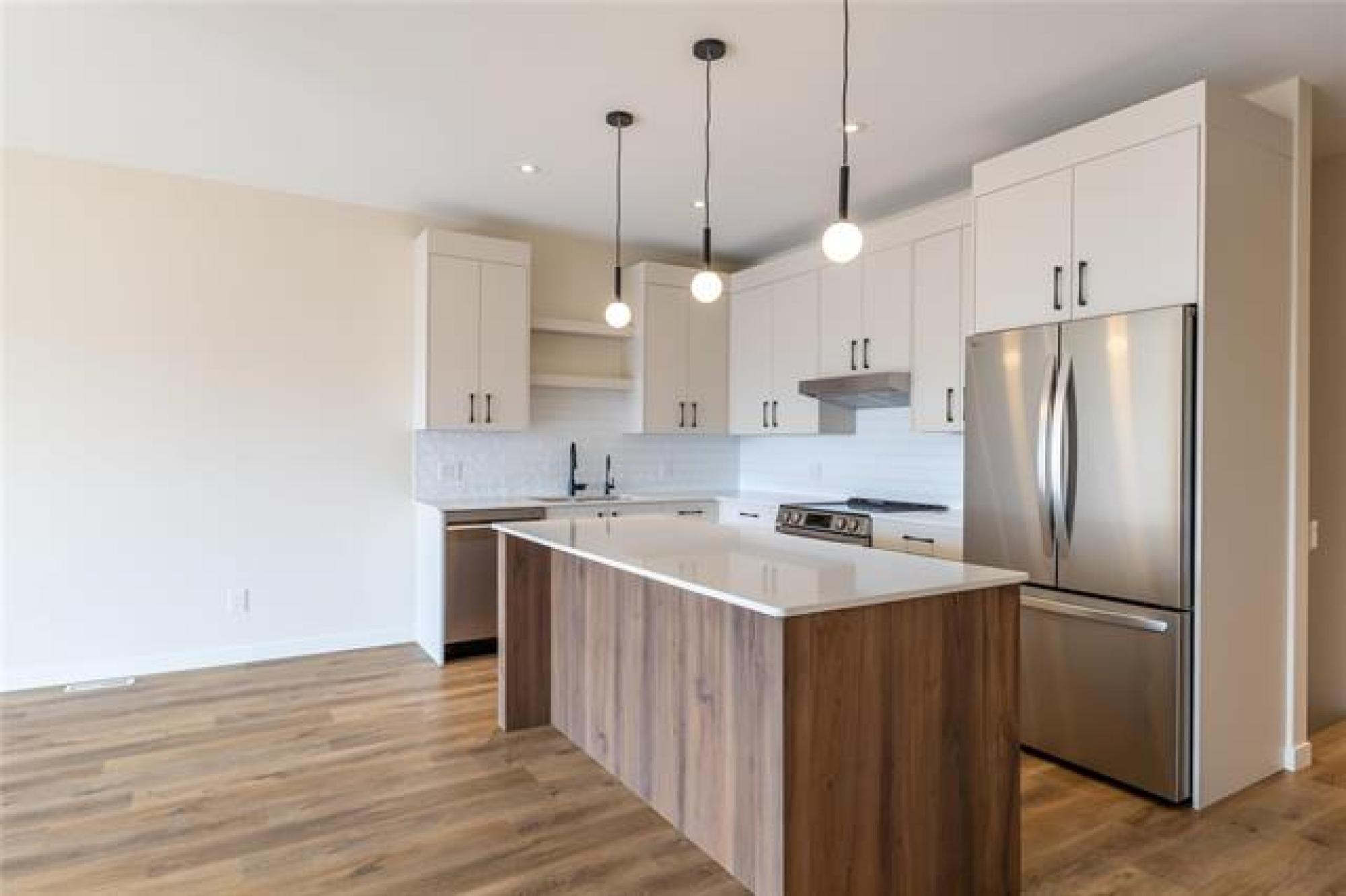 Built by Warkentin Custom Homes, this stunning 2bdrm, 2bthrm 1360sqft bungalow w/ a full bsmt & dbl attached garage is sure to impress! Step inside to find LVP flooring flowing throughout the main living areas. The eat-in kitchen features two-tone soft-close cabinets, quartz counters, subway tile backsplash, stainless steel appliances, an island with built-in microwave, and seating for 3. The formal dining area is open to the living room, showcasing west-facing windows & a patio door leading to a covered deck. The primary suite offers a walk-in closet and a 3-piece ensuite with a 1 piece acrylic shower and glass doors. A second spacious bedroom, 4 pc bathroom & main flr laundry w/ builtin cabinetry complete the main flr. Additional features include steel beam construction, plywood subfloor w/ Ijoists, spray-foamed floor joist cavities, and a Lennox furnace with central air.Choose from 2 flr plans & various interior finishes.Show home by private appointment!