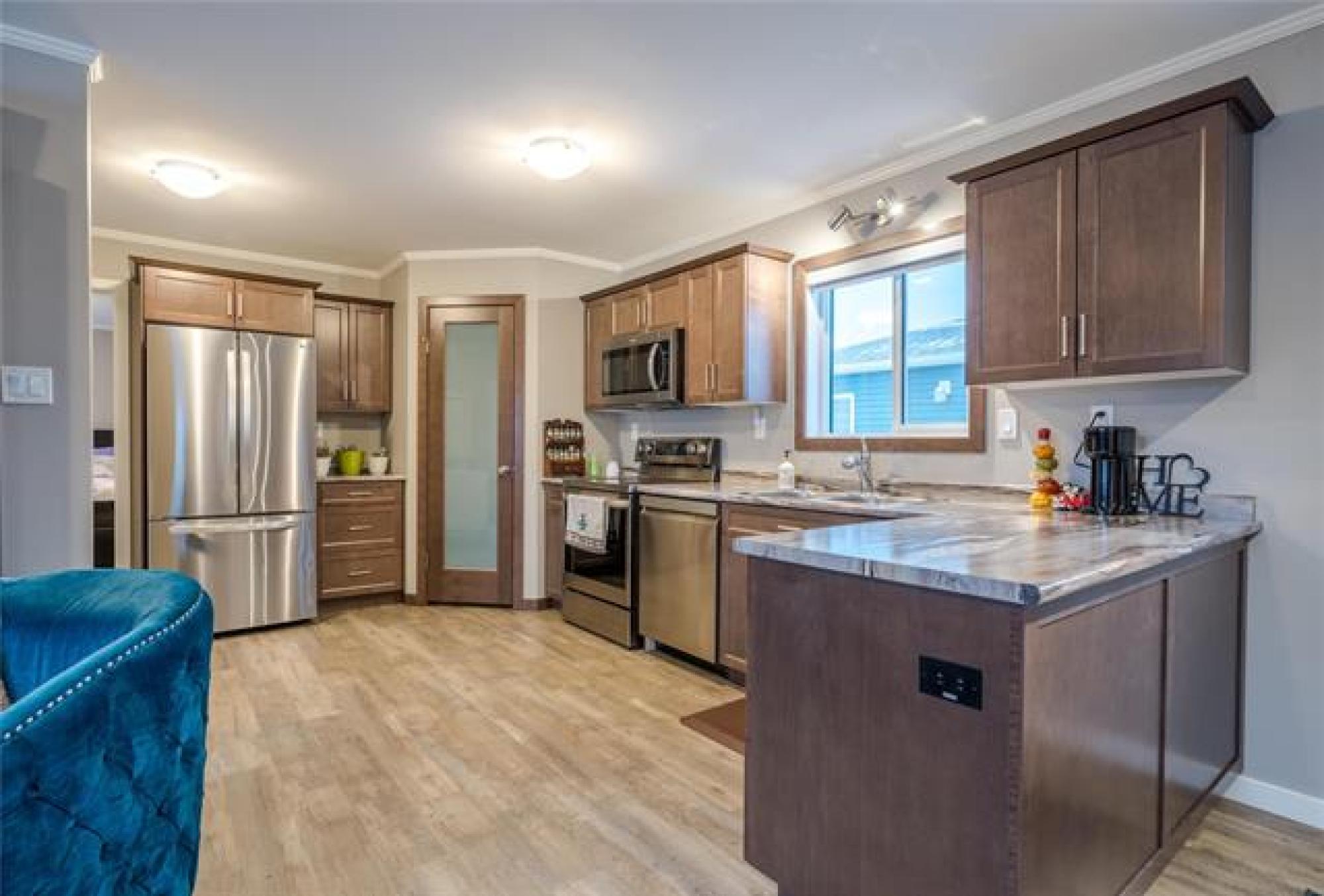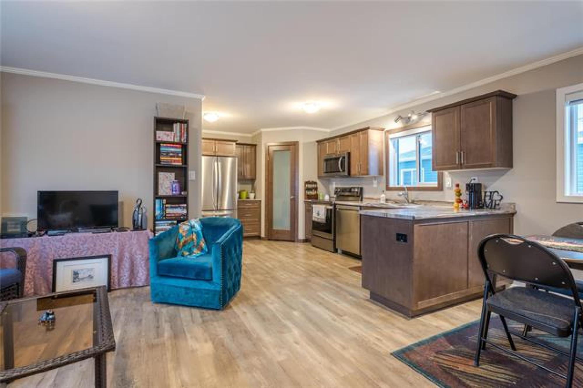 Welcome to this charming 2 bdrm, 2 bthrmm home in the desirable Rivergrove Mobile Home Estate, also know as Northgate TLPK, a community known for its low-maintenance lifestyle. Enjoy the comfort of all one-level living, starting with a bright and spacious entryway that sets the tone for the home. The heart of the home is the open-concept kitchen & dining area, designed to feel spacious & connected. With warm brown cabinetry, generous counter space, a large walk in pantry & excellent flow for cooking and entertaining, this kitchen makes everyday living easy and enjoyable. The massive primary bdrm provides a private retreat with a walk-in closet and full en-suite. A second bedroom and additional bathroom add flexibility for guests, office space, or hobbies. Outside, the fully fenced yard is ideal for pets, kids, or simply enjoying your own outdoor space. A garden shed offers extra storage, while the cozy gazebo sitting area provides the perfect spot to relax and unwind on warm evenings. A double parking pad adds convenience for vehicles & guests. Plus, you’re just minutes from Shooter’s Golf Course, giving you recreation & beautiful surroundings right at your doorstep.