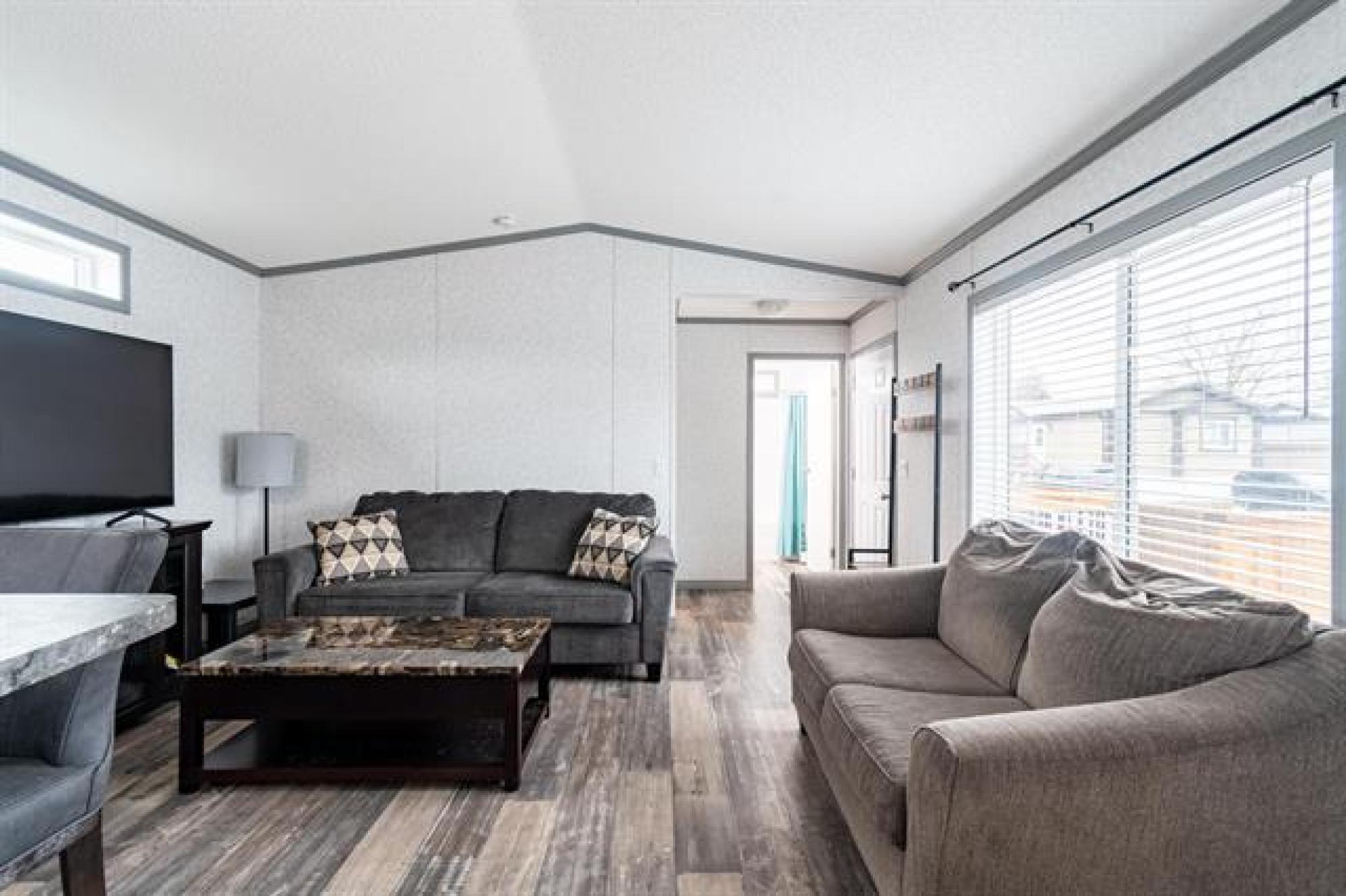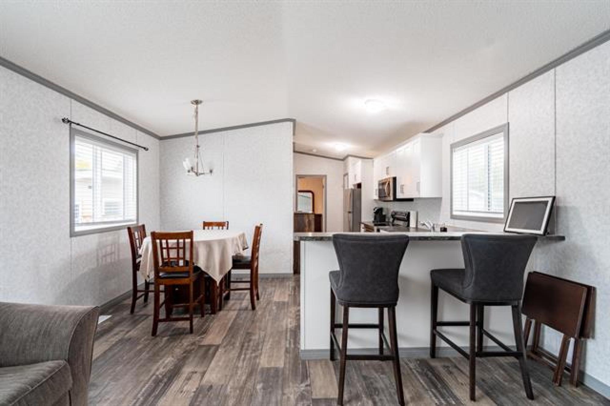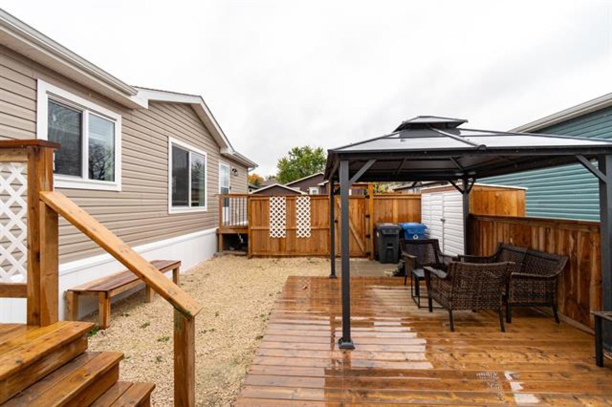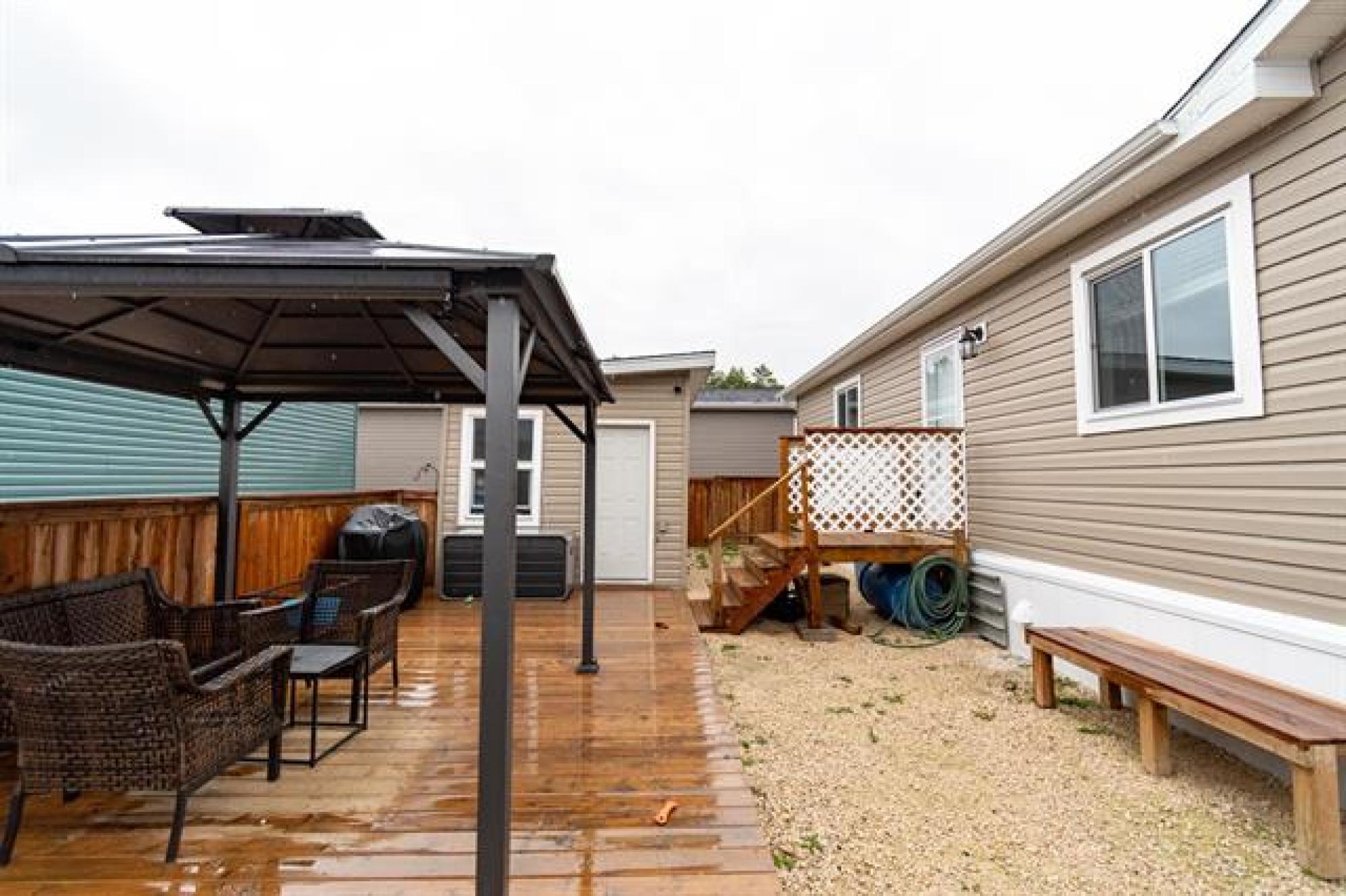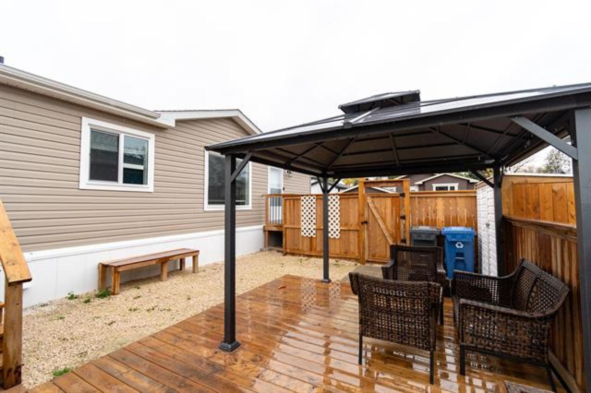 Open House - Sunday Oct 26 - 12-2pm! | Offers as rec'd | First Home? Downsizing? Look no further! This beautifully maintained 955 SqFt home offers 2 bedrms & 2 full bathrms, combining style, comfort, and low-maintenance living. The open-concept living & dining area features vaulted ceilings, lots of windows, and linoleum flooring, creating a bright and airy atmosphere. At the heart of the home, the large kitchen with breakfast bar provides ample cabinetry & countertops perfect for everyday living or entertaining. The spacious primary bedroom includes a walk-in closet & 3pc ensuite, while the second bedrm & bath offer space for guests or a home office. The mechanical room offers storage space & laundry area adding practicality to daily living. Outside is a 16' x 10' shed with power, a deck, all fenced yard, plus a parking pad. Central air (2022), Skirting is insulated. Golf enthusiasts will love the proximity to Shooter’s Golf Course. Enjoy scenic walking trails along the Red River & a residents only river front park, as well as easy access to shopping, restaurants, schools & all essential amenities. No property taxes, Lot fees only $574.20 per month which include main rd snow removal & garbage pickup!