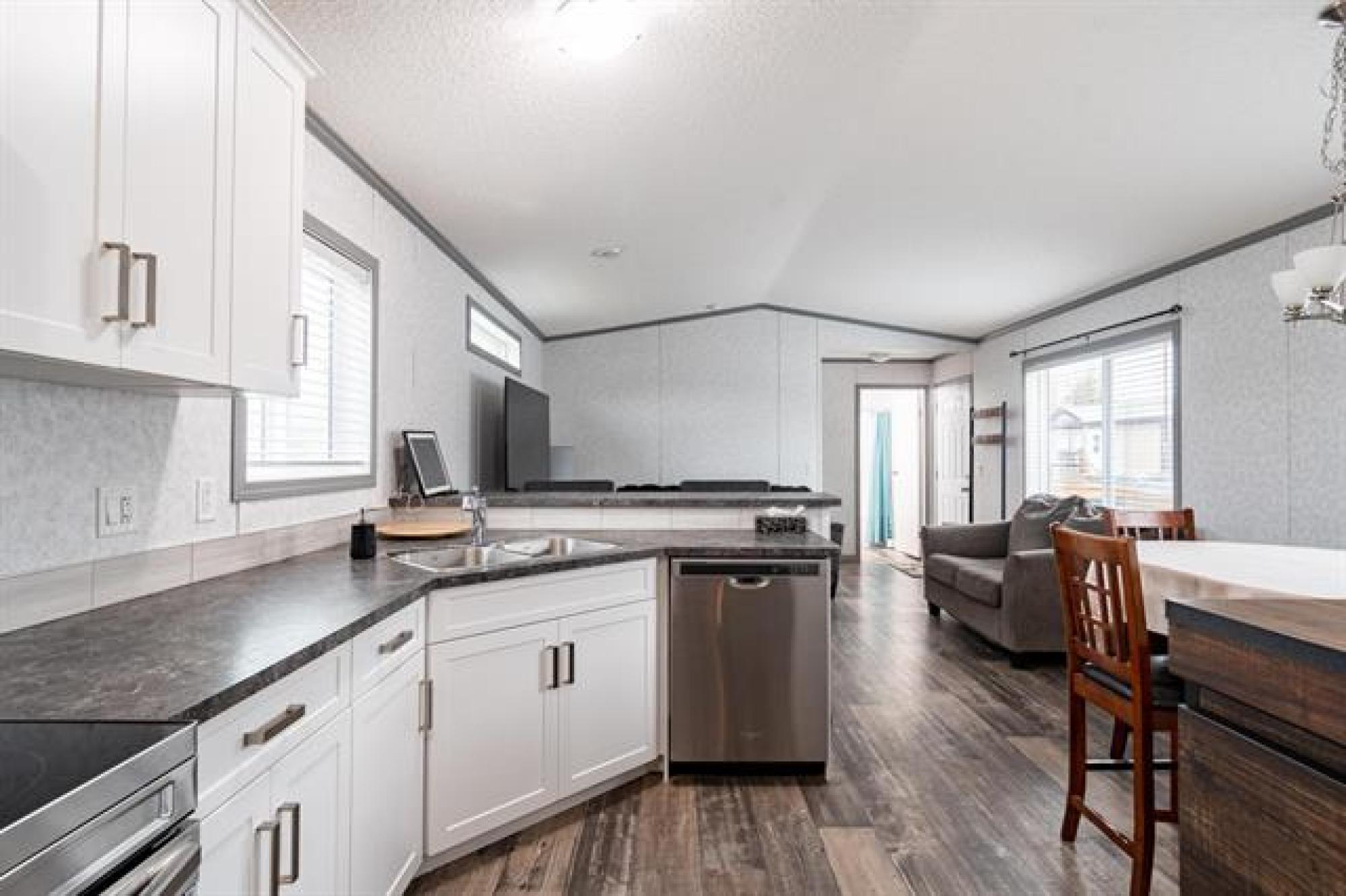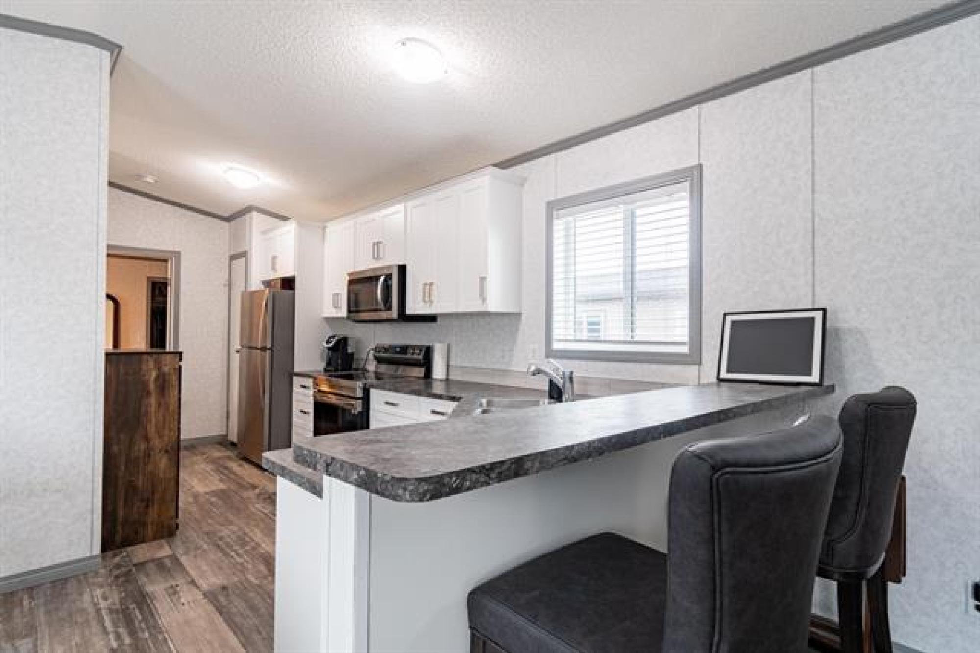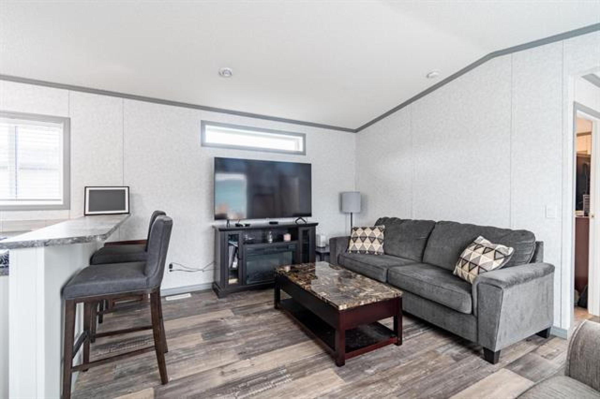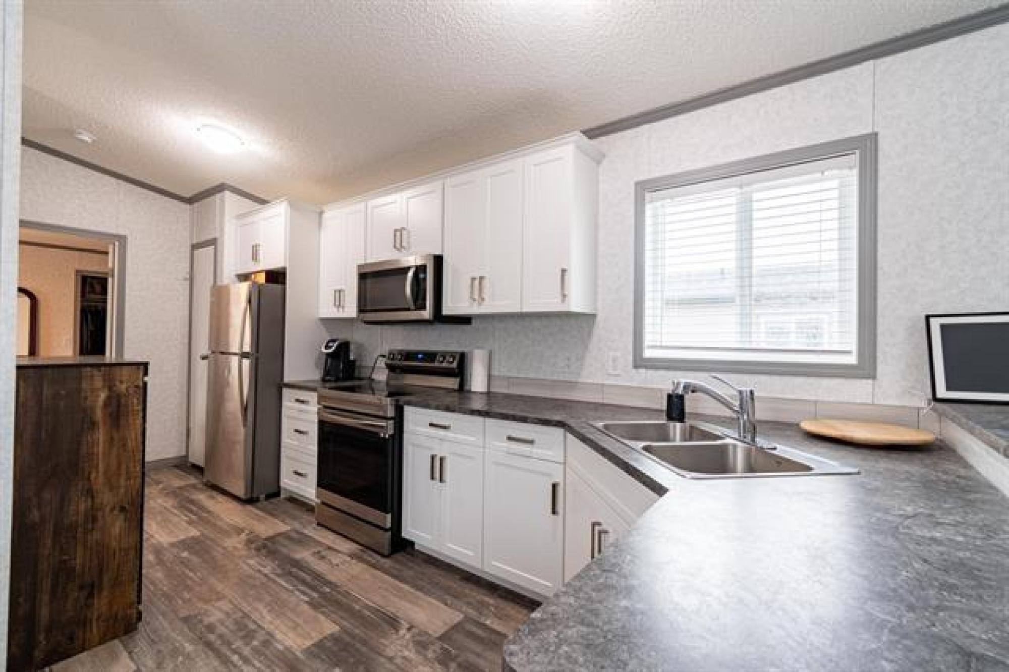 Open House - Sunday Oct 26 - 12-2pm! | Offers as rec'd | First Home? Downsizing? Look no further! This beautifully maintained 955 SqFt home offers 2 bedrms & 2 full bathrms, combining style, comfort, and low-maintenance living. The open-concept living & dining area features vaulted ceilings, lots of windows, and linoleum flooring, creating a bright and airy atmosphere. At the heart of the home, the large kitchen with breakfast bar provides ample cabinetry & countertops perfect for everyday living or entertaining. The spacious primary bedroom includes a walk-in closet & 3pc ensuite, while the second bedrm & bath offer space for guests or a home office. The mechanical room offers storage space & laundry area adding practicality to daily living. Outside is a 16' x 10' shed with power, a deck, all fenced yard, plus a parking pad. Central air (2022), Skirting is insulated. Golf enthusiasts will love the proximity to Shooter’s Golf Course. Enjoy scenic walking trails along the Red River & a residents only river front park, as well as easy access to shopping, restaurants, schools & all essential amenities. No property taxes, Lot fees only $574.20 per month which include main rd snow removal & garbage pickup!