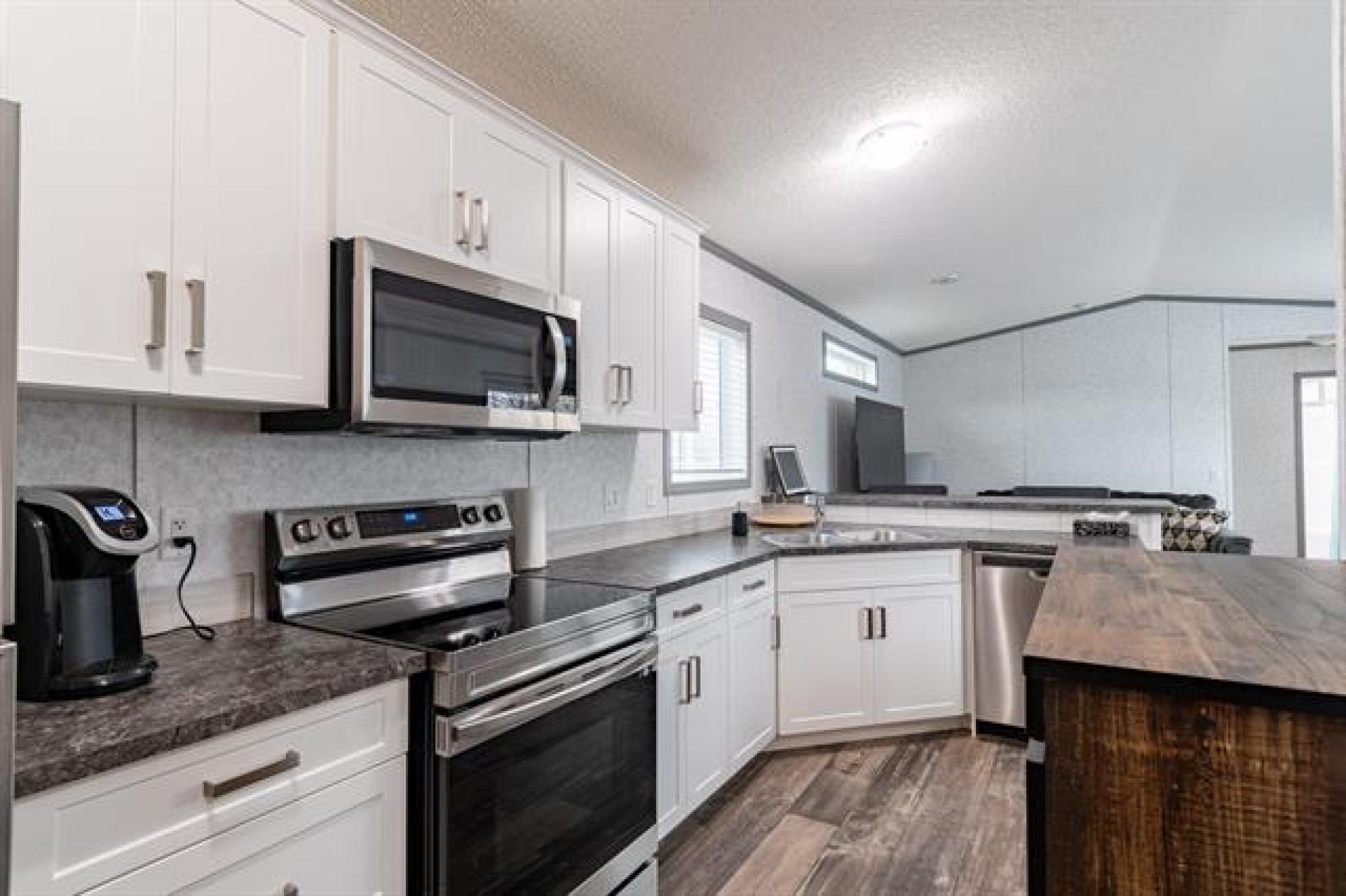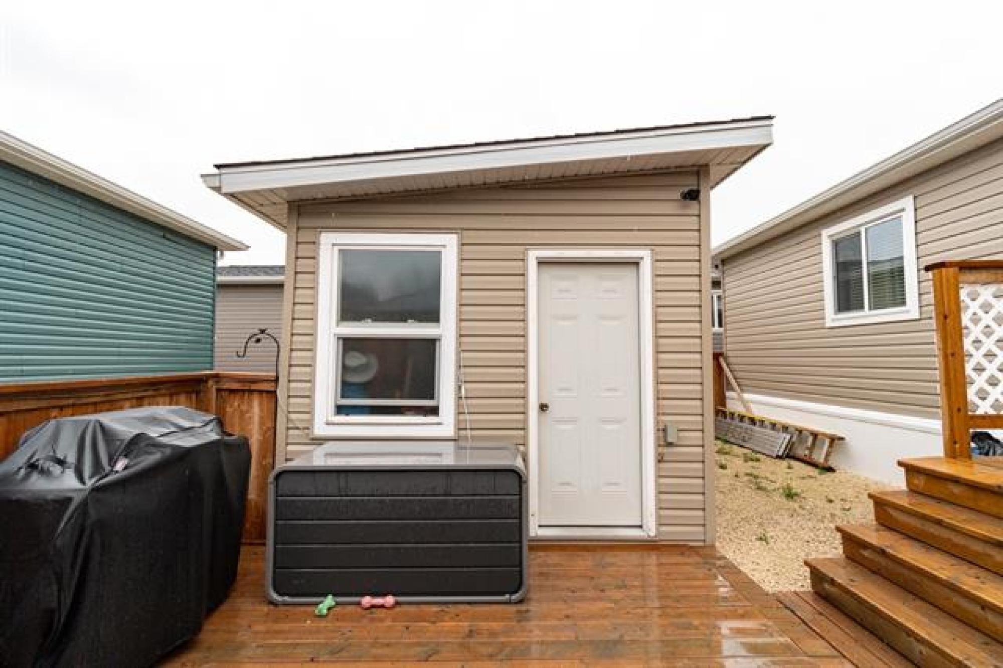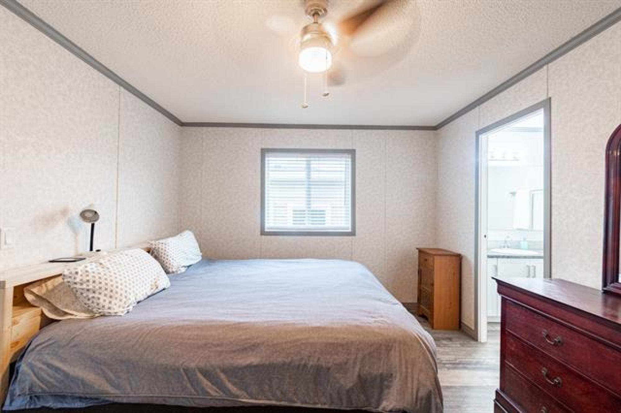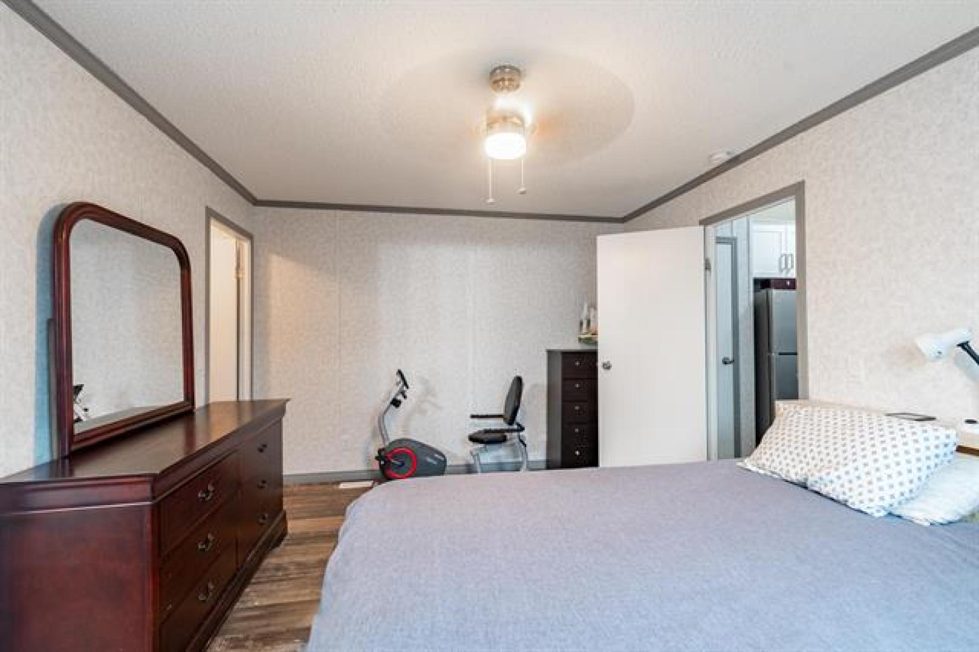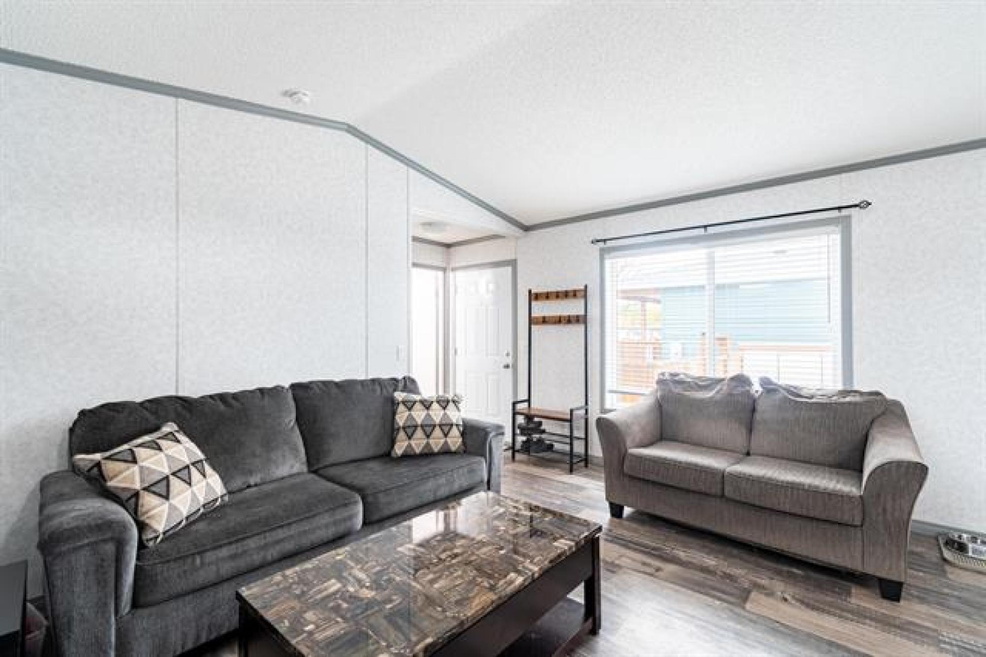 Open House - Sunday Oct 26 - 12-2pm! | Offers as rec'd | First Home? Downsizing? Look no further! This beautifully maintained 955 SqFt home offers 2 bedrms & 2 full bathrms, combining style, comfort, and low-maintenance living. The open-concept living & dining area features vaulted ceilings, lots of windows, and linoleum flooring, creating a bright and airy atmosphere. At the heart of the home, the large kitchen with breakfast bar provides ample cabinetry & countertops perfect for everyday living or entertaining. The spacious primary bedroom includes a walk-in closet & 3pc ensuite, while the second bedrm & bath offer space for guests or a home office. The mechanical room offers storage space & laundry area adding practicality to daily living. Outside is a 16' x 10' shed with power, a deck, all fenced yard, plus a parking pad. Central air (2022), Skirting is insulated. Golf enthusiasts will love the proximity to Shooter’s Golf Course. Enjoy scenic walking trails along the Red River & a residents only river front park, as well as easy access to shopping, restaurants, schools & all essential amenities. No property taxes, Lot fees only $574.20 per month which include main rd snow removal & garbage pickup!