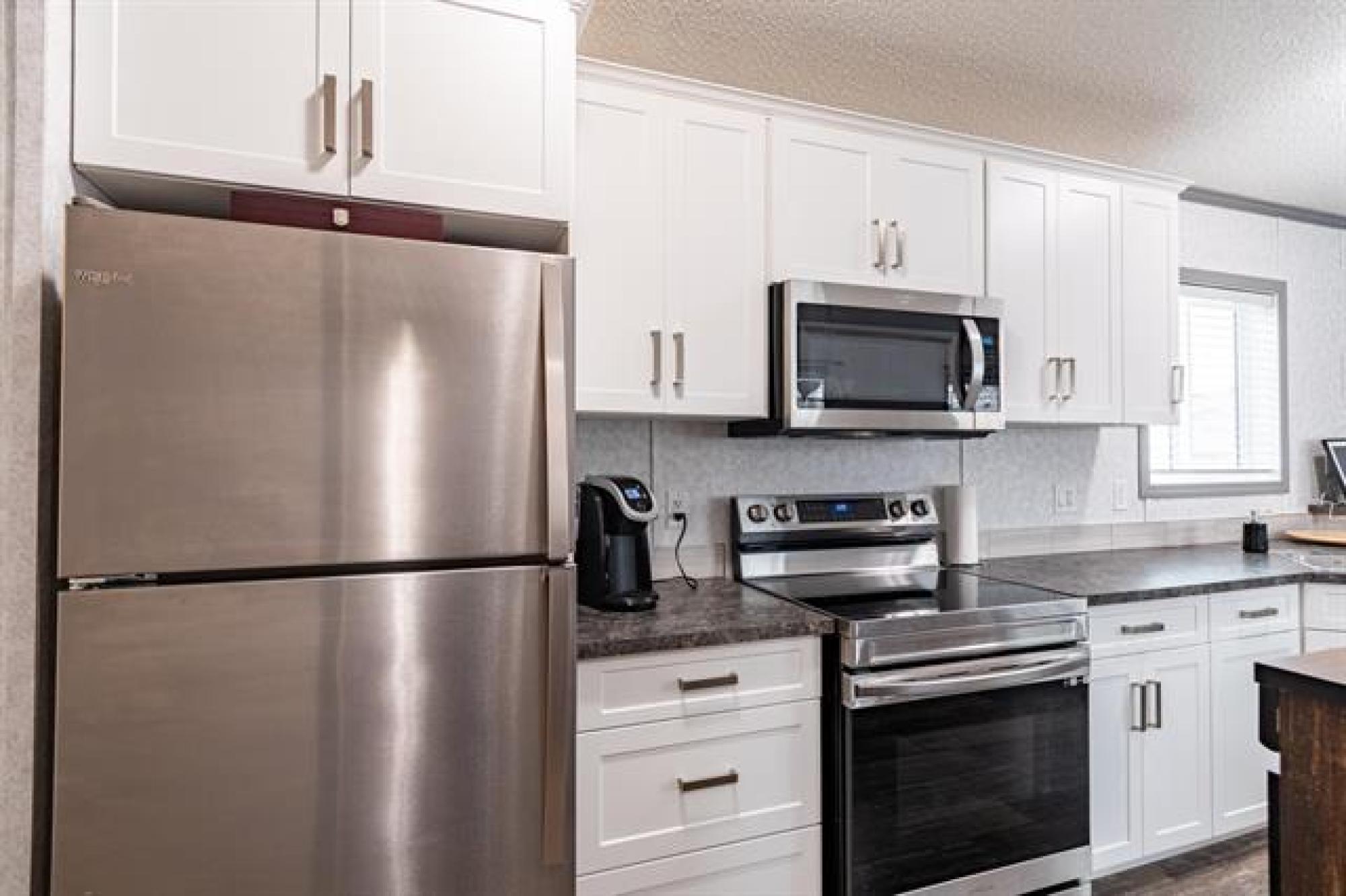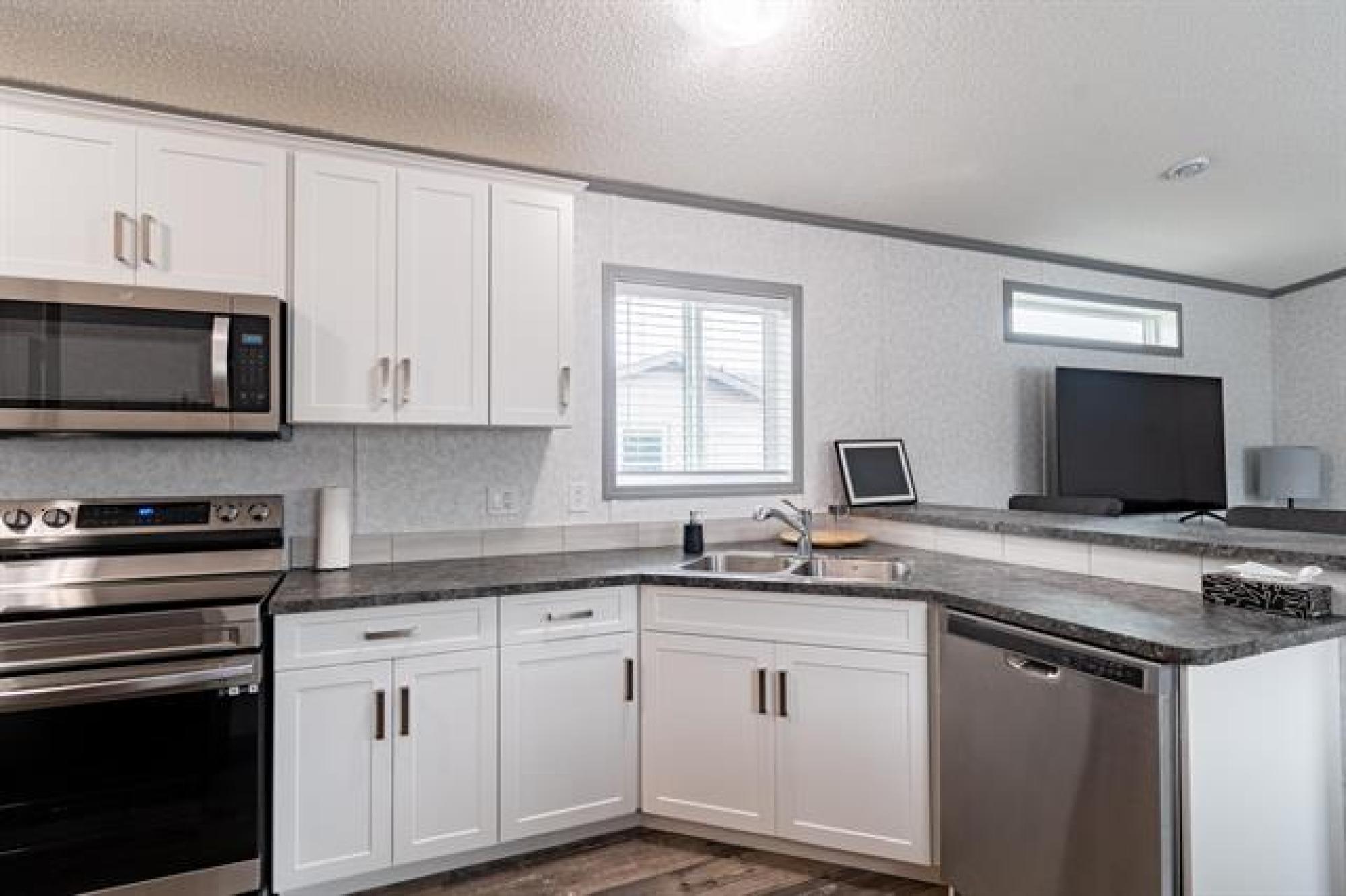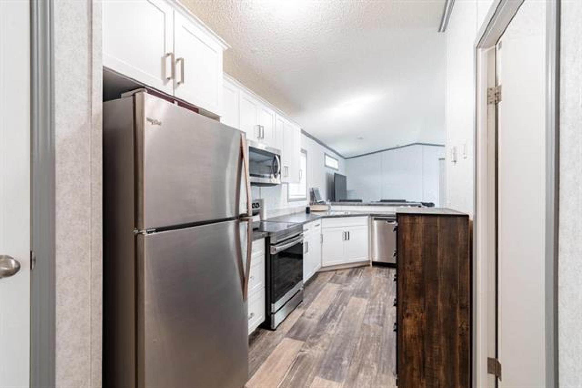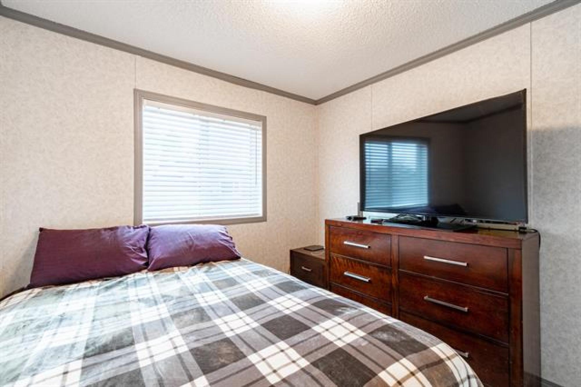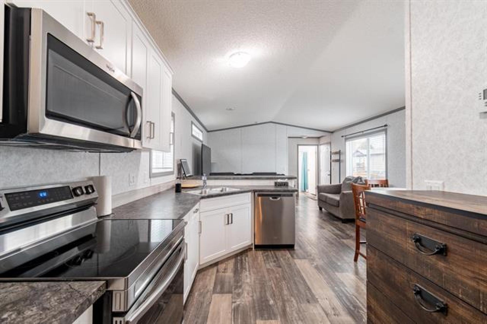 Open House - Sunday Oct 26 - 12-2pm! | Offers as rec'd | First Home? Downsizing? Look no further! This beautifully maintained 955 SqFt home offers 2 bedrms & 2 full bathrms, combining style, comfort, and low-maintenance living. The open-concept living & dining area features vaulted ceilings, lots of windows, and linoleum flooring, creating a bright and airy atmosphere. At the heart of the home, the large kitchen with breakfast bar provides ample cabinetry & countertops perfect for everyday living or entertaining. The spacious primary bedroom includes a walk-in closet & 3pc ensuite, while the second bedrm & bath offer space for guests or a home office. The mechanical room offers storage space & laundry area adding practicality to daily living. Outside is a 16' x 10' shed with power, a deck, all fenced yard, plus a parking pad. Central air (2022), Skirting is insulated. Golf enthusiasts will love the proximity to Shooter’s Golf Course. Enjoy scenic walking trails along the Red River & a residents only river front park, as well as easy access to shopping, restaurants, schools & all essential amenities. No property taxes, Lot fees only $574.20 per month which include main rd snow removal & garbage pickup!
