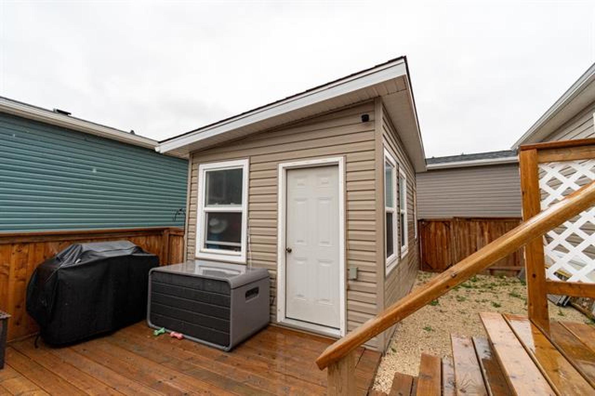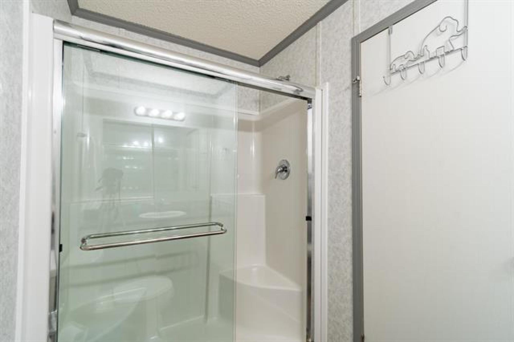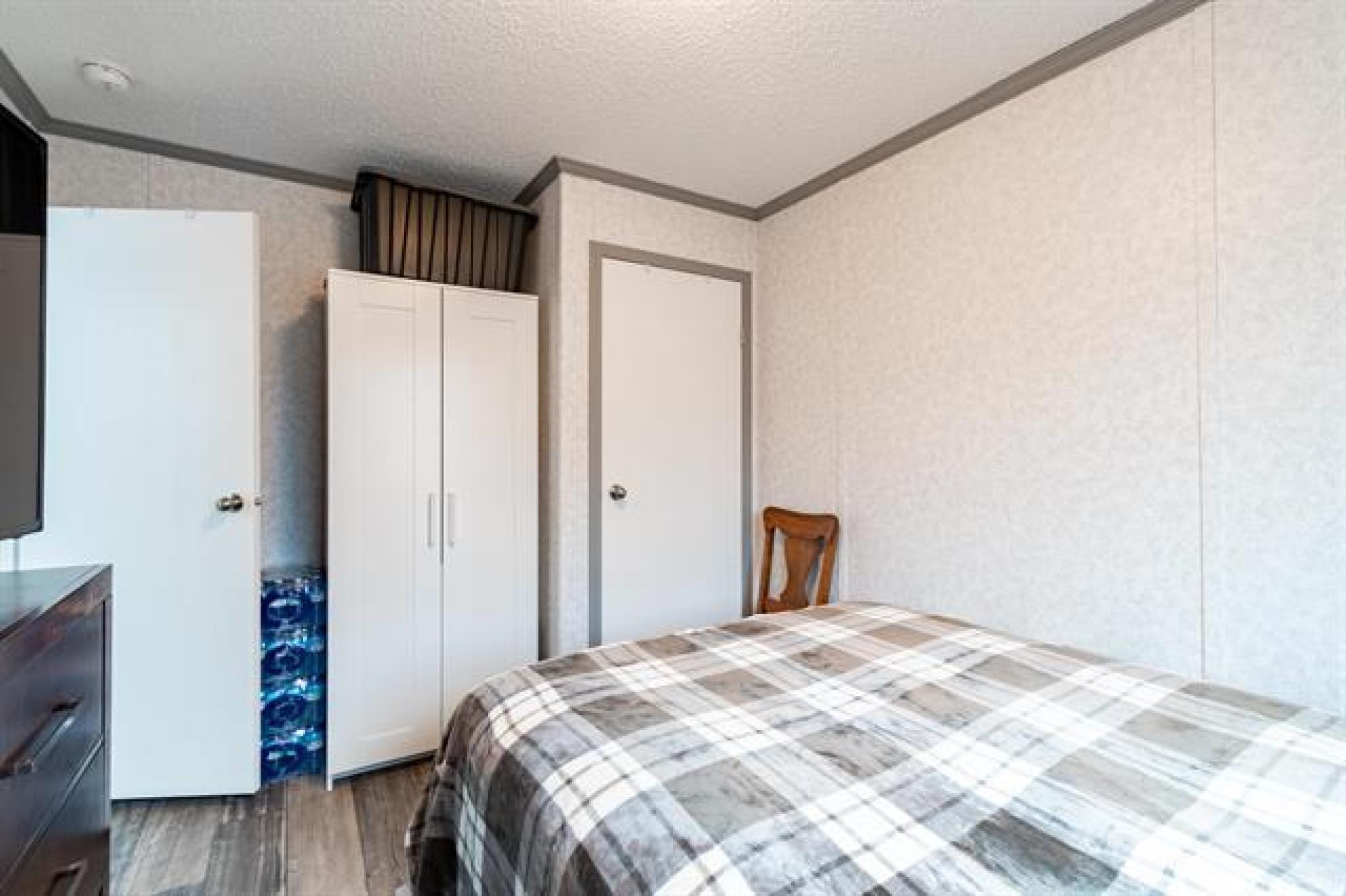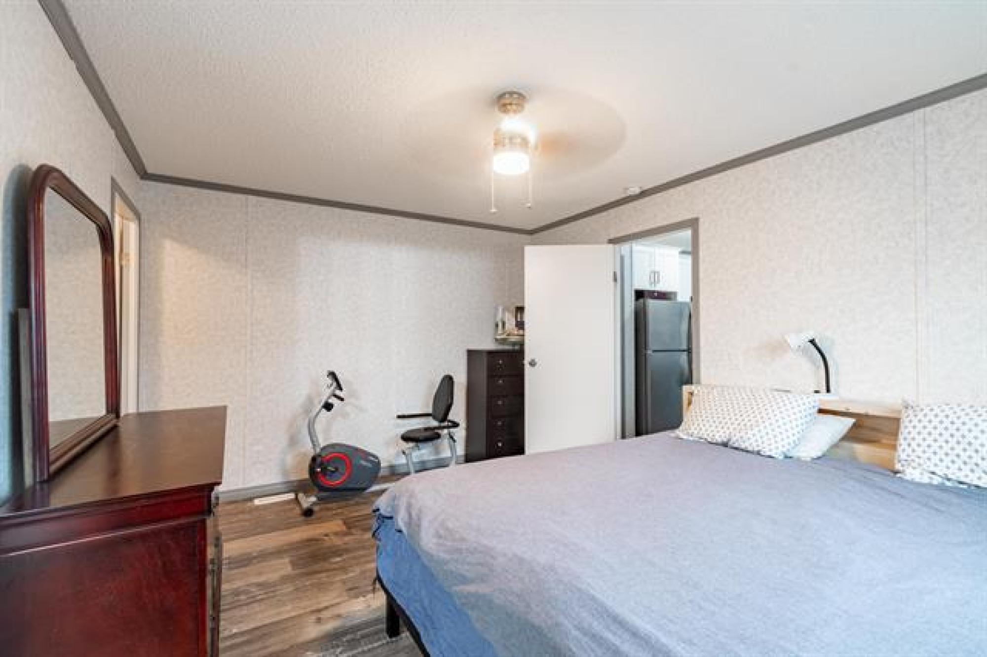 Open House - Sunday Oct 26 - 12-2pm! | Offers as rec'd | First Home? Downsizing? Look no further! This beautifully maintained 955 SqFt home offers 2 bedrms & 2 full bathrms, combining style, comfort, and low-maintenance living. The open-concept living & dining area features vaulted ceilings, lots of windows, and linoleum flooring, creating a bright and airy atmosphere. At the heart of the home, the large kitchen with breakfast bar provides ample cabinetry & countertops perfect for everyday living or entertaining. The spacious primary bedroom includes a walk-in closet & 3pc ensuite, while the second bedrm & bath offer space for guests or a home office. The mechanical room offers storage space & laundry area adding practicality to daily living. Outside is a 16' x 10' shed with power, a deck, all fenced yard, plus a parking pad. Central air (2022), Skirting is insulated. Golf enthusiasts will love the proximity to Shooter’s Golf Course. Enjoy scenic walking trails along the Red River & a residents only river front park, as well as easy access to shopping, restaurants, schools & all essential amenities. No property taxes, Lot fees only $574.20 per month which include main rd snow removal & garbage pickup!
