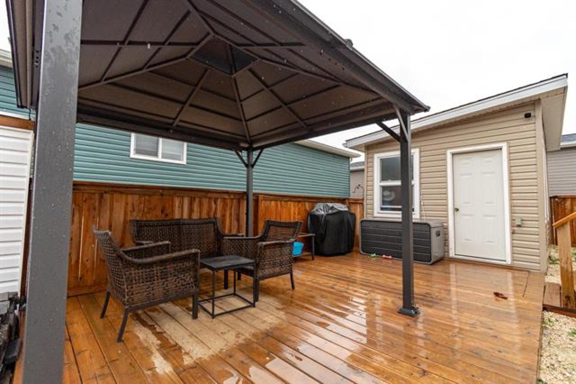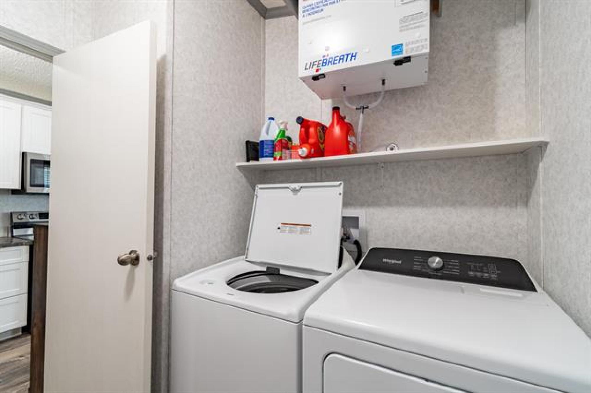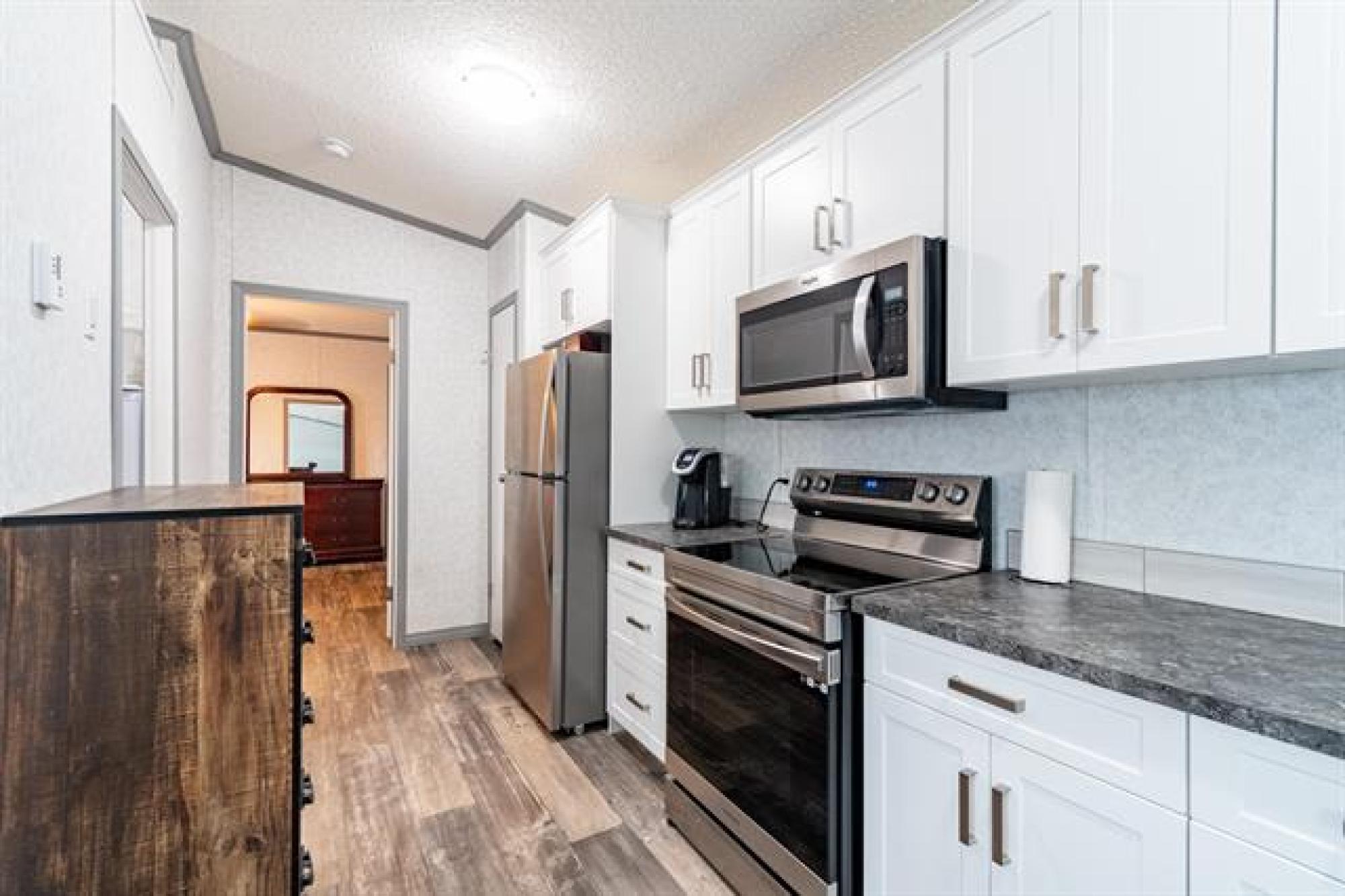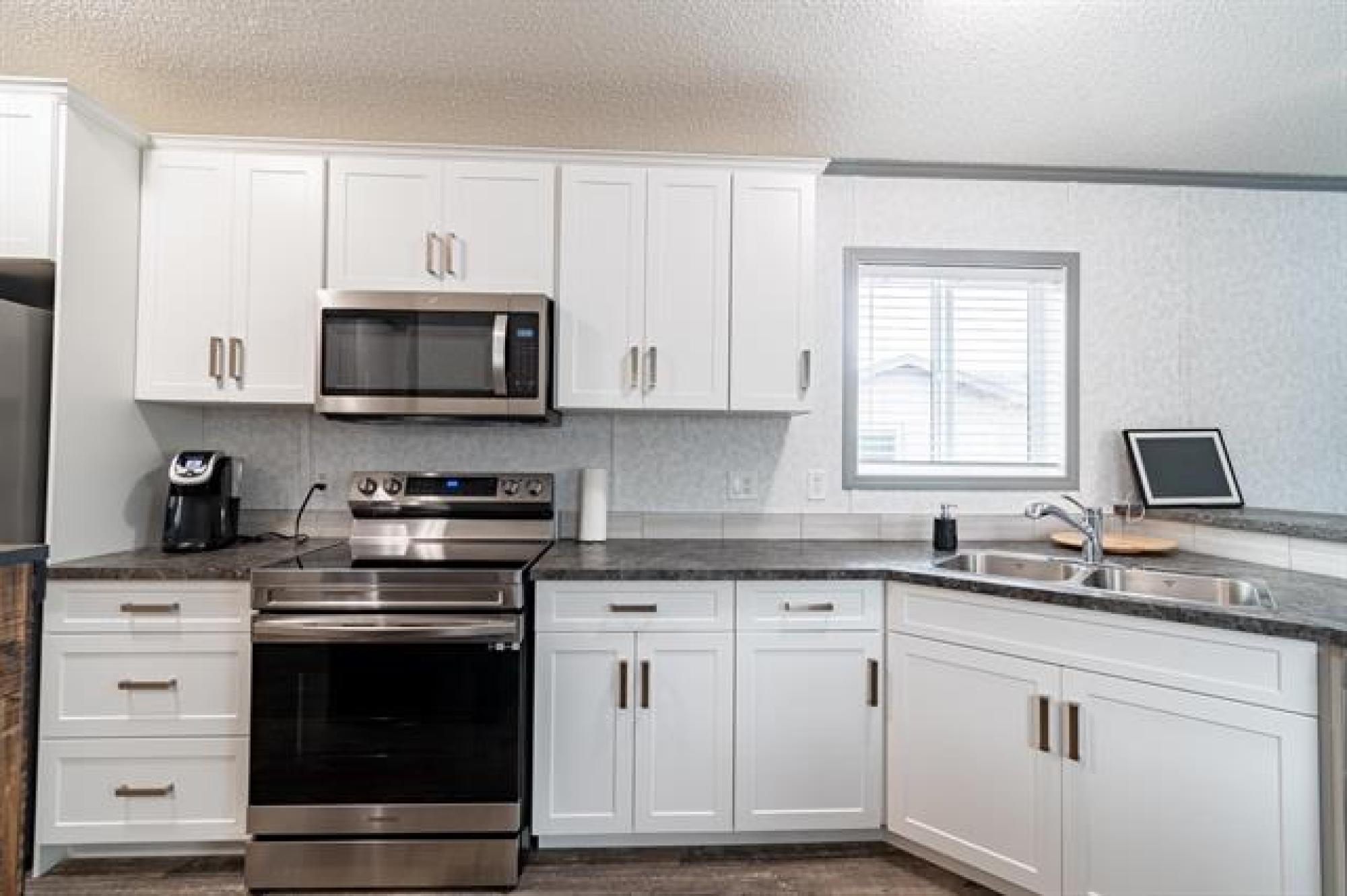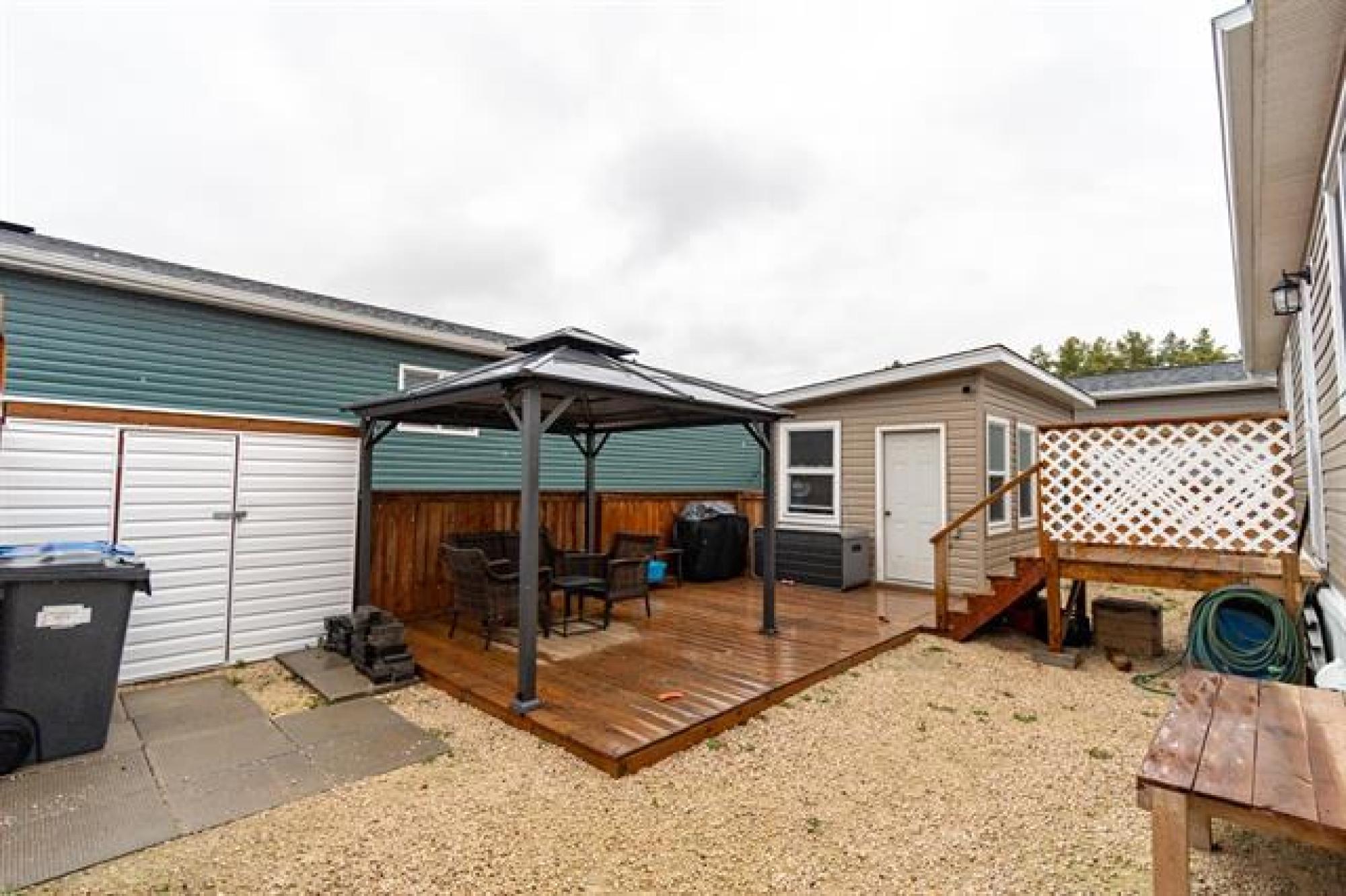 Open House - Sunday Oct 26 - 12-2pm! | Offers as rec'd | First Home? Downsizing? Look no further! This beautifully maintained 955 SqFt home offers 2 bedrms & 2 full bathrms, combining style, comfort, and low-maintenance living. The open-concept living & dining area features vaulted ceilings, lots of windows, and linoleum flooring, creating a bright and airy atmosphere. At the heart of the home, the large kitchen with breakfast bar provides ample cabinetry & countertops perfect for everyday living or entertaining. The spacious primary bedroom includes a walk-in closet & 3pc ensuite, while the second bedrm & bath offer space for guests or a home office. The mechanical room offers storage space & laundry area adding practicality to daily living. Outside is a 16' x 10' shed with power, a deck, all fenced yard, plus a parking pad. Central air (2022), Skirting is insulated. Golf enthusiasts will love the proximity to Shooter’s Golf Course. Enjoy scenic walking trails along the Red River & a residents only river front park, as well as easy access to shopping, restaurants, schools & all essential amenities. No property taxes, Lot fees only $574.20 per month which include main rd snow removal & garbage pickup!