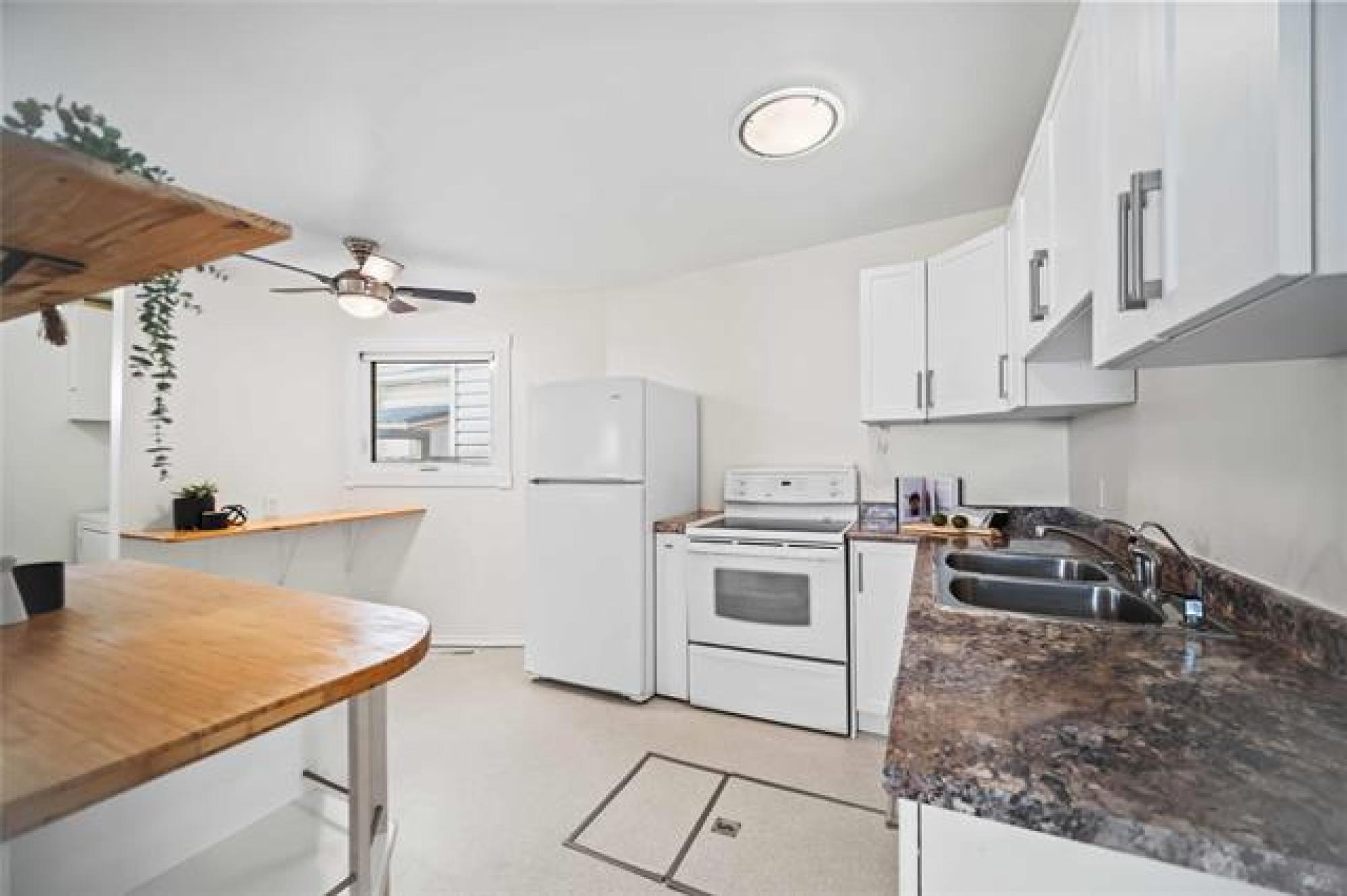 Showings start Tuesday October 14th, 2025, with offers being presented the evening of Tuesday, Oct 21st, 2025. OPEN HOUSE SUNDAY, OCTOBER 19th, 2025; 3pm-5pm. Charming 728 sq ft bungalow— bright, well-maintained and move-in ready! The L-shaped living/dining area fills the front of the home and opens to a thoughtfully updated kitchen with newer cabinetry, a butcher-block peninsula with integrated dishwasher, and a cozy eat-in breakfast nook. Two generous bedrooms include a primary that easily fits a queen or king bed, and the renovated 4-piece bathroom adds modern convenience. Practical extras include main-floor laundry, a fully fenced backyard, a single-car garage and an extra parking pad. Lovingly cared for by the current owners and ideally located, this home blends smart updates with an efficient layout. Book your showing today!